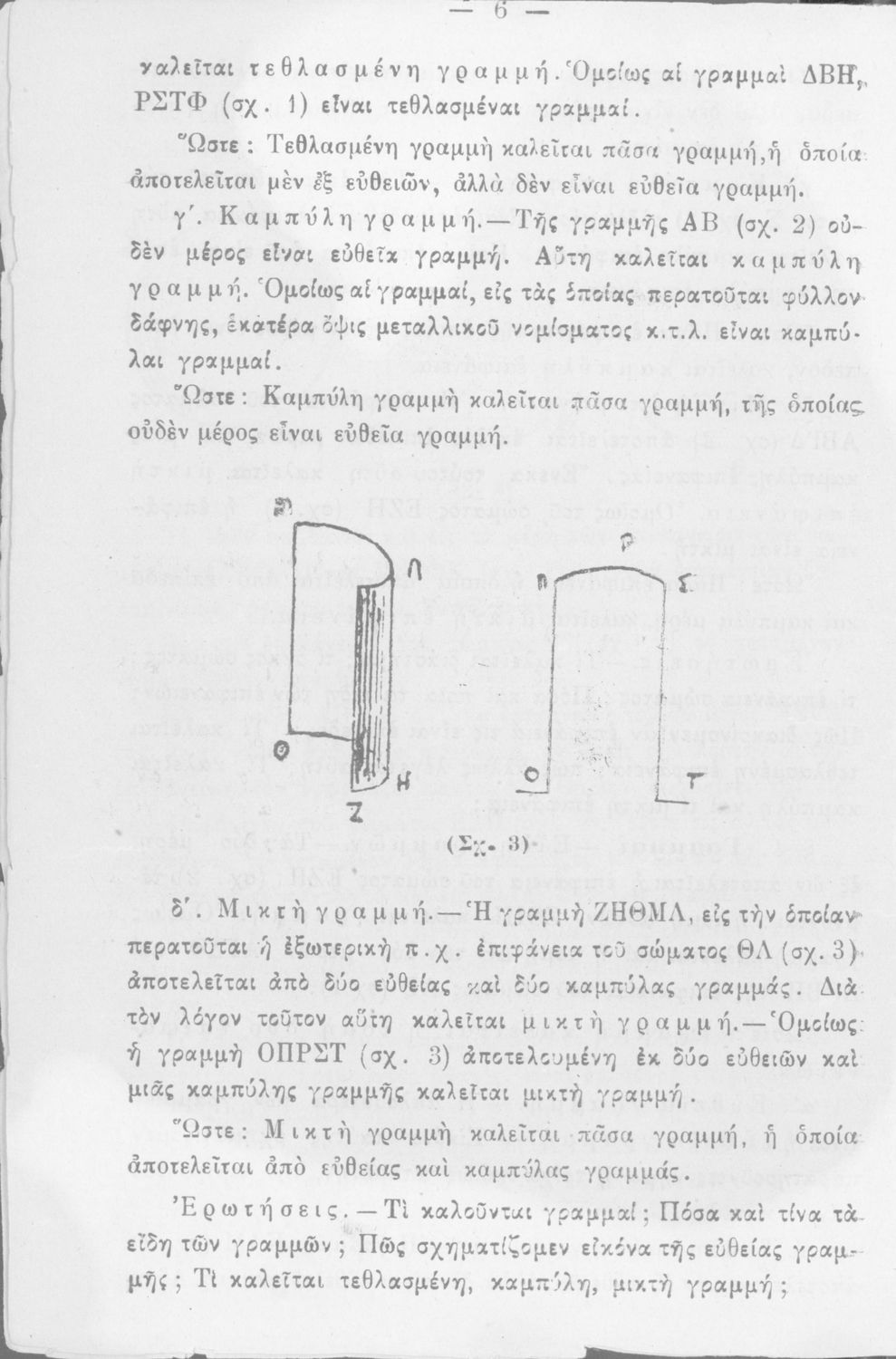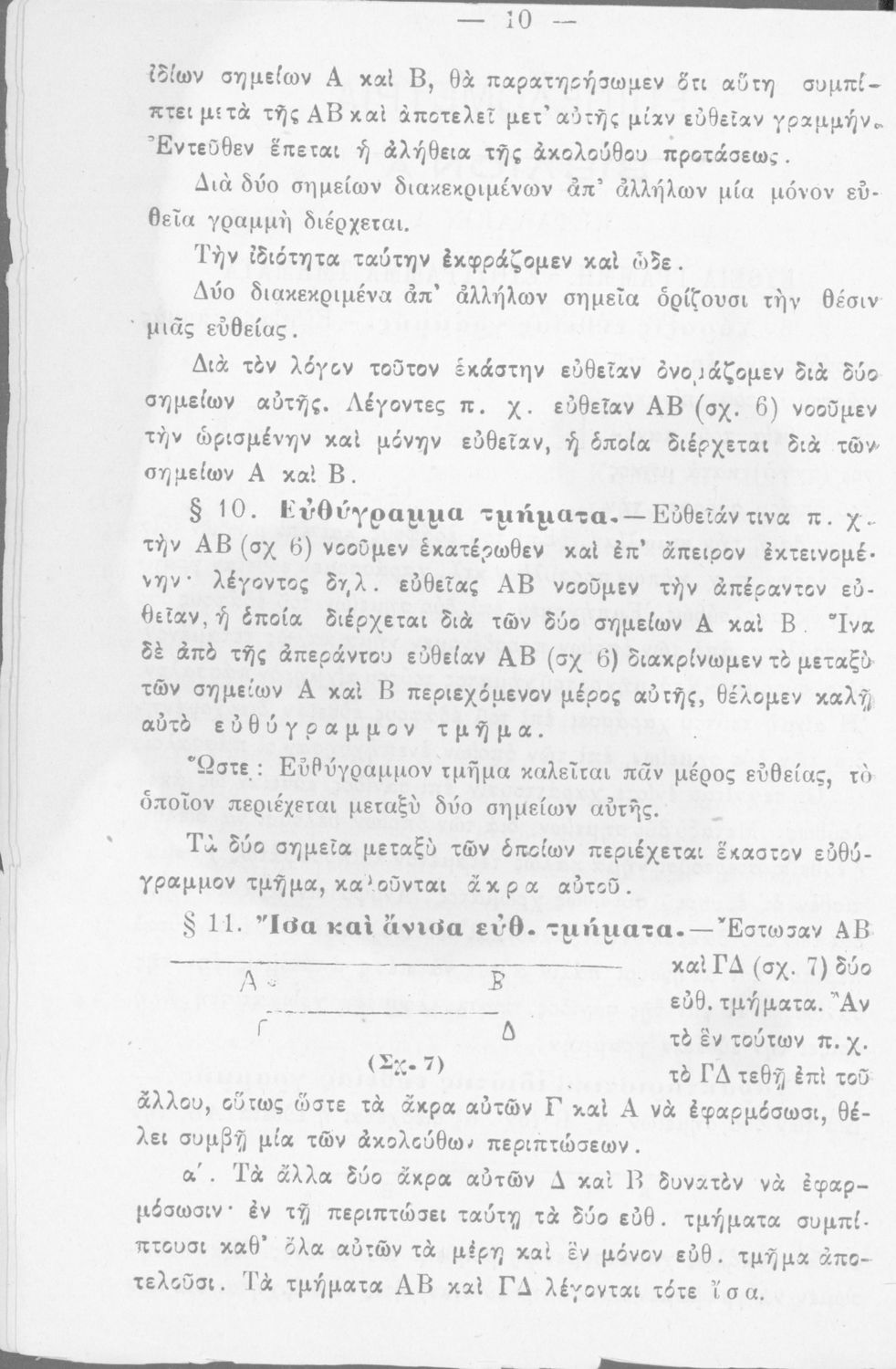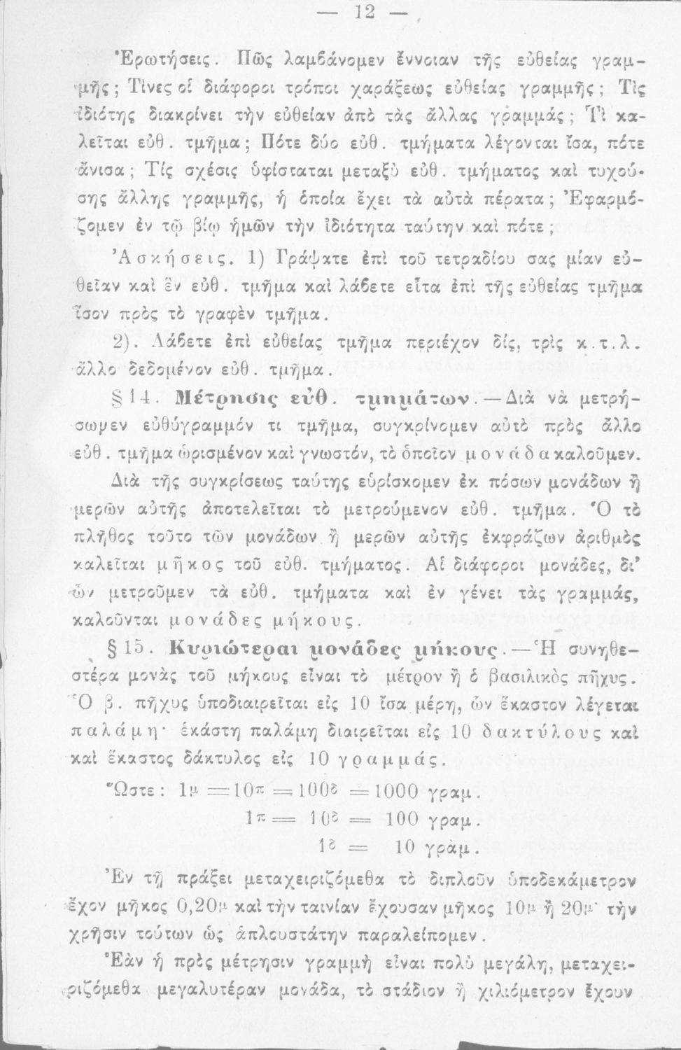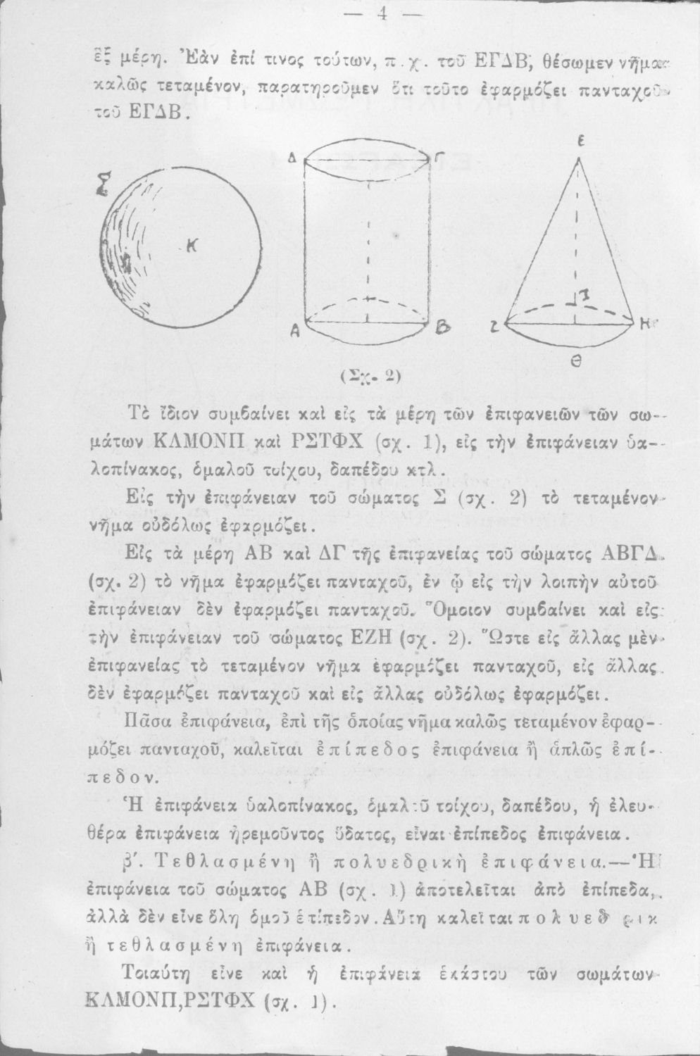 Σχολικό εγχειρίδιο Γεωμετρίας για την Α΄, Β΄ και Γ΄ τάξη των Ελληνικών και Αστικών Σχολείων και Παρθεναγωγείων που είναι χωρισμένο σε Επιπεδομετρία και Στερεομετρία και περιλαμβάνει θεωρία και ασκήσεις.