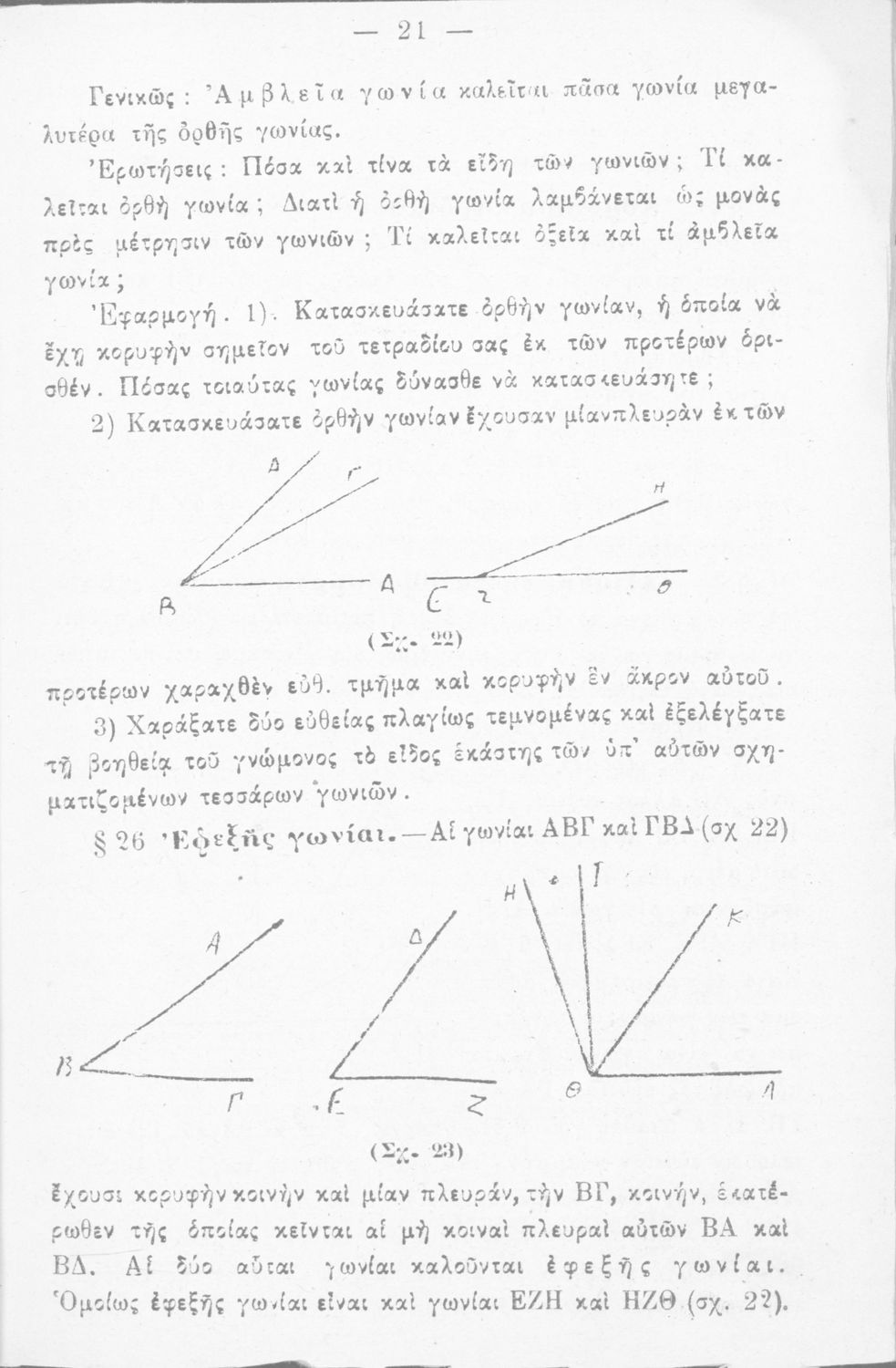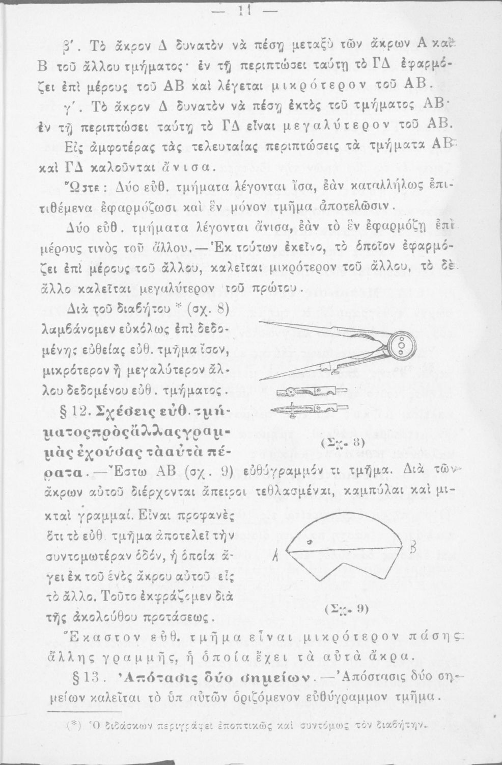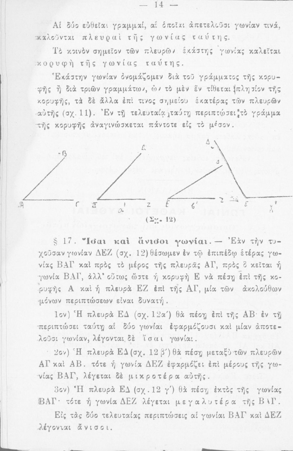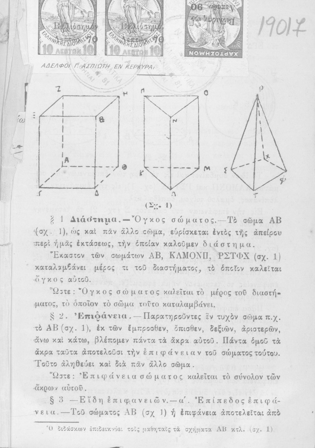Σχολικό εγχειρίδιο Γεωμετρίας για την Α΄, Β΄ και Γ΄ τάξη των Ελληνικών και Αστικών Σχολείων και Παρθεναγωγείων που είναι χωρισμένο σε Επιπεδομετρία και Στερεομετρία και περιλαμβάνει θεωρία και ασκήσεις.