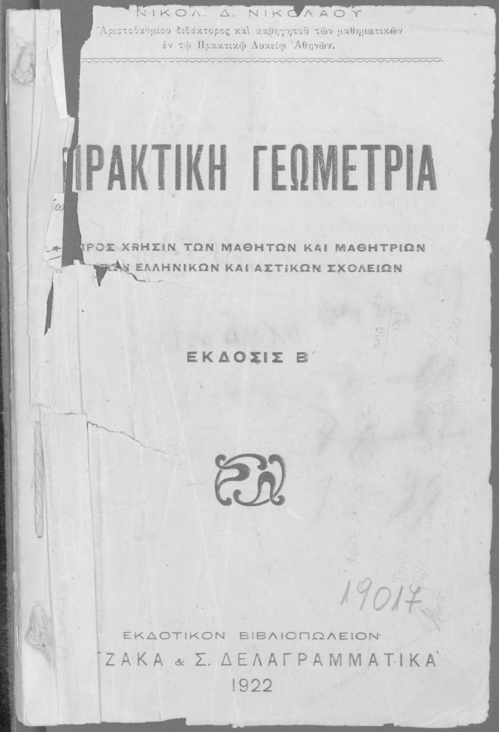 Τίτλος: Πρακτική γεωμετρία προς χρήσιν των μαθητών και μαθητριών των Ελληνικών και Αστικών Σχολείων