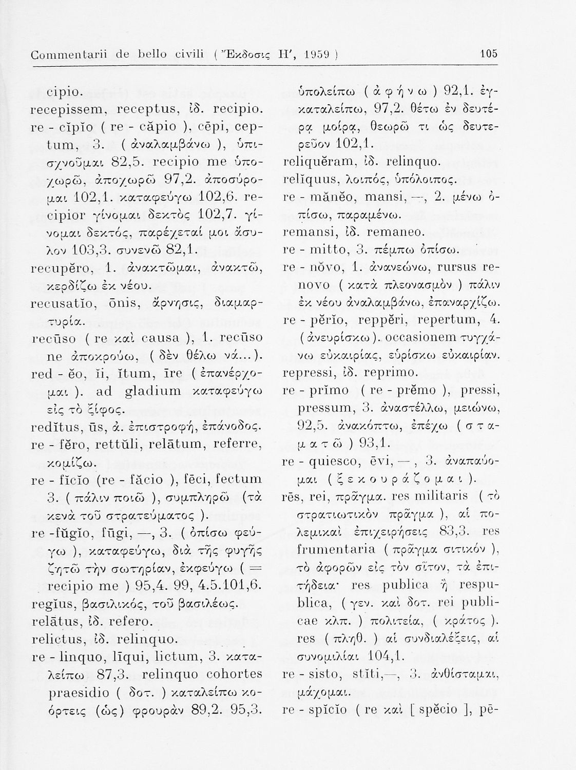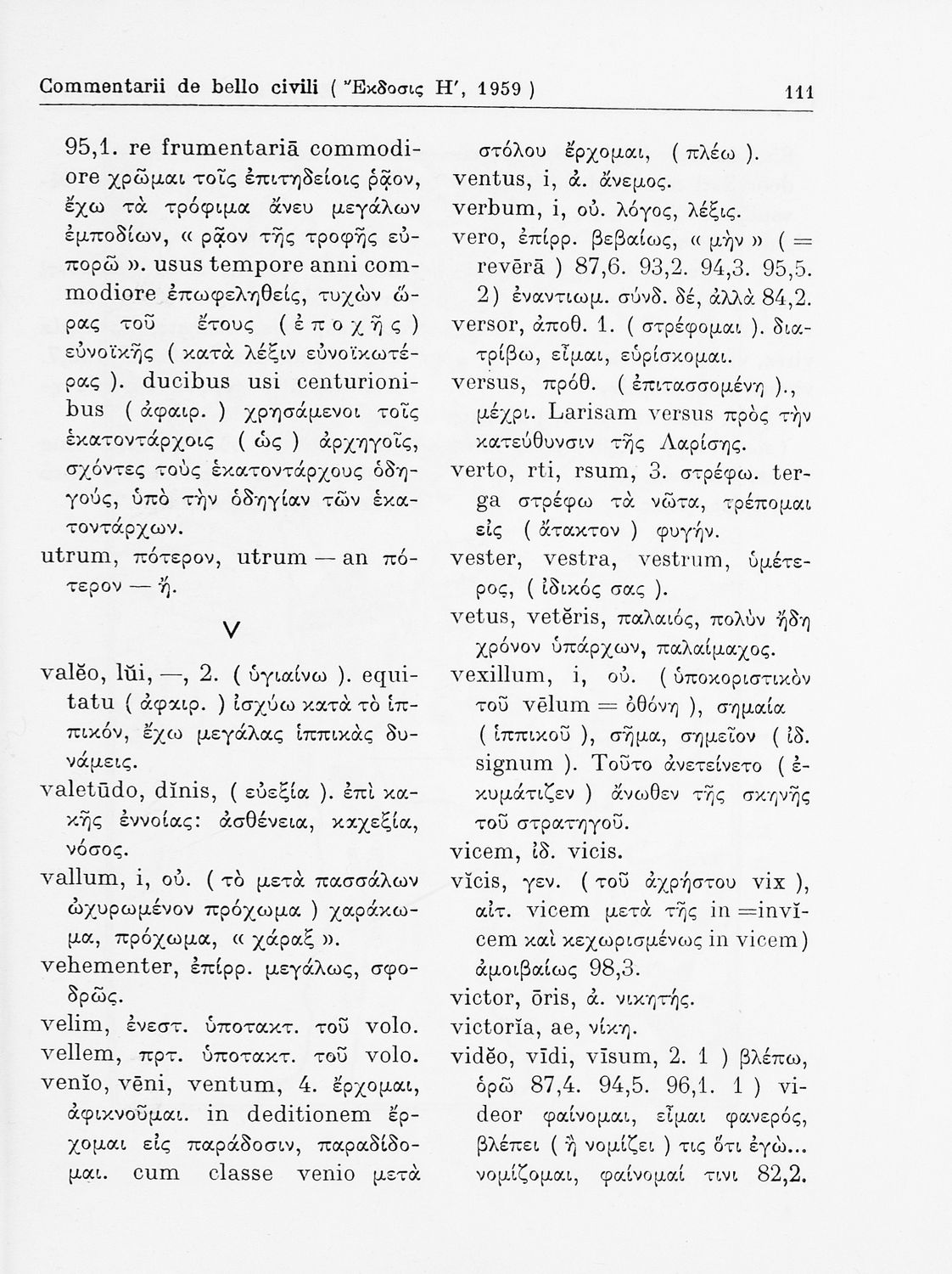 Σχολικό εγχειρίδιο Λατινικών που περιέχει σύντομο βιογραφικό σημείωμα του Ιούλιου Καίσαρα, εισαγωγή στο έργο, κείμενο, ιστορικό και γεωγραφικό πίνακα και λεξιλόγιο. Ο συγγραφέας ήταν καθηγητής της Λατινικής Φιλολογίας στο Πανεπιστήμιο Αθηνών.