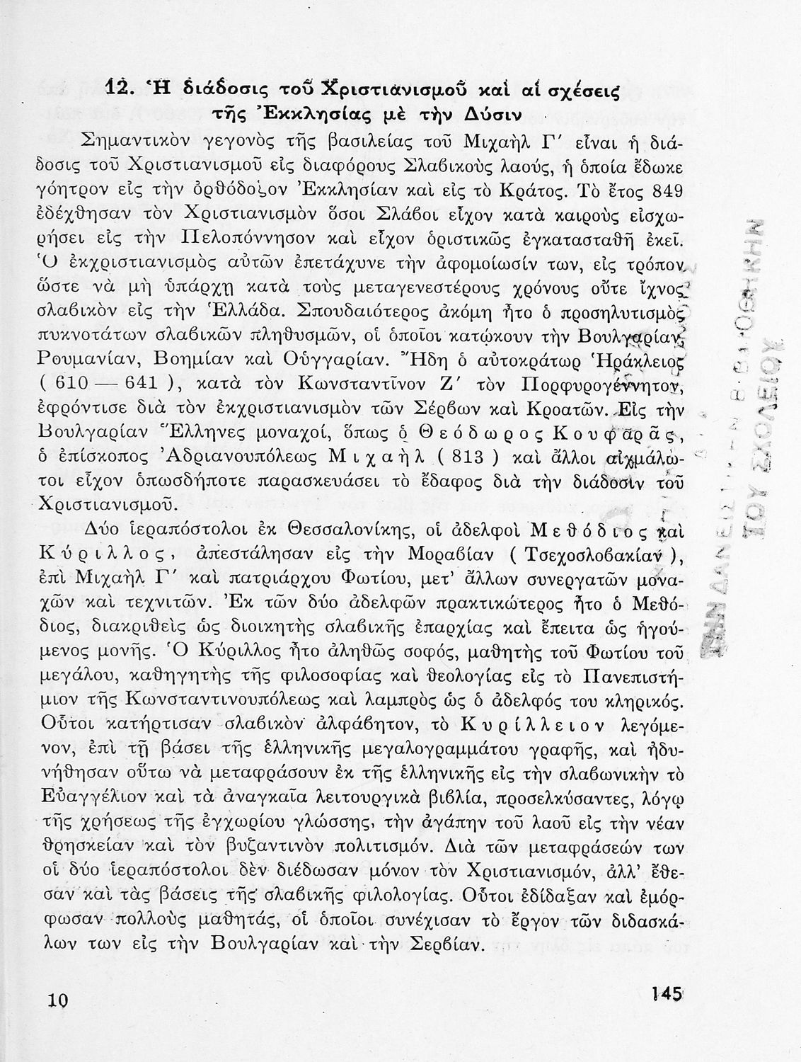 Βαθμίδα εκπαίδευσης: Δευτεροβάθμια Τάξη: Δ' Γυμνασίου Μάθημα: Ιστορία Γλώσσα: Απλή καθαρεύουσα Παρουσίαση περιεχομένου: Σχολικό εγχειρίδιο Ιστορίας Δ' Εξαταξίου Γυμνασίου που καλύπτει την περίοδο από την ίδρυση της Κωνσταντινούπολης ως την πτώση της Βυζαντινής Αυτοκρατορίας. |