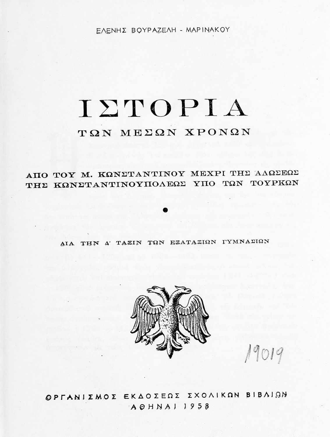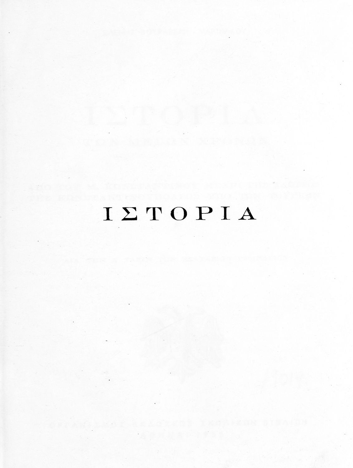 Τίτλος: Ιστορία των Μέσων Χρόνων από του Μ. Κωνσταντίνου μέχρι της Αλώσεως της Κωνσταντινουπόλεως υπό των Τούρκων. Δια την Δ΄ των Εξατατάξιων Γυμνασίων