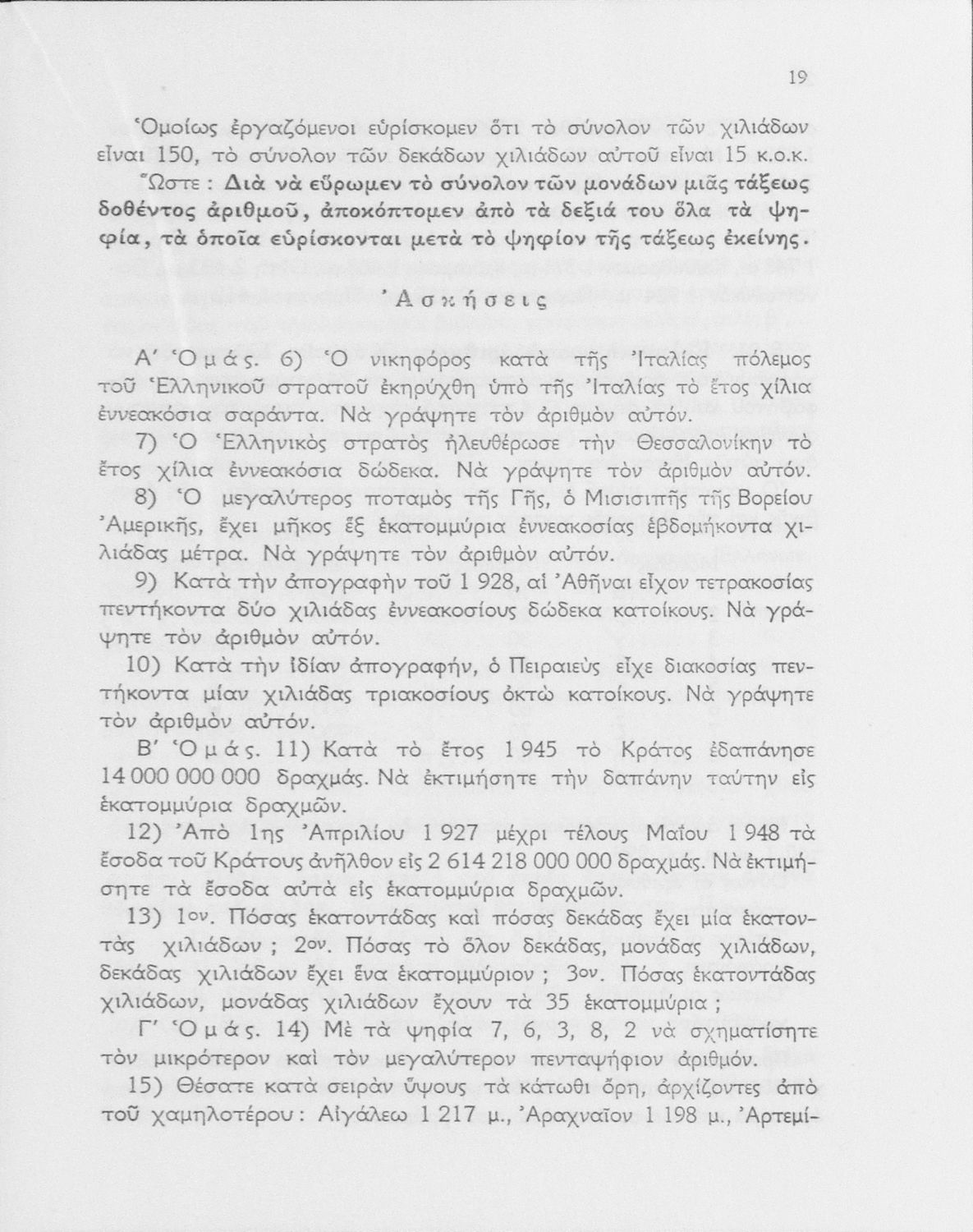 LDR 01385 2200205 4500 035 ## _a01-19020 040 ## _aΙνστιτούτο Εκπαιδευτικής Πολιτικής 041 ## _ael 100 ## _aΠ. Τόγκας _aΘ. Πασσάς _aΝ. Νικολάου _aΔ. Κάρτσωνας (επιμέλεια) 110 ## _a19020 245 0# _aΑριθμητική δια τας κατωτέρας τάξεις των Γυμνασίων 250 ## _a4η Έκδοση 260 ## _aΑθήνα _bΟργανισμός Εκδόσεως Σχολικών Βιβλίων _c1956 300 ## _a379 _c20 520 ## _aΣχολικό εγχειρίδιο Αριθμητικής Γυμνασίου που εστιάζει στις αριθμητικές πράξεις, τα κλάσματα και τις μεθόδους και είναι χωρισμένο σε θεωρία και ασκήσεις με έντονο επιχειρηματικό προσανατολισμό. Περιλαμβάνει στοιχεία Θεωρητικής Αριθμητικής. 521 ## _aΓυμνάσιο 522 ## _aΕλλάδα 546 ## _aΑπλή καθαρεύουσα 563 ## _aΣκληρό Εξώφυλλο 650 #4 _aΑριθμητικές πράξεις με ακέραιους _aΔεκαδικούς _aΚλασματικούς και συμμιγείς αριθμούς _aΜέθοδοι _aΡίζες