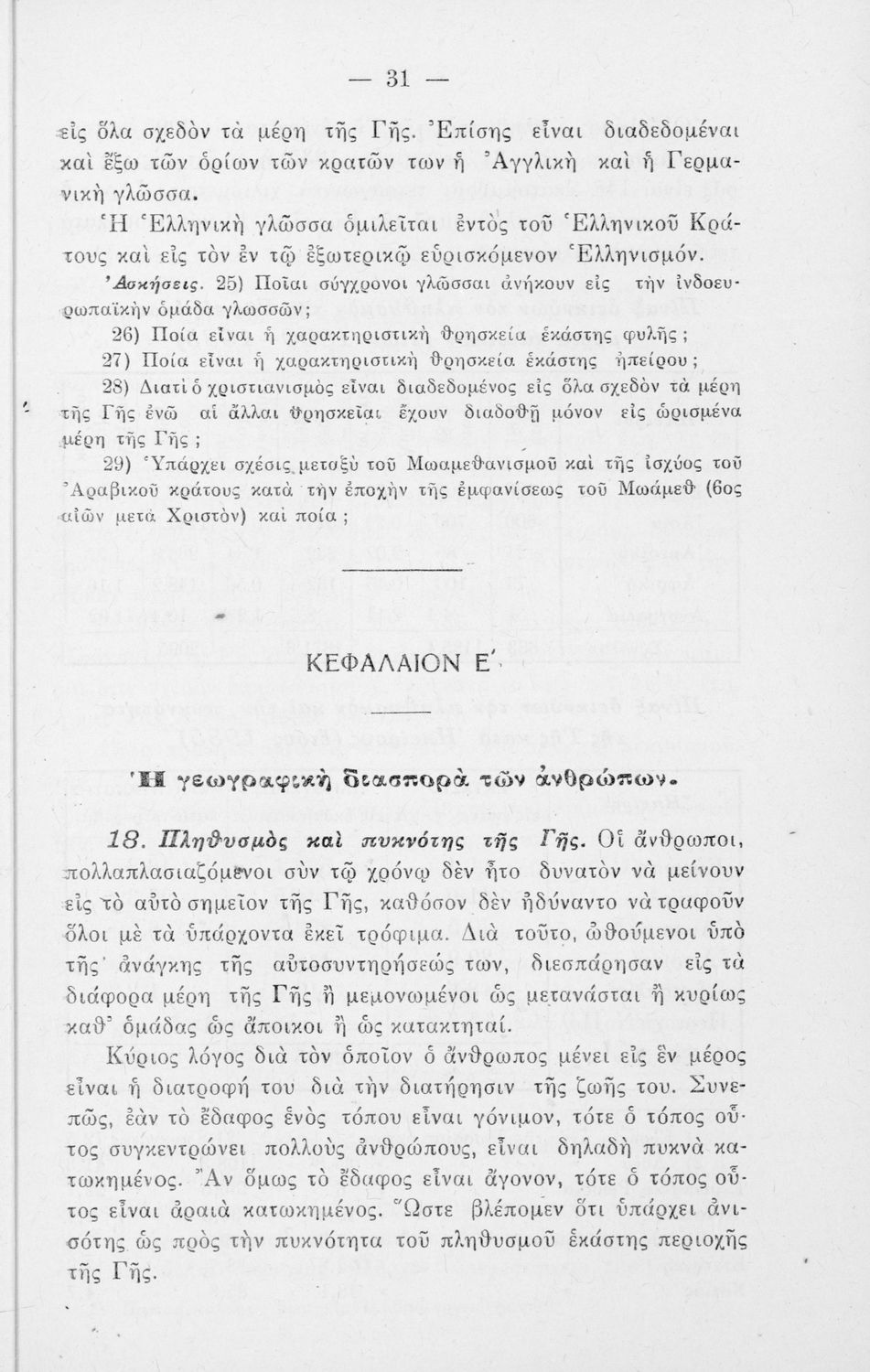 Στοιχεία Ανθρωπογεωγραφίας προς χρήσιν των μαθητών της Ε΄ τάξεως Γυμνασίων και Πρακτικών Λυκείων