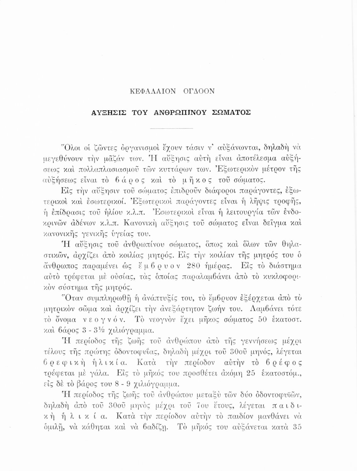 Βαθμίδα εκπαίδευσης: Δευτεροβάθμια Μάθημα: Ανθρωπολογία, Υγιεινή Γλώσσα: Απλή καθαρεύουσα Παρουσίαση περιεχομένου: Σχολικό εγχειρίδιο Ανθρωπολογίας που εστιάζει στην ανατομία και φυσιολογία του ανθρώπινου σώματος καθώς και στα μικρόβια και νοσήματα. |