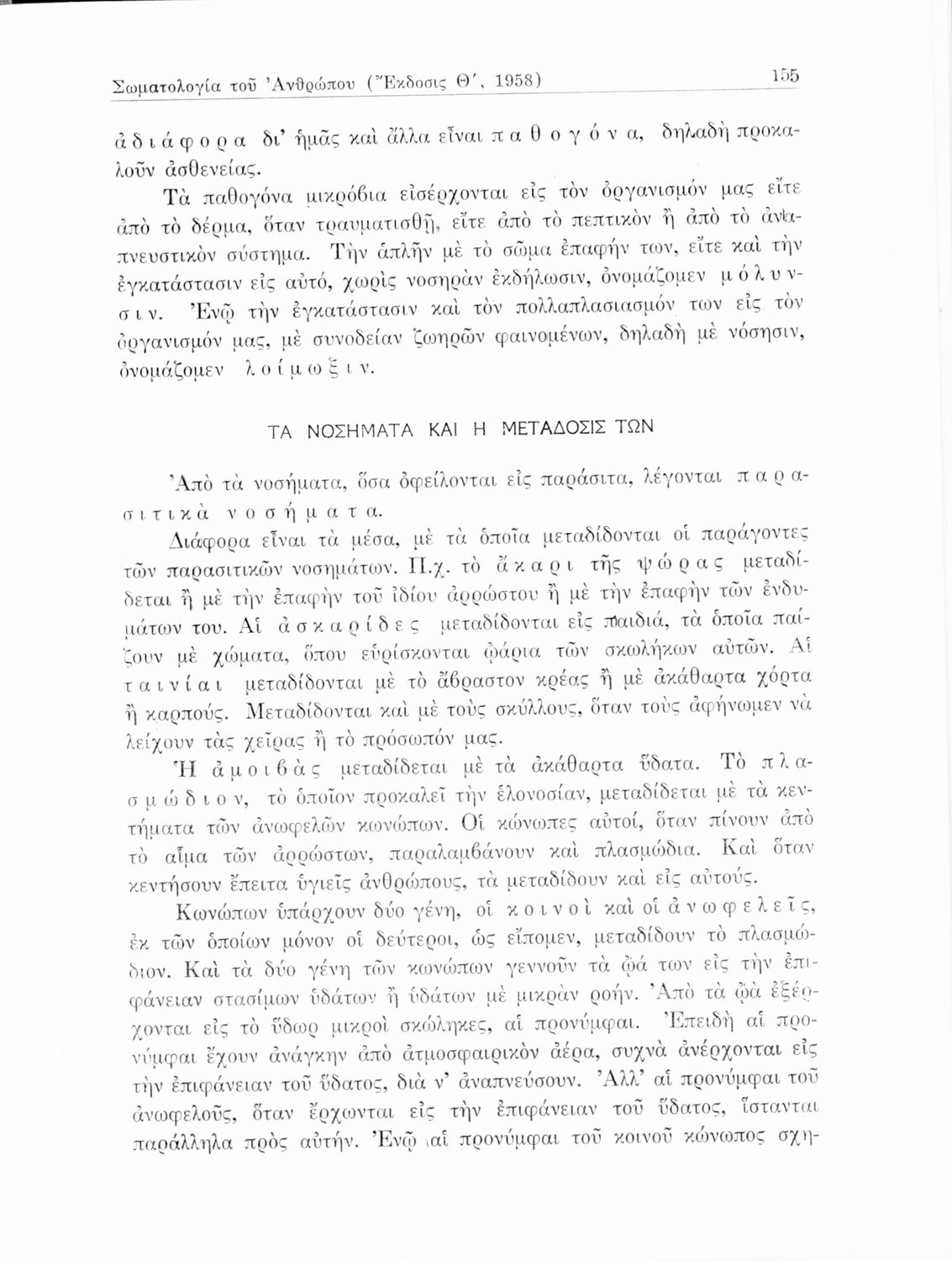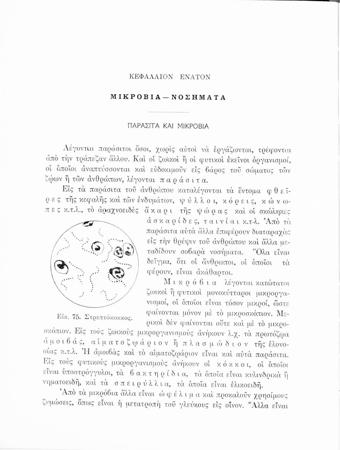 Σχολικό εγχειρίδιο Ανθρωπολογίας που εστιάζει στην ανατομία και φυσιολογία του ανθρώπινου σώματος καθώς και στα μικρόβια και νοσήματα.