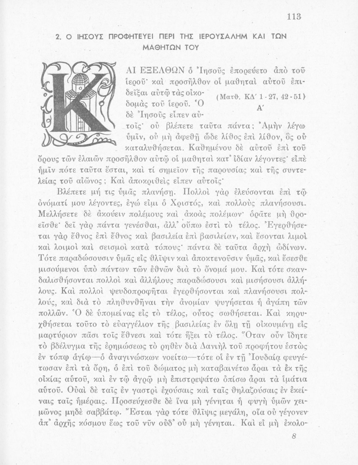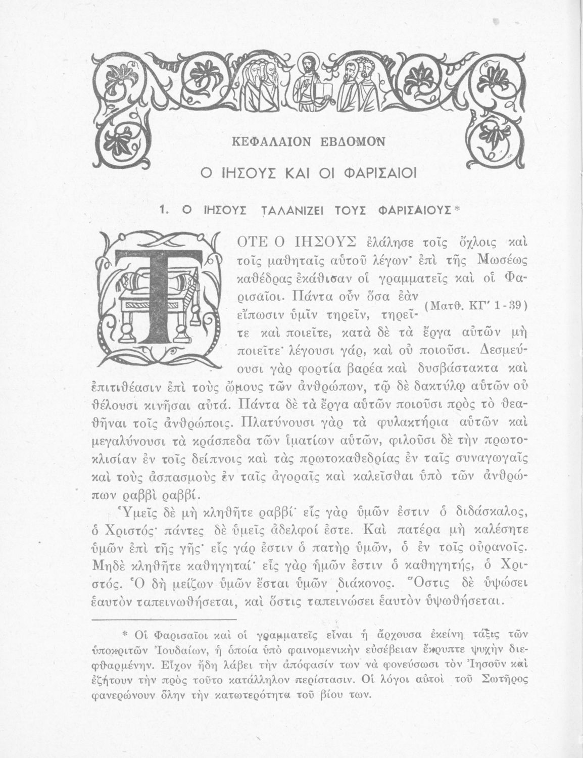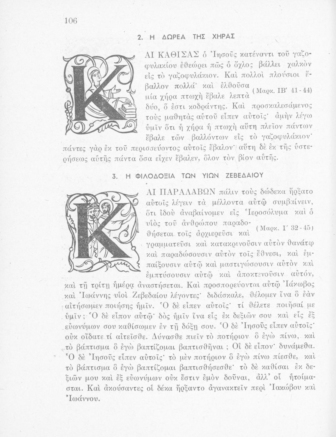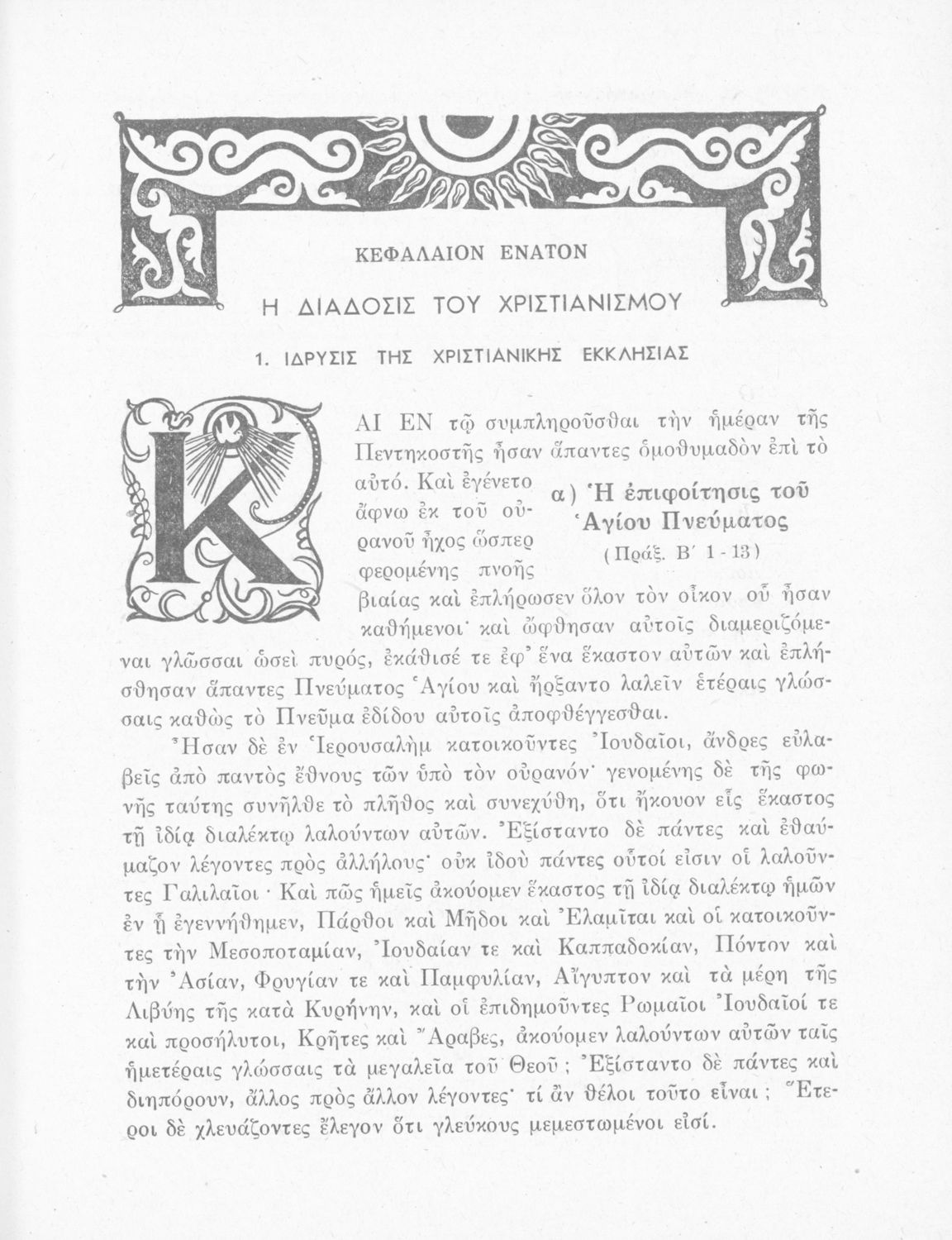 Σχολικό εγχειρίδιο Θρησκευτικών για την Γ΄ Γυμνασίου, τα Διδασκαλεία και τα Ανώτερα Παρθεναγωγεία που περιέχει περικοπές από τα βιβλία της Καινής Διαθήκης και ερμηνευτικές σημειώσεις.