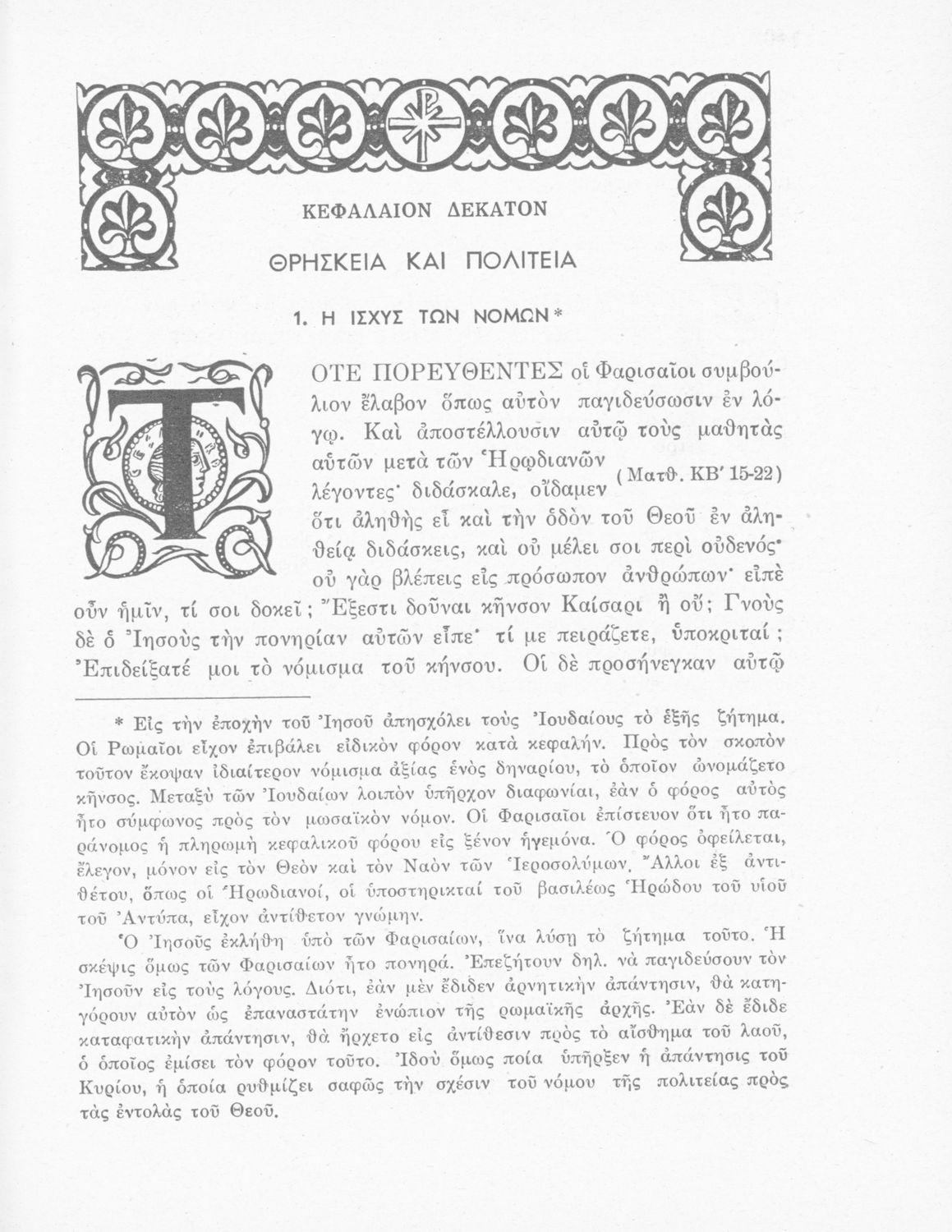 Σχολικό εγχειρίδιο Θρησκευτικών για την Γ΄ Γυμνασίου, τα Διδασκαλεία και τα Ανώτερα Παρθεναγωγεία που περιέχει περικοπές από τα βιβλία της Καινής Διαθήκης και ερμηνευτικές σημειώσεις.