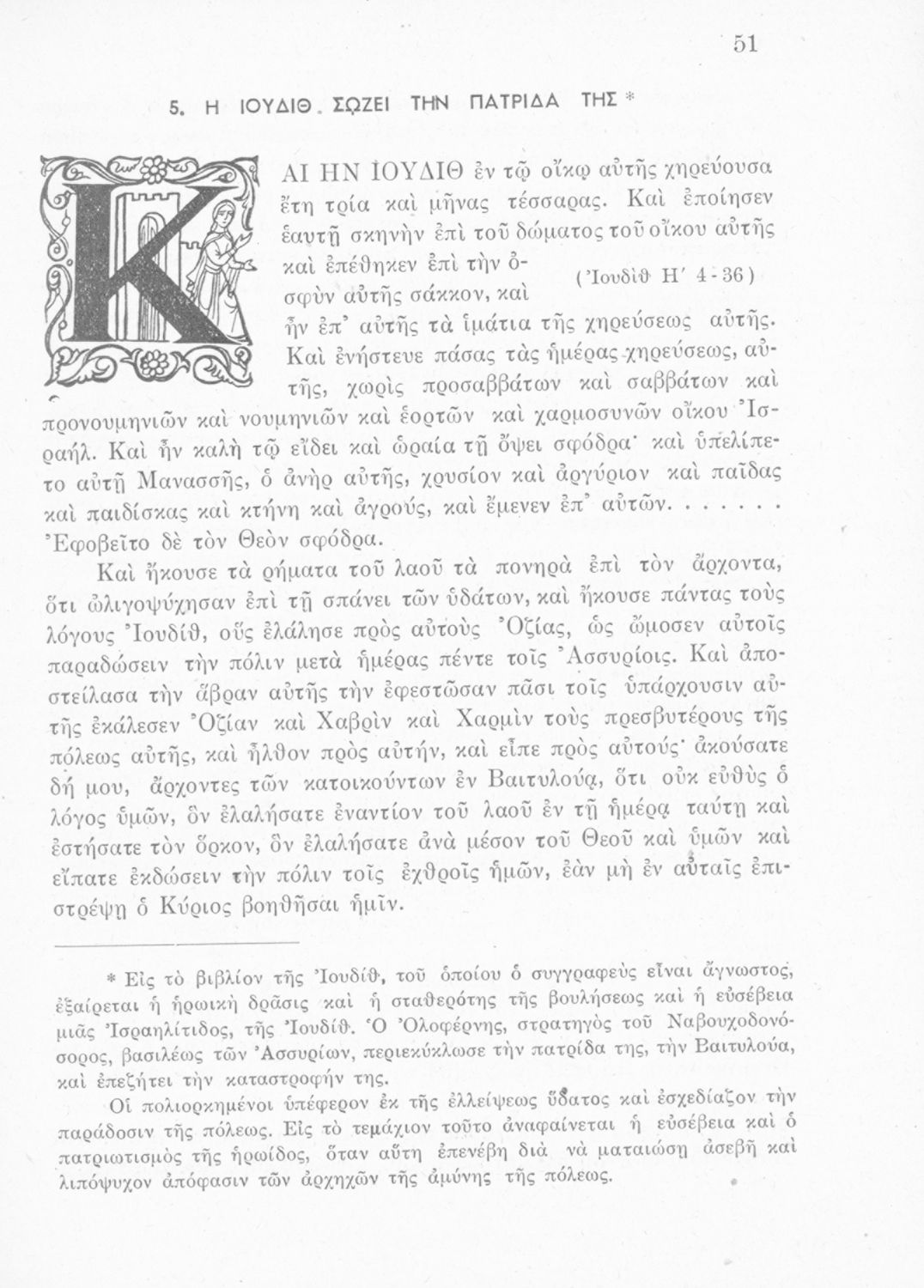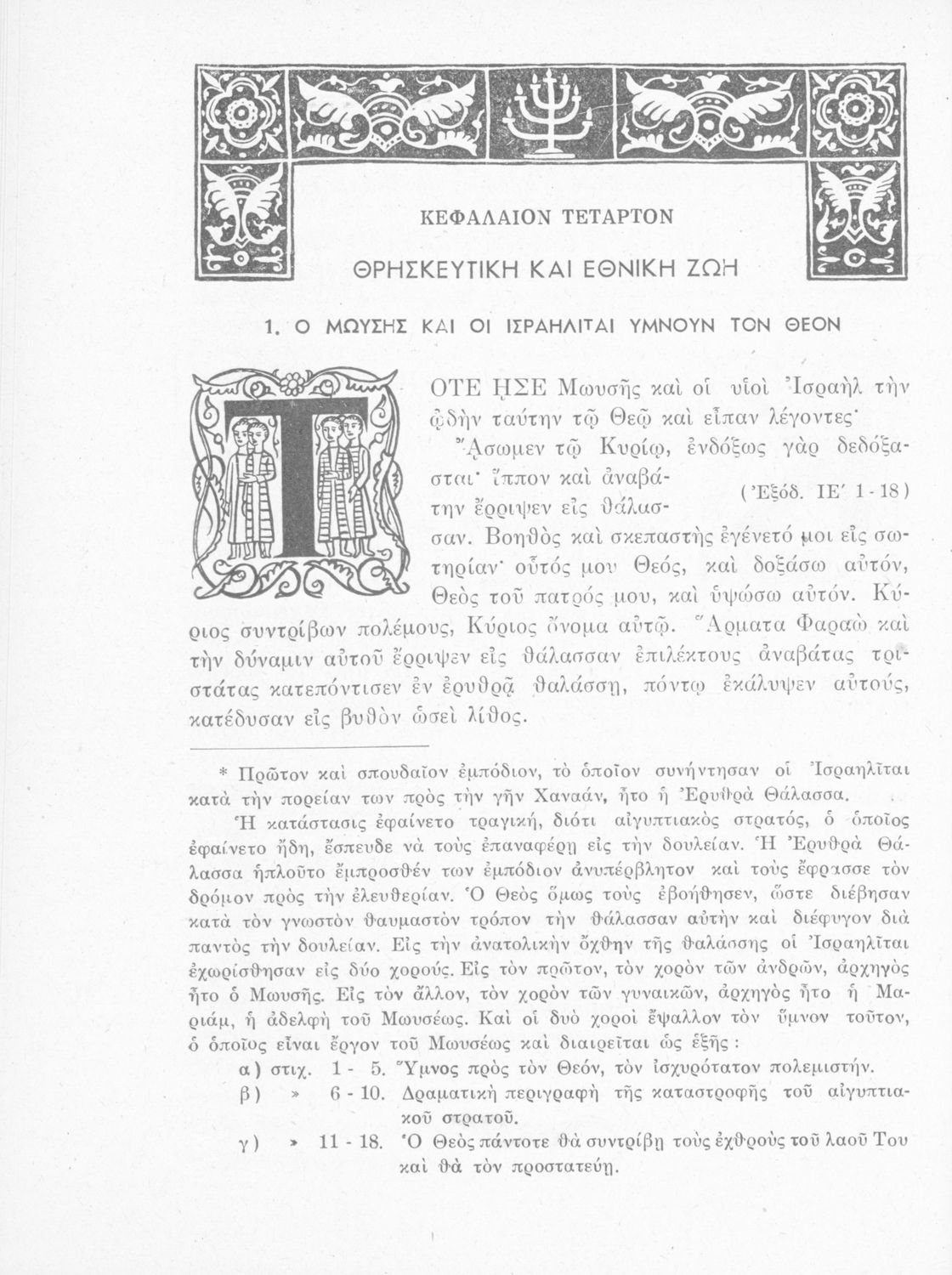 Σχολικό εγχειρίδιο Θρησκευτικών για την Ε΄ Οκταταξίου και Εξατάξιου Γυμνασίου που περιέχει εισαγωγικά σχόλια στα βιβλία της Παλαιάς και Καινής Διαθήκης, περικοπές, ερμηνευτικές και πραγματολογικές σημειώσεις