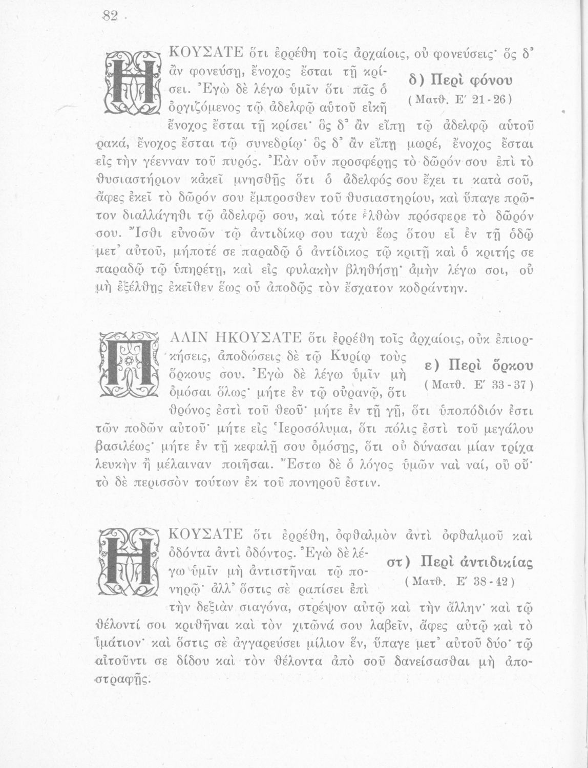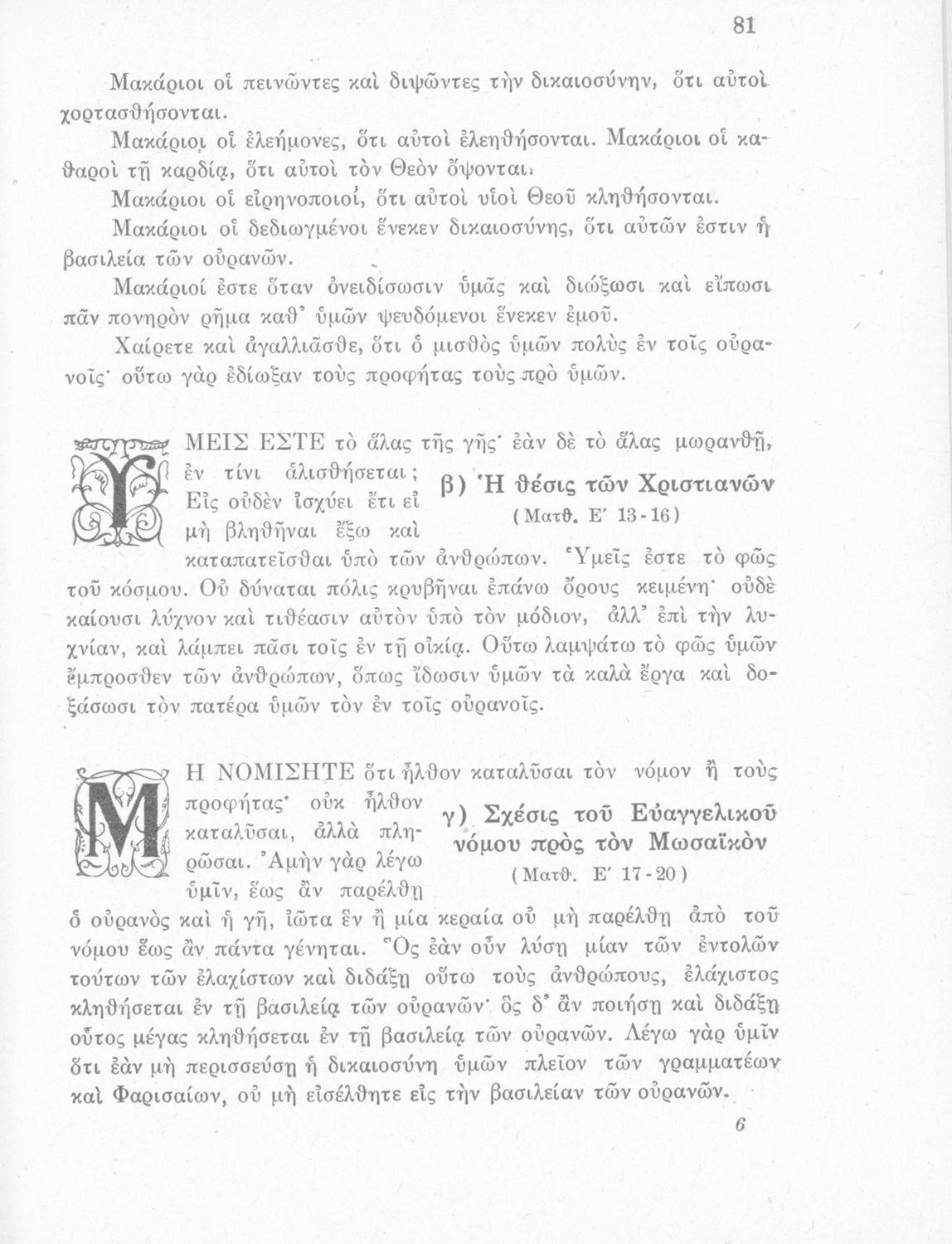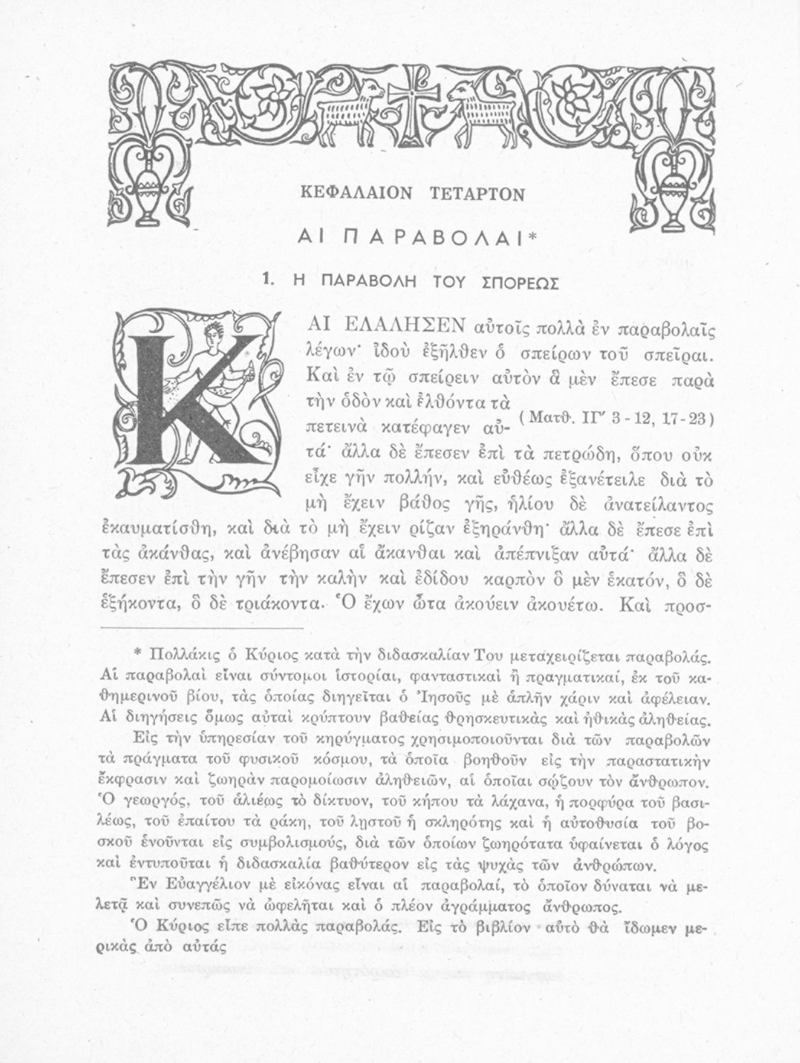 Σχολικό εγχειρίδιο Θρησκευτικών για την Γ΄ Γυμνασίου, τα Διδασκαλεία και τα Ανώτερα Παρθεναγωγεία που περιέχει περικοπές από τα βιβλία της Καινής Διαθήκης και ερμηνευτικές σημειώσεις.