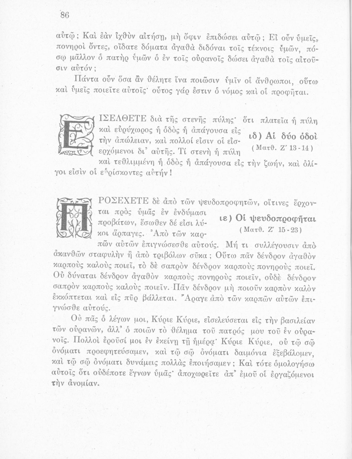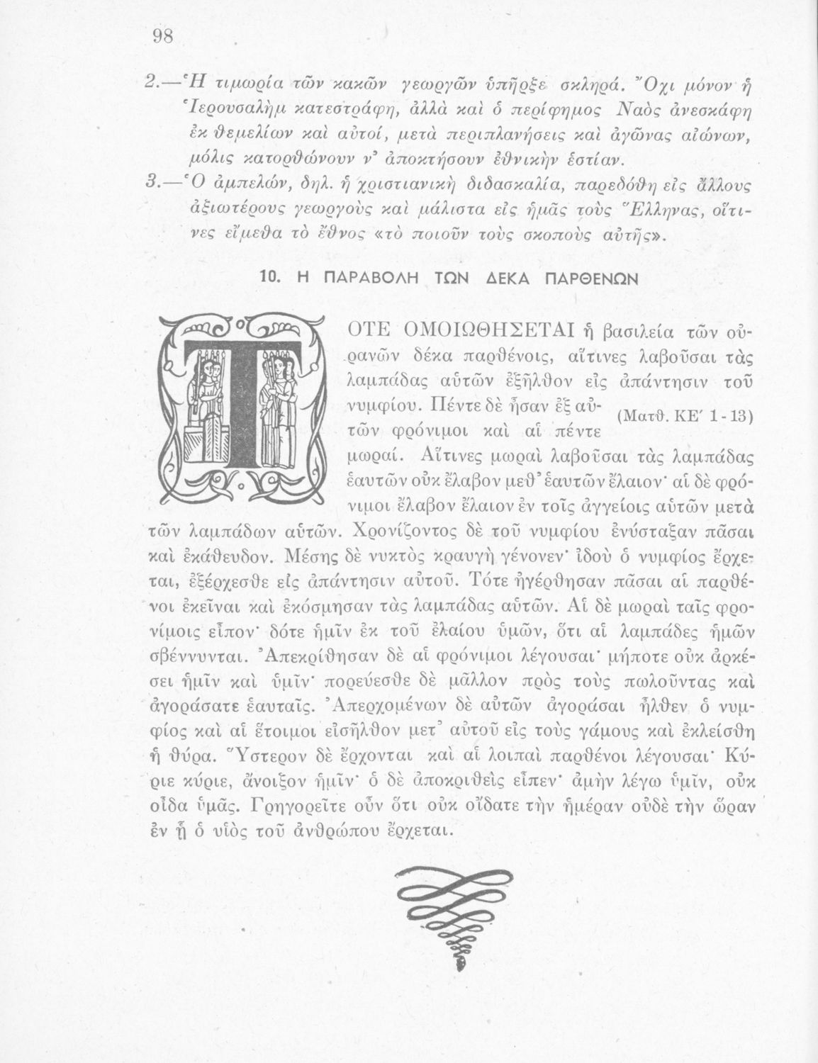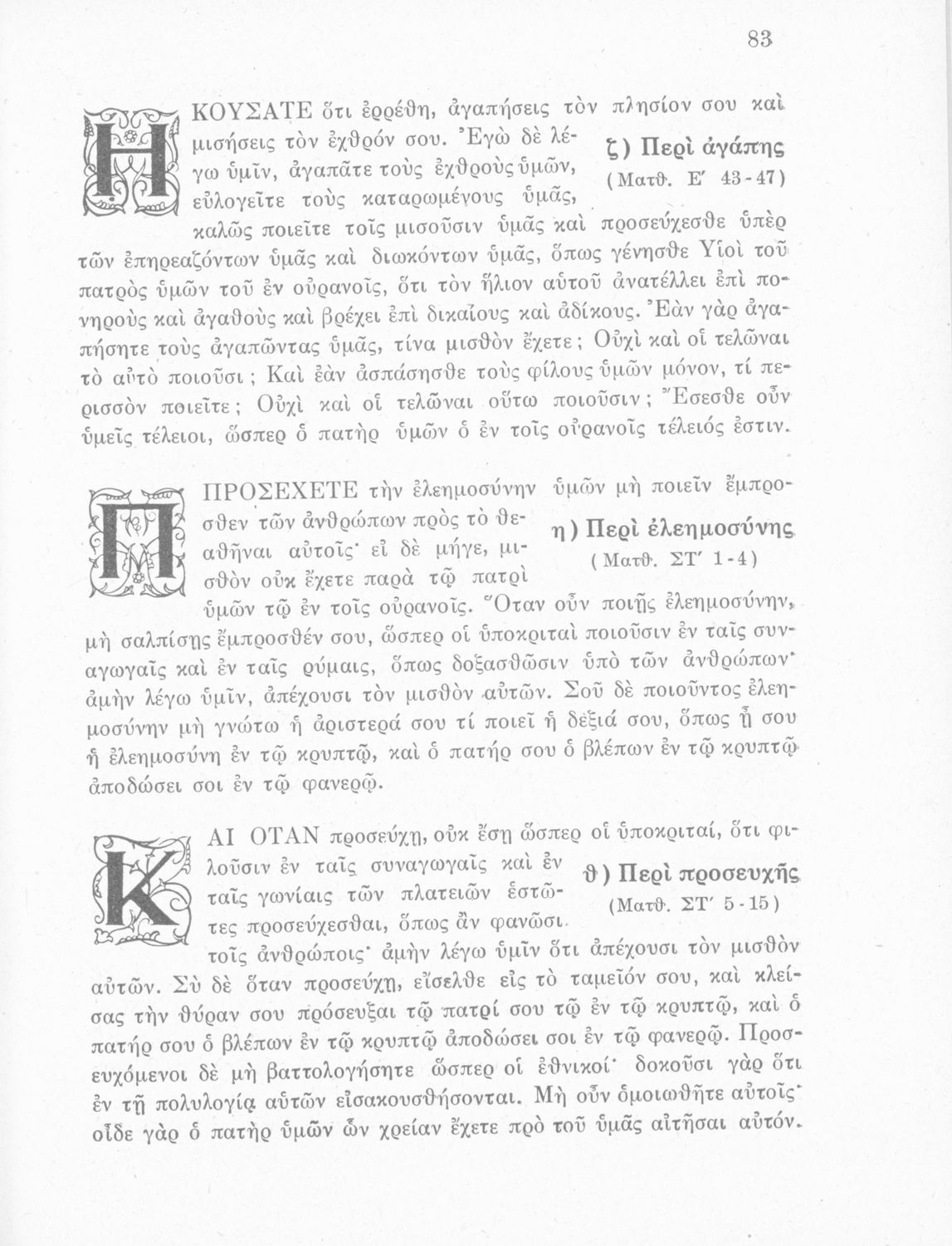 Σχολικό εγχειρίδιο Θρησκευτικών για την Γ΄ Γυμνασίου, τα Διδασκαλεία και τα Ανώτερα Παρθεναγωγεία που περιέχει περικοπές από τα βιβλία της Καινής Διαθήκης και ερμηνευτικές σημειώσεις.