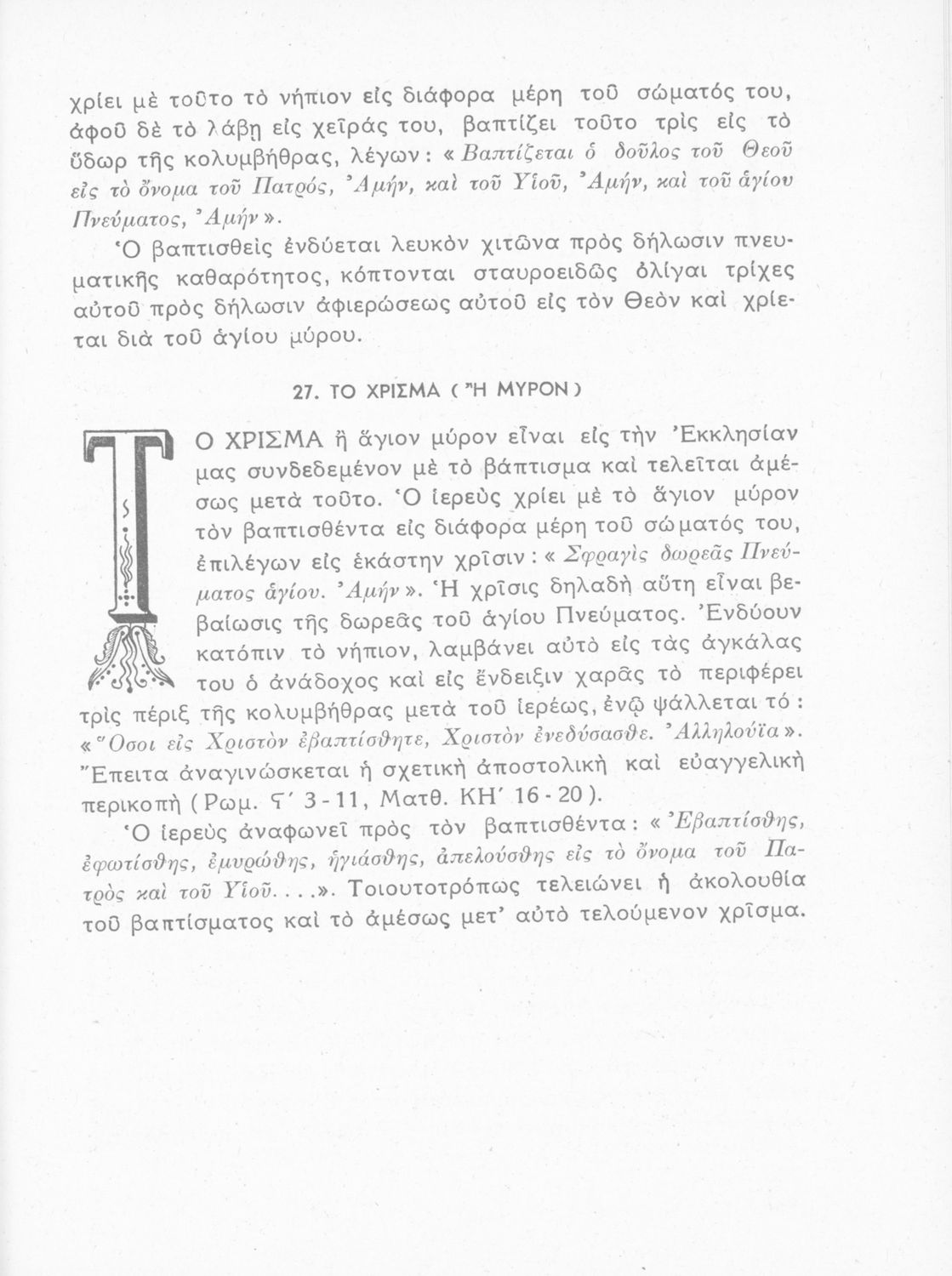 Μάθημα: Θρησκευτικά Γλώσσα: Απλή καθαρεύουσα Παρουσίαση περιεχομένου: Σχολικό εγχειρίδιο Θρησκευτικών που αναλύει την έννοια της κατήχησης στις διάφορες θρησκείες με έμφαση στο ορθόδοξο χριστιανικό δόγμα, το οποίο εξετάζει από δογματική και ηθική σκοπιά. Περιλαμβάνει και στοιχεία λειτουργικής της Ορθόδοξης Εκκλησίας. Περιέχονται εκκλησιαστικοί ύμνοι και προσευχές. |