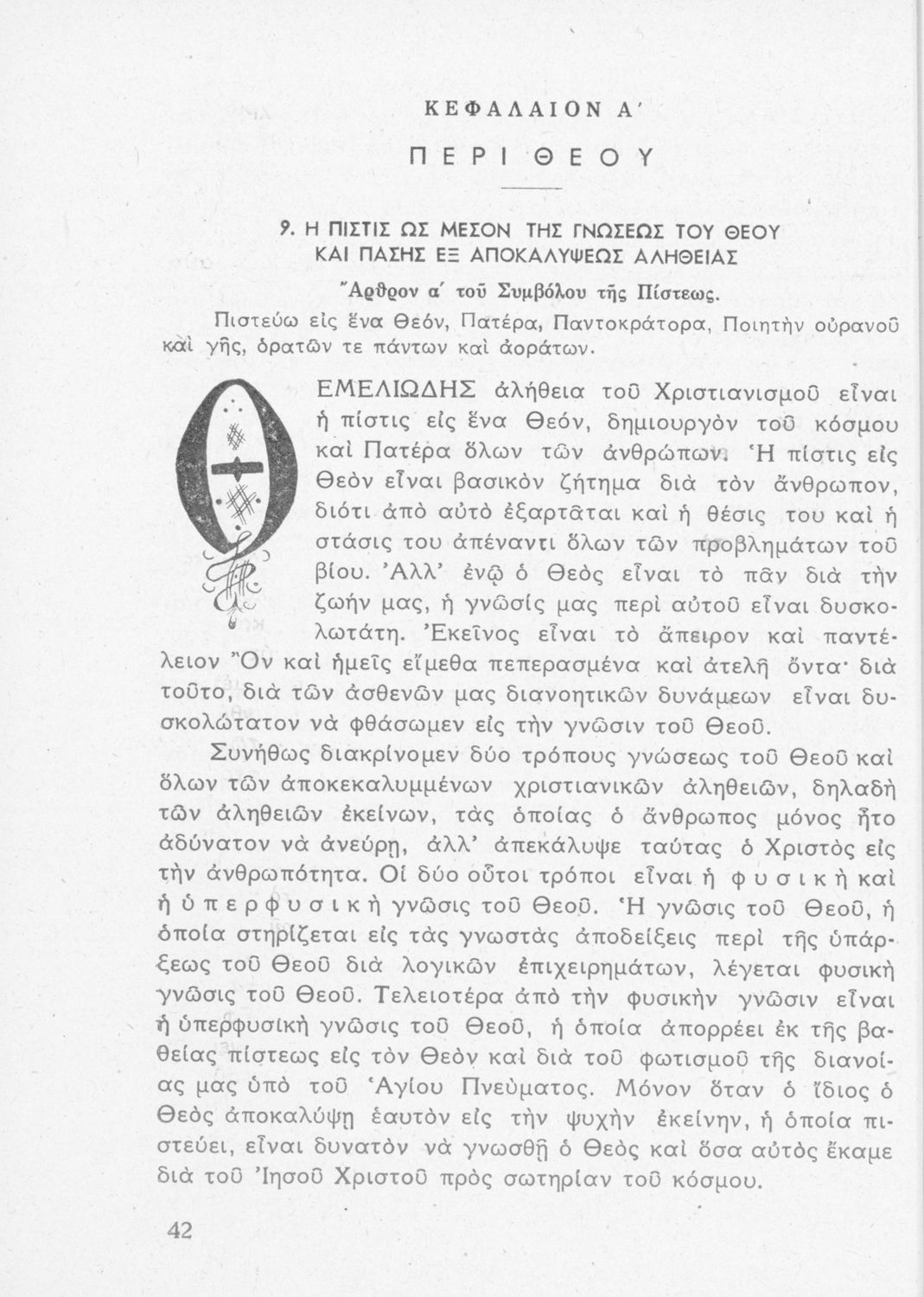 Σχολικό εγχειρίδιο Θρησκευτικών που αναλύει την έννοια της κατήχησης στις διάφορες θρησκείες με έμφαση στο ορθόδοξο χριστιανικό δόγμα, το οποίο εξετάζει από δογματική και ηθική σκοπιά. Περιλαμβάνει και στοιχεία λειτουργικής της Ορθόδοξης Εκκλησίας. Περιέχονται εκκλησιαστικοί ύμνοι και προσευχές.