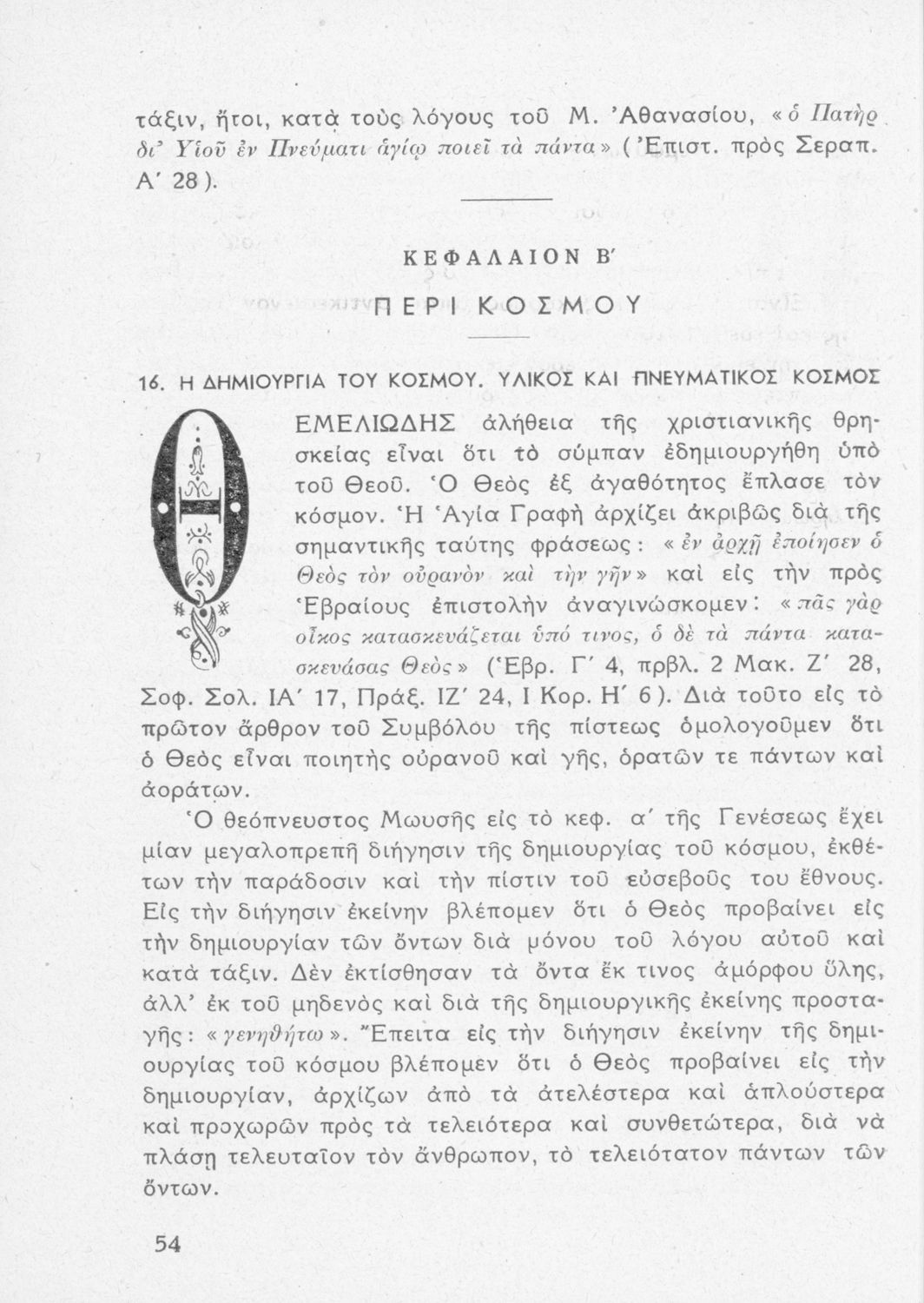 Παρουσίαση περιεχομένου: Σχολικό εγχειρίδιο Θρησκευτικών που αναλύει την έννοια της κατήχησης στις διάφορες θρησκείες με έμφαση στο ορθόδοξο χριστιανικό δόγμα, το οποίο εξετάζει από δογματική και ηθική σκοπιά. Περιλαμβάνει και στοιχεία λειτουργικής της Ορθόδοξης Εκκλησίας. Περιέχονται εκκλησιαστικοί ύμνοι και προσευχές.