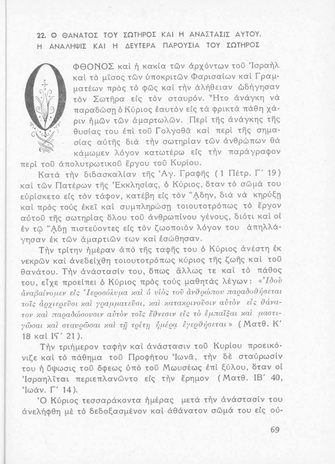 Σχολικό εγχειρίδιο Θρησκευτικών που αναλύει την έννοια της κατήχησης στις διάφορες θρησκείες με έμφαση στο ορθόδοξο χριστιανικό δόγμα, το οποίο εξετάζει από δογματική και ηθική σκοπιά. Περιλαμβάνει και στοιχεία λειτουργικής της Ορθόδοξης Εκκλησίας. Περιέχονται εκκλησιαστικοί ύμνοι και προσευχές.