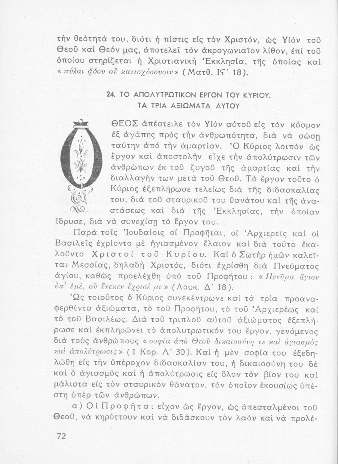 Παρουσίαση περιεχομένου: Σχολικό εγχειρίδιο Θρησκευτικών που αναλύει την έννοια της κατήχησης στις διάφορες θρησκείες με έμφαση στο ορθόδοξο χριστιανικό δόγμα, το οποίο εξετάζει από δογματική και ηθική σκοπιά. Περιλαμβάνει και στοιχεία λειτουργικής της Ορθόδοξης Εκκλησίας. Περιέχονται εκκλησιαστικοί ύμνοι και προσευχές.