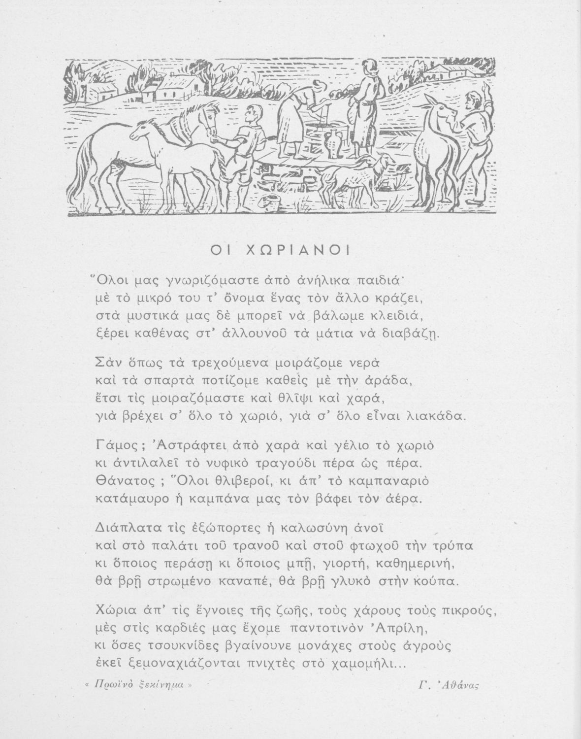 Σχολικό εγχειρίδιο Νέων Ελληνικών Δ΄ Γυμνασίου και Β΄ Αστικού Σχολείου που περιέχει πεζά και ποιήματα Ελλήνων συγγραφέων εμπνευσμένα από τη θρησκευτική και κοινωνική ζωή, την ελληνική μυθολογία, την αρχαία και