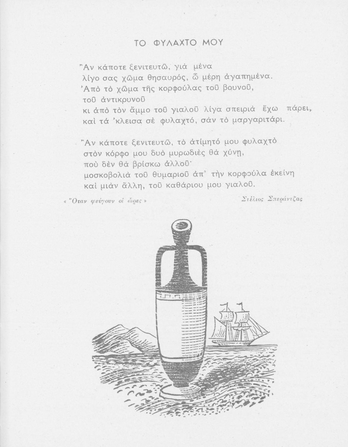 Σχολικό εγχειρίδιο Νέων Ελληνικών Β΄ Εξαταξίου Γυμνασίου που περιλαμβάνει που περιλαμβάνει ποιήματα και πεζά Ελλήνων συγγραφέων εμπνευσμένα από την αρχαία και σύγχρονη ελληνική ιστορία, την ελληνική φύση και ...