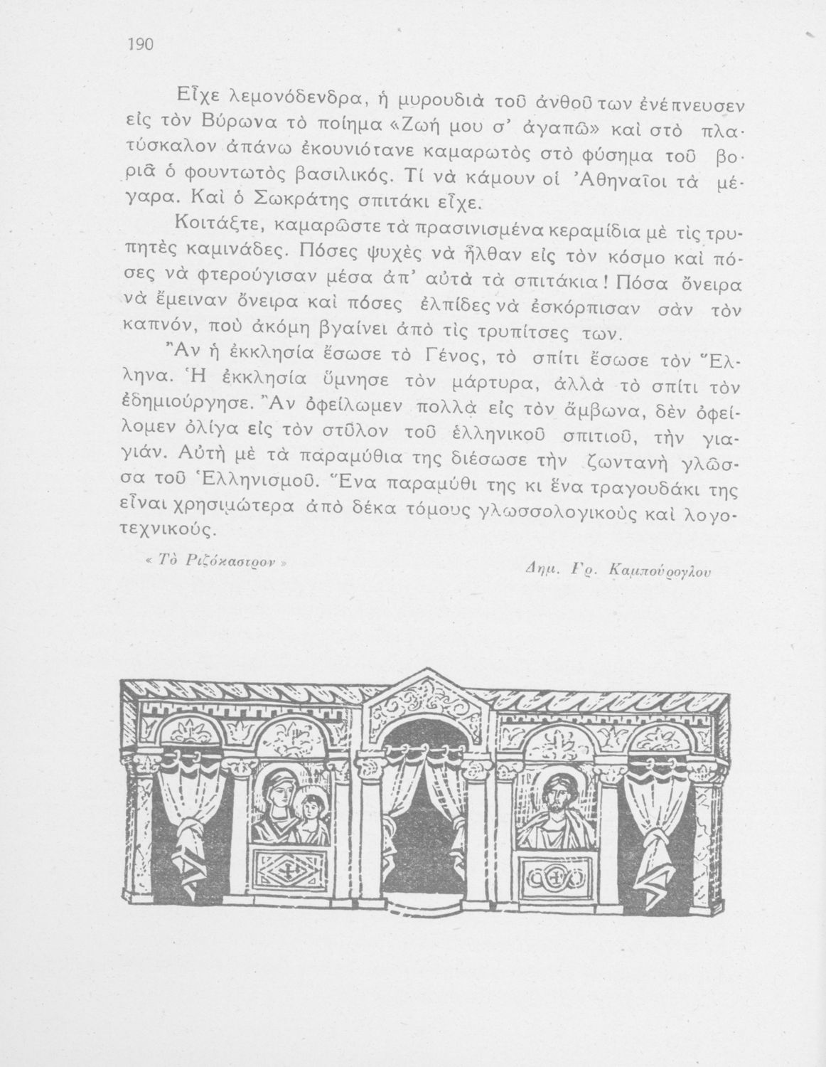 Σχολικό εγχειρίδιο Νέων Ελληνικών Δ΄ Γυμνασίου και Β΄ Αστικού Σχολείου που περιέχει πεζά και ποιήματα Ελλήνων συγγραφέων εμπνευσμένα από τη θρησκευτική και κοινωνική ζωή, την ελληνική μυθολογία, την αρχαία και