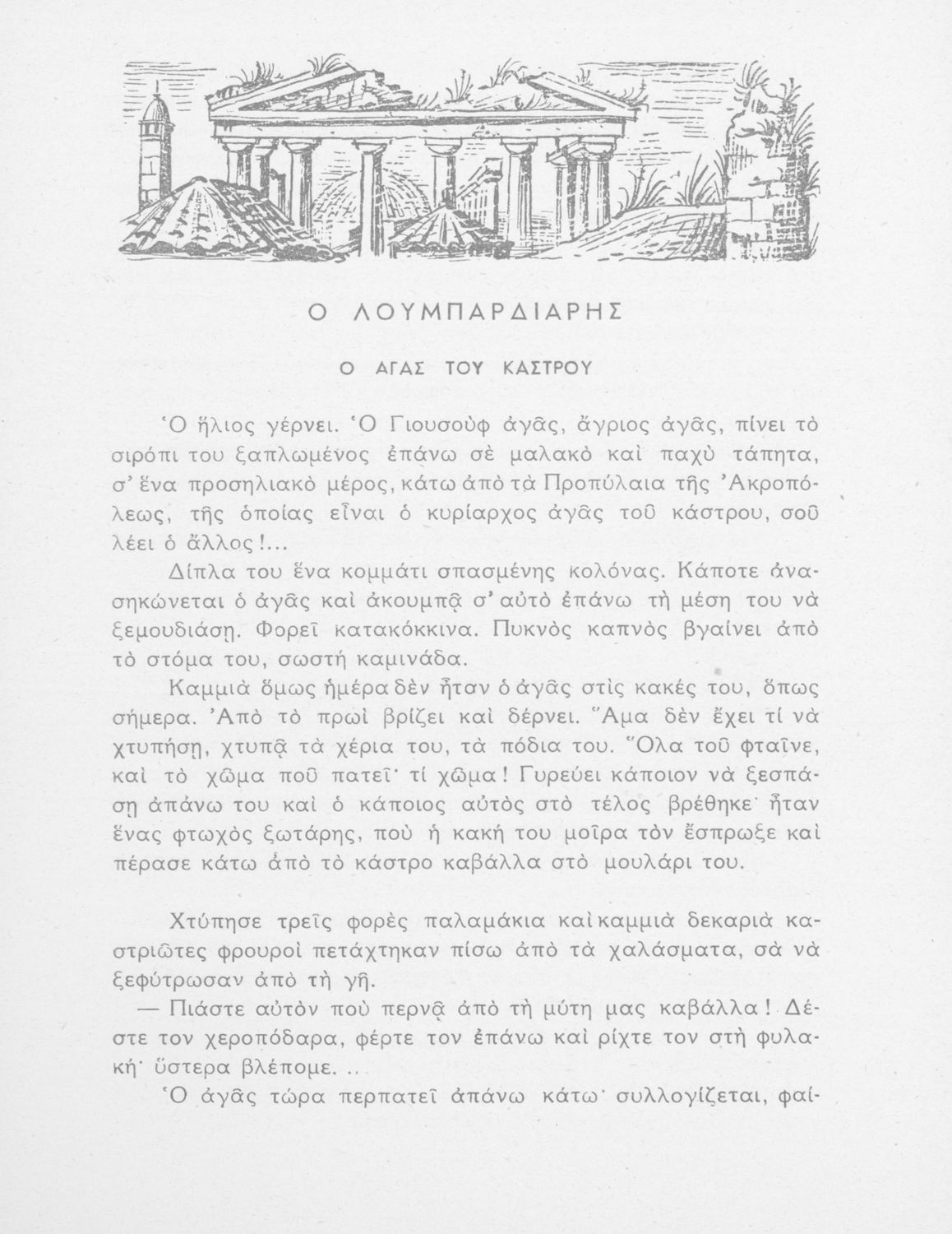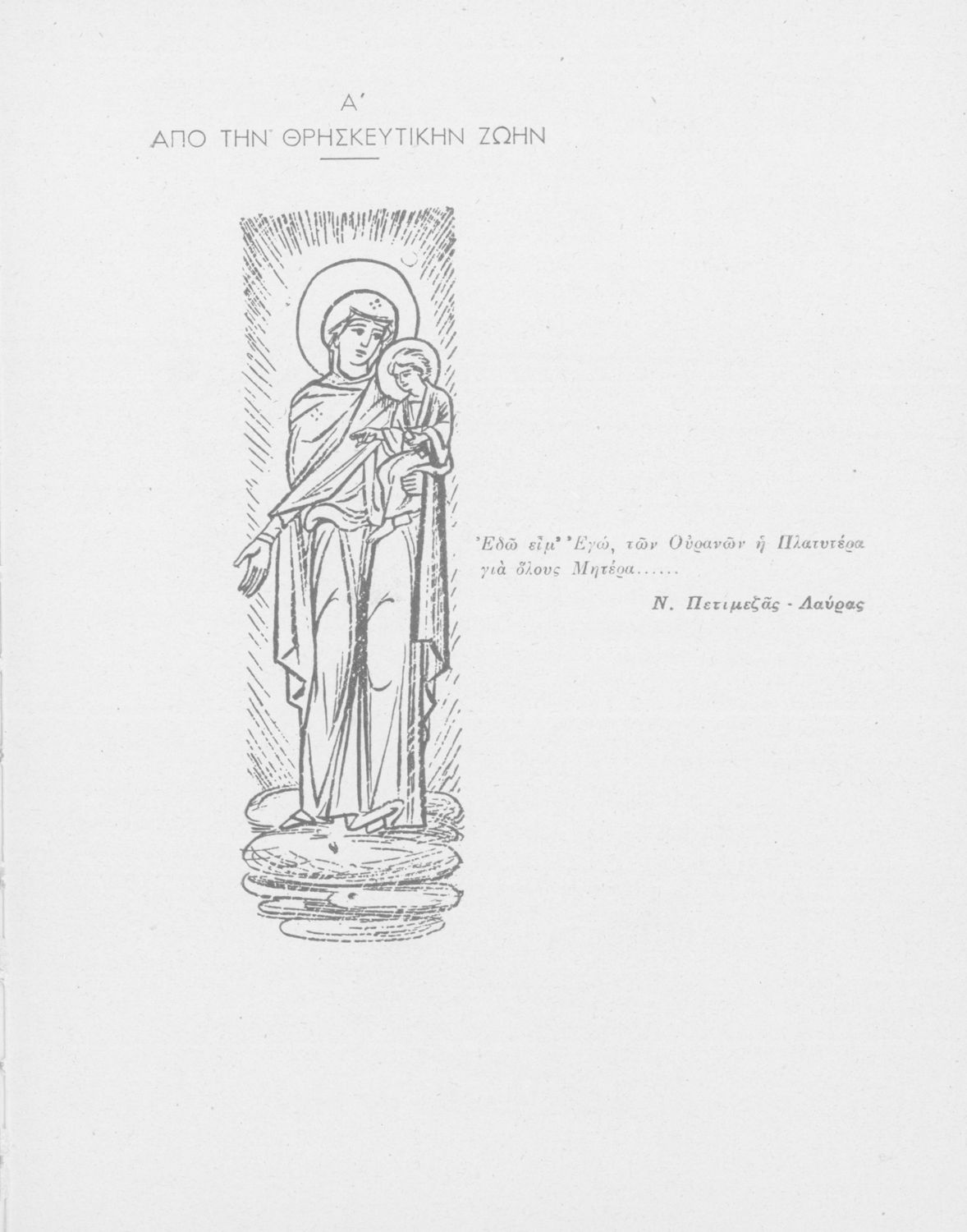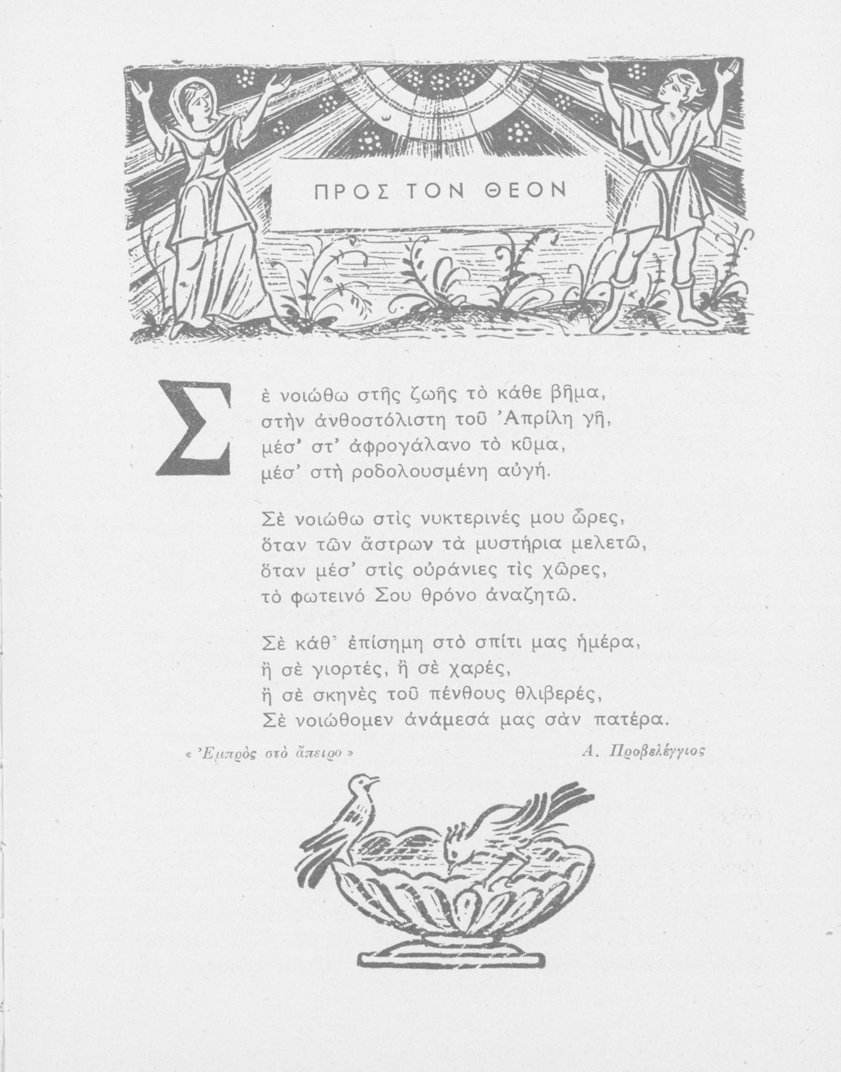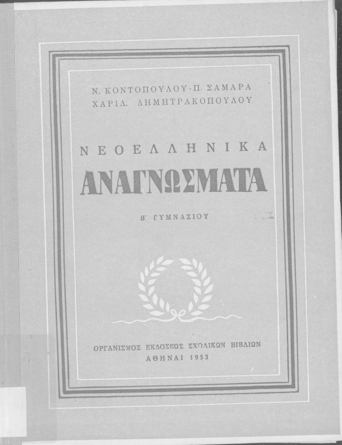 Σχολικό εγχειρίδιο Νέων Ελληνικών Δ΄ Γυμνασίου και Β΄ Αστικού Σχολείου που περιέχει πεζά και ποιήματα Ελλήνων συγγραφέων εμπνευσμένα από τη θρησκευτική και κοινωνική ζωή, την ελληνική μυθολογία, την αρχαία και