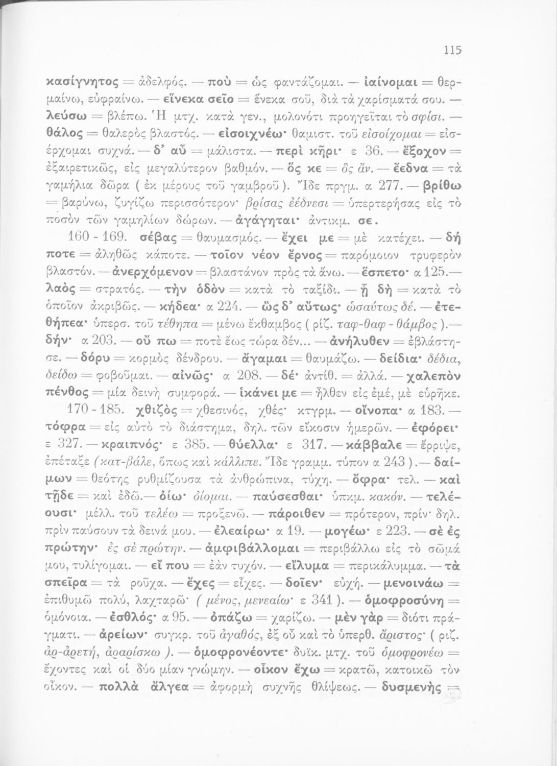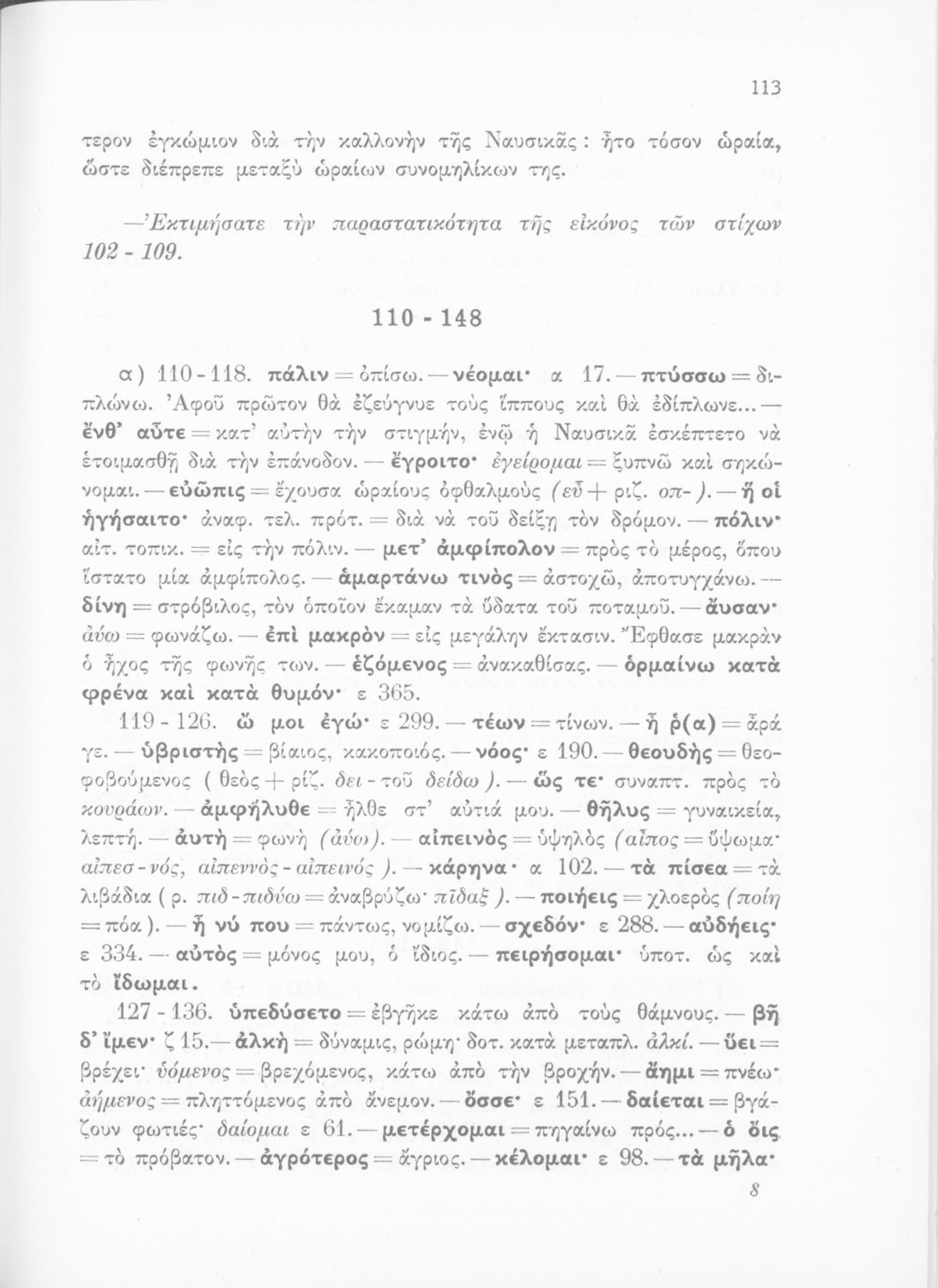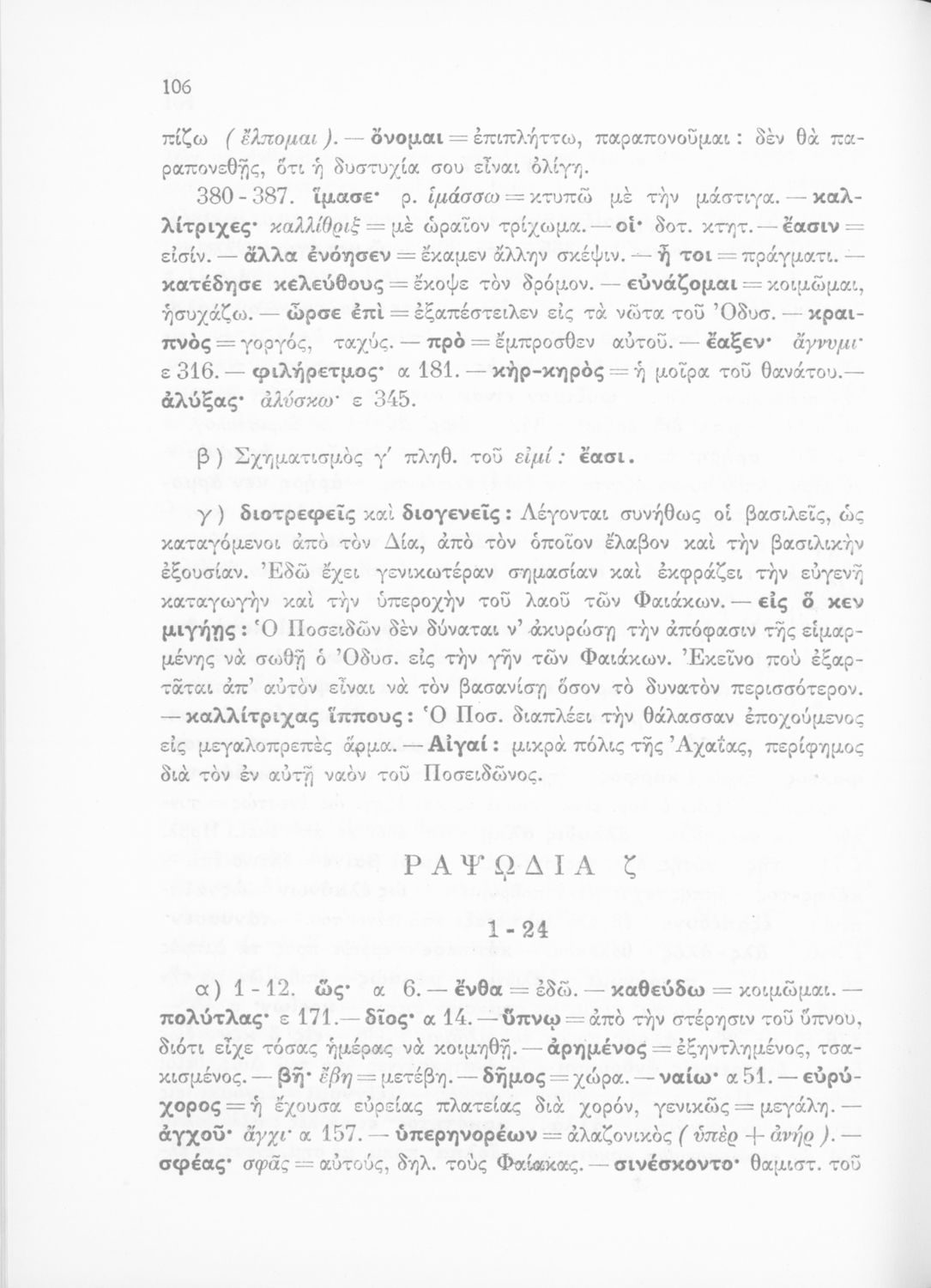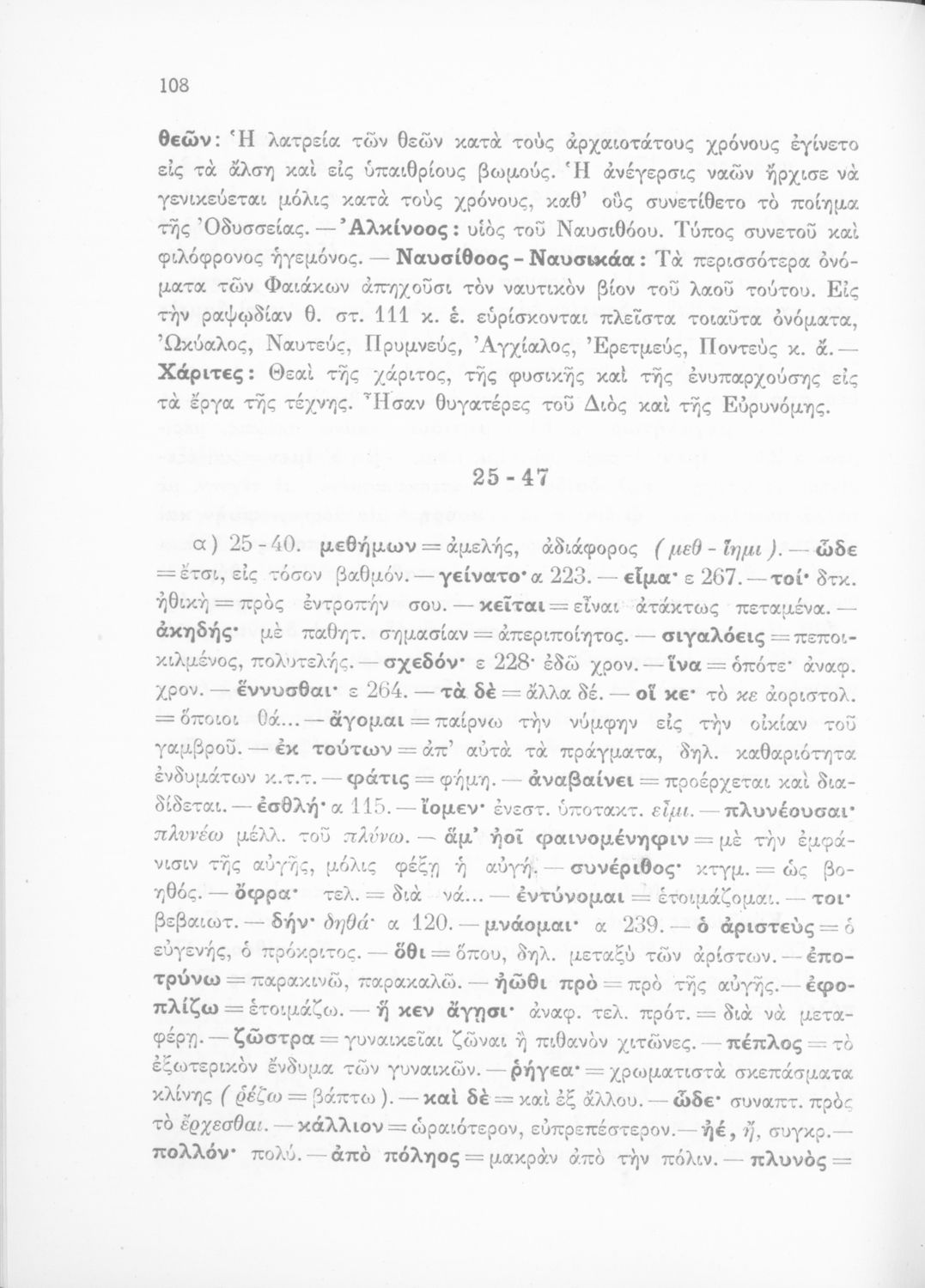 Σχολικό εγχειρίδιο του Γυμνάσιου για το μάθημα των Αρχαίων Ελληνικών. Περιέχει ραψωδίες της Οδύσσειας σε αρχαίο κείμενο, καθώς και τη μετάφραση, τα ερμηνευτικά, πραγματολογικά σχόλια και τις λεξιλογικές παρατηρήσεις των συγγραφέων. Ο συγγραφέας ήταν Καθηγητής στο Κολέγιο Αθηνών. Η συγγραφέας ήταν Καθηγήτρια Φιλόλογος.
