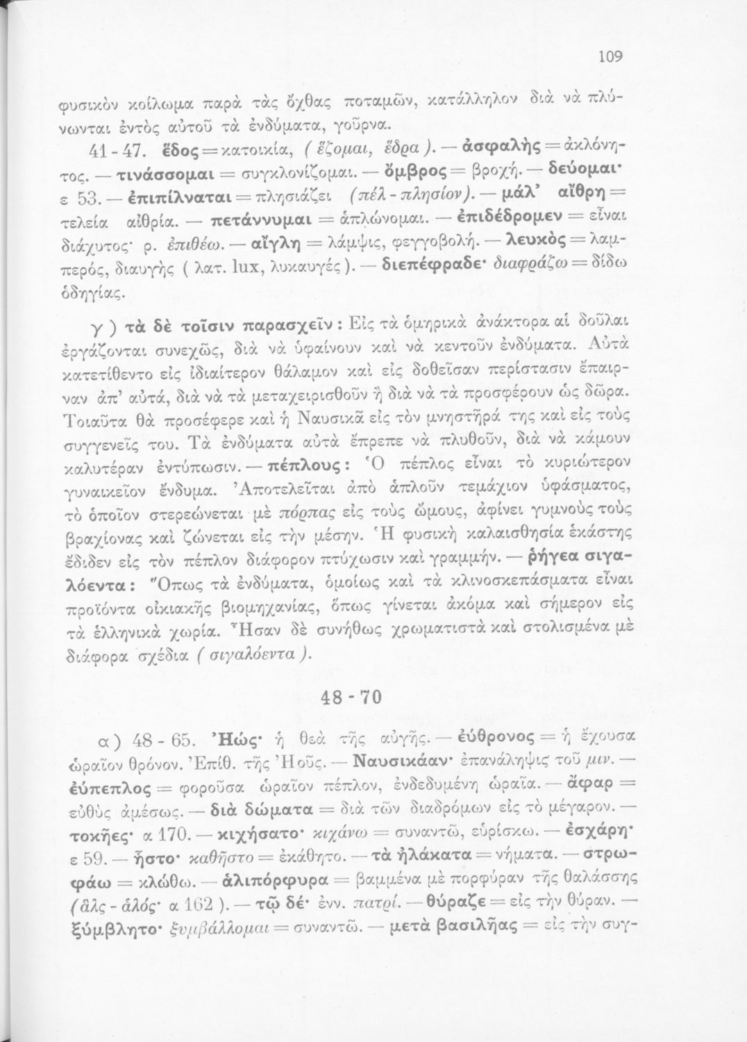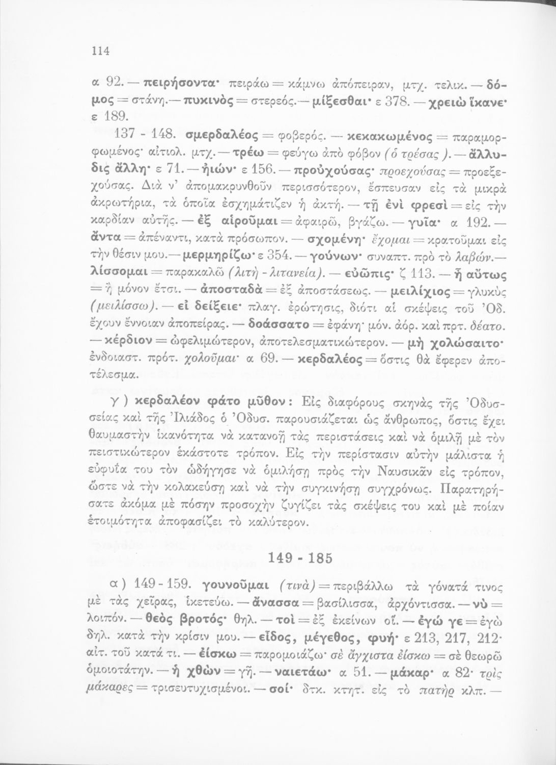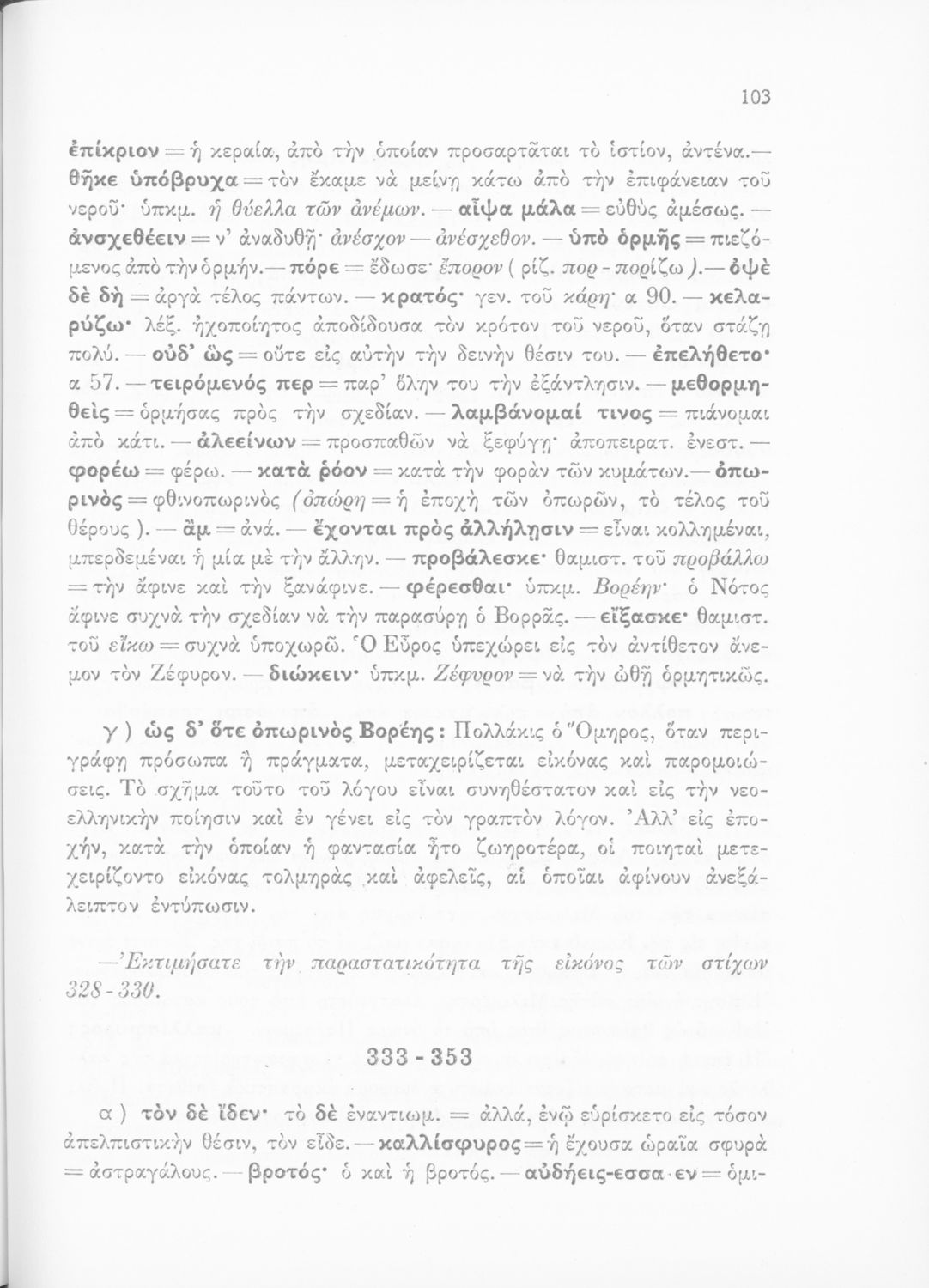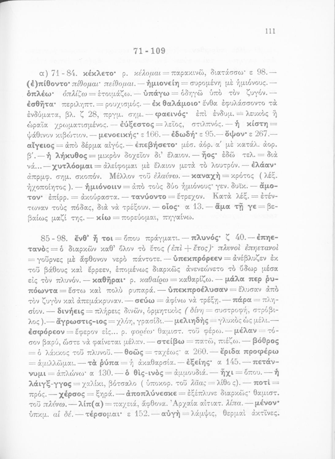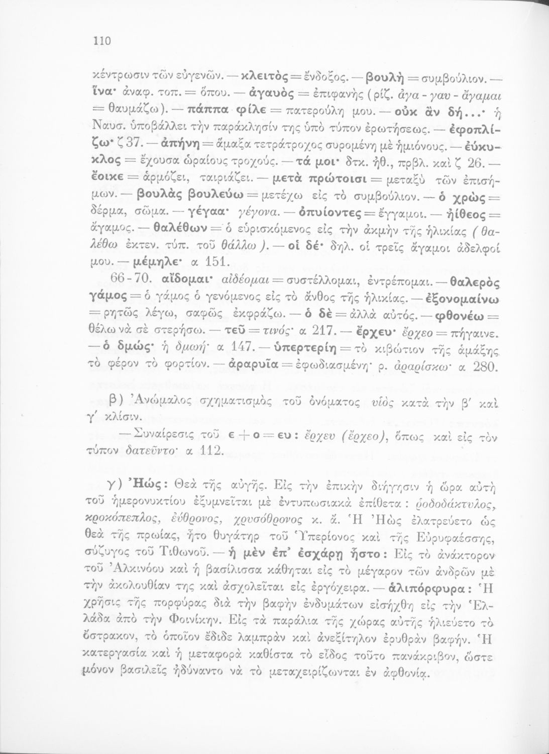 Σχολικό εγχειρίδιο του Γυμνάσιου για το μάθημα των Αρχαίων Ελληνικών. Περιέχει ραψωδίες της Οδύσσειας σε αρχαίο κείμενο, καθώς και τη μετάφραση, τα ερμηνευτικά, πραγματολογικά σχόλια και τις λεξιλογικές παρατηρήσεις των συγγραφέων. Ο συγγραφέας ήταν Καθηγητής στο Κολέγιο Αθηνών. Η συγγραφέας ήταν Καθηγήτρια Φιλόλογος.