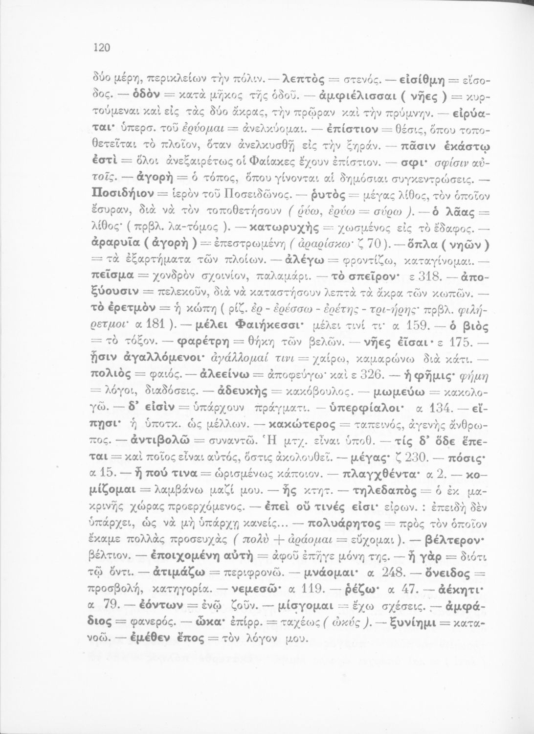Σχολικό εγχειρίδιο του Γυμνάσιου για το μάθημα των Αρχαίων Ελληνικών. Περιέχει ραψωδίες της Οδύσσειας σε αρχαίο κείμενο, καθώς και τη μετάφραση, τα ερμηνευτικά, πραγματολογικά σχόλια και τις λεξιλογικές παρατηρήσεις των συγγραφέων. Ο συγγραφέας ήταν Καθηγητής στο Κολέγιο Αθηνών. Η συγγραφέας ήταν Καθηγήτρια Φιλόλογος.