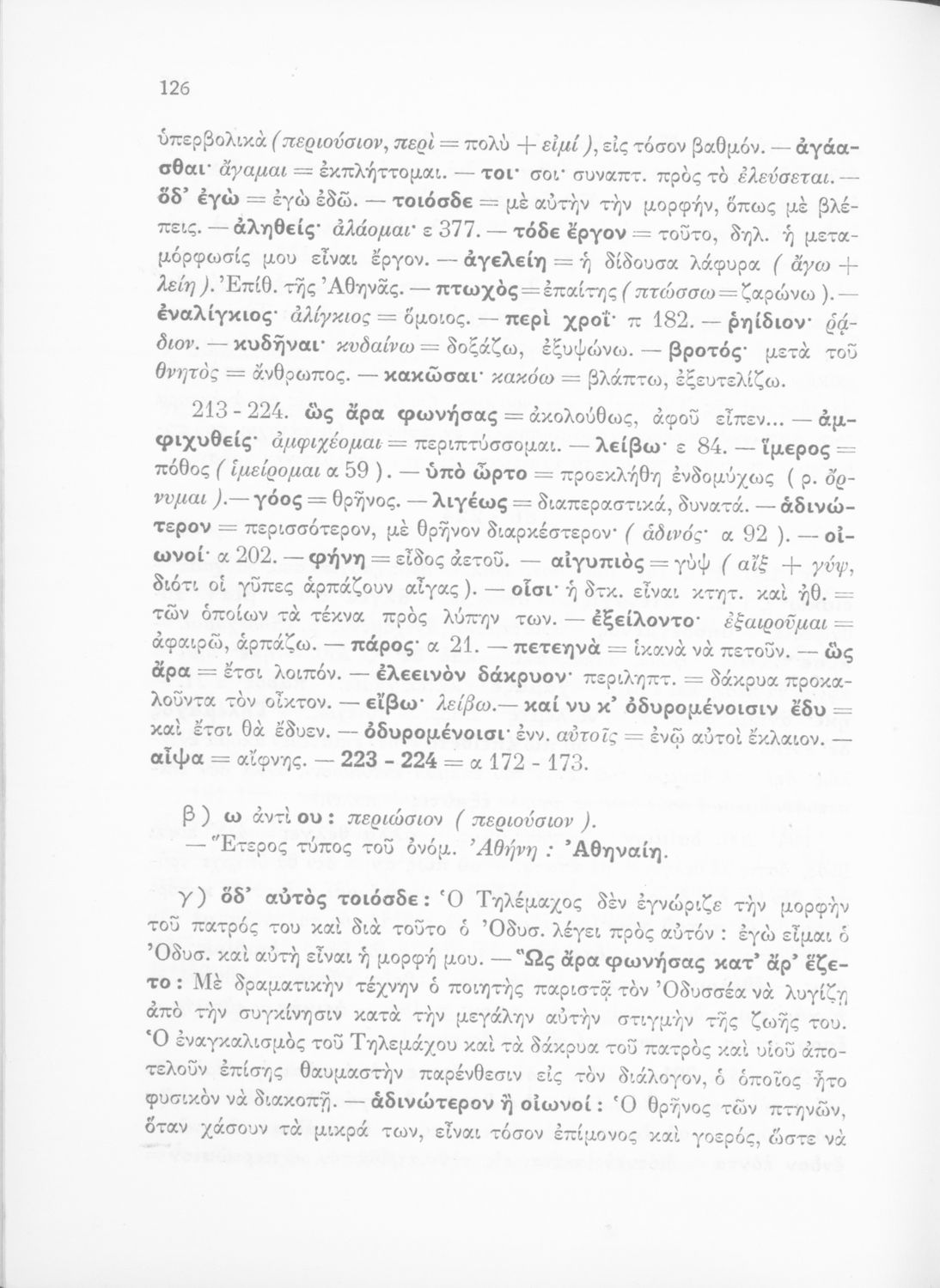 Μαθητικό βοήθημα του Ελληνικού Σχολείου, των Παρθεναγωγείων και του Γυμνασίου για το μάθημα των Αρχαίων Ελληνικών. Περιέχει τις ραψωδίες Ο, Π, Ρ, Σ, Τ, Χ, ψ, Ω από το πρωτότυπο με σχόλια και ερμηνευτικές ...