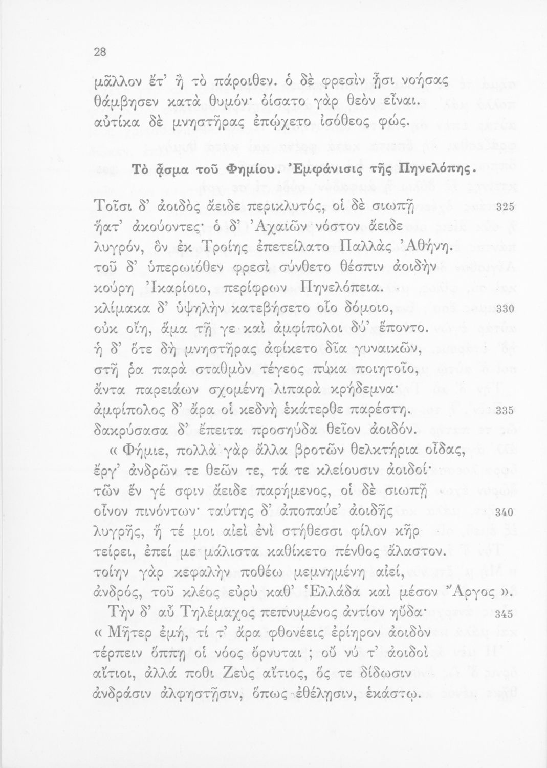 Μαθητικό βοήθημα του Ελληνικού Σχολείου, των Παρθεναγωγείων και του Γυμνασίου για το μάθημα των Αρχαίων Ελληνικών. Περιέχει τις ραψωδίες Ο, Π, Ρ, Σ, Τ, Χ, ψ, Ω από το πρωτότυπο με σχόλια και ερμηνευτικές ...
