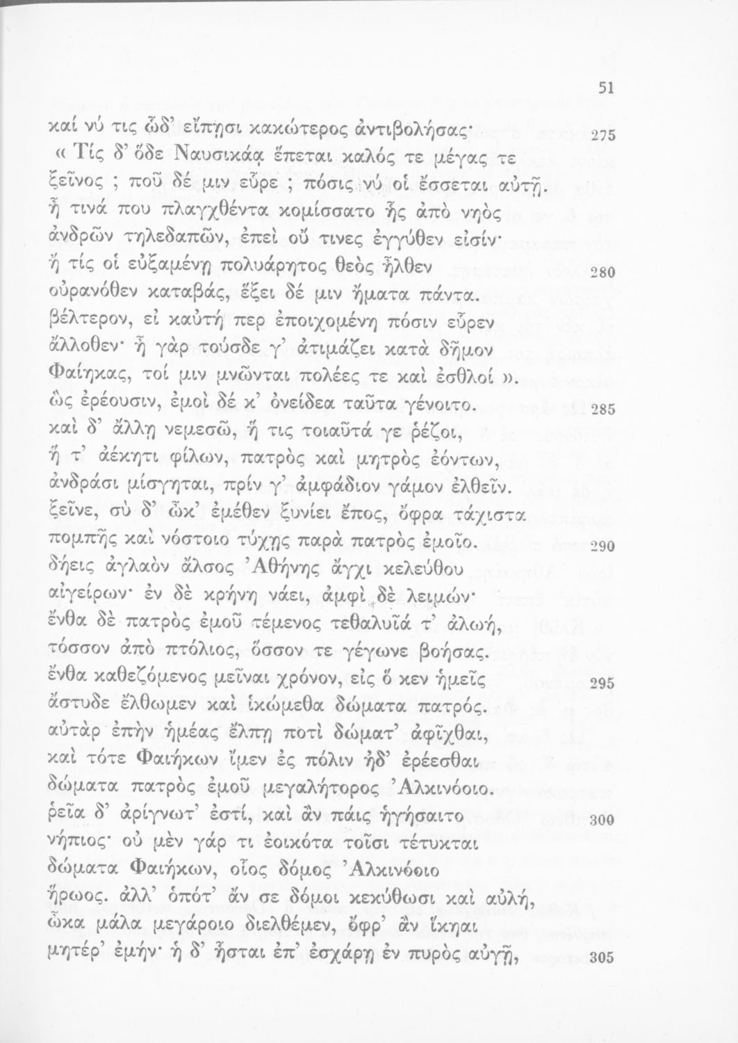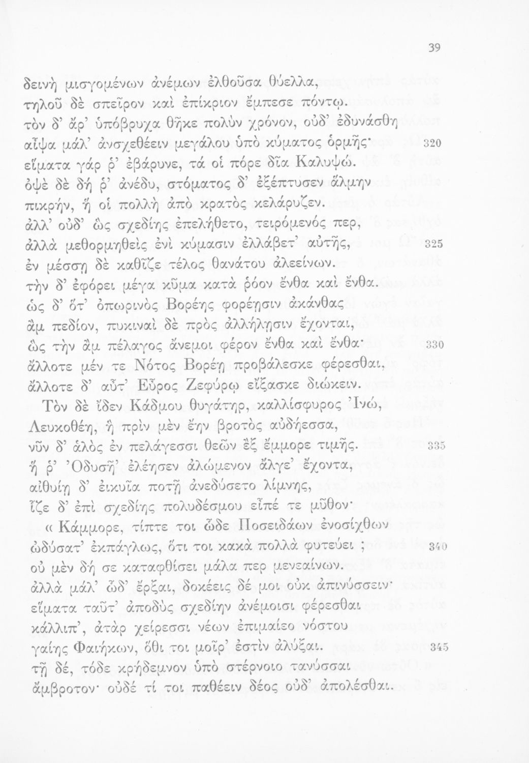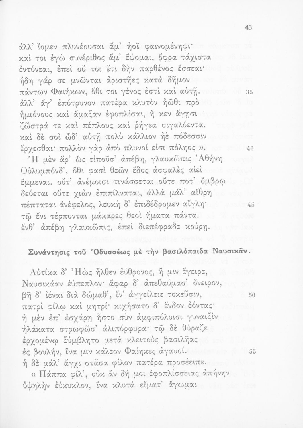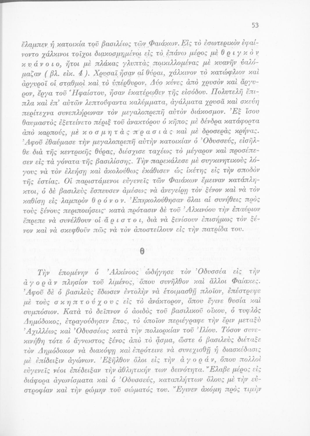Σχολικό εγχειρίδιο του Γυμνάσιου για το μάθημα των Αρχαίων Ελληνικών. Περιέχει ραψωδίες της Οδύσσειας σε αρχαίο κείμενο, καθώς και τη μετάφραση, τα ερμηνευτικά, πραγματολογικά σχόλια και τις λεξιλογικές παρατηρήσεις των συγγραφέων. Ο συγγραφέας ήταν Καθηγητής στο Κολέγιο Αθηνών. Η συγγραφέας ήταν Καθηγήτρια Φιλόλογος.