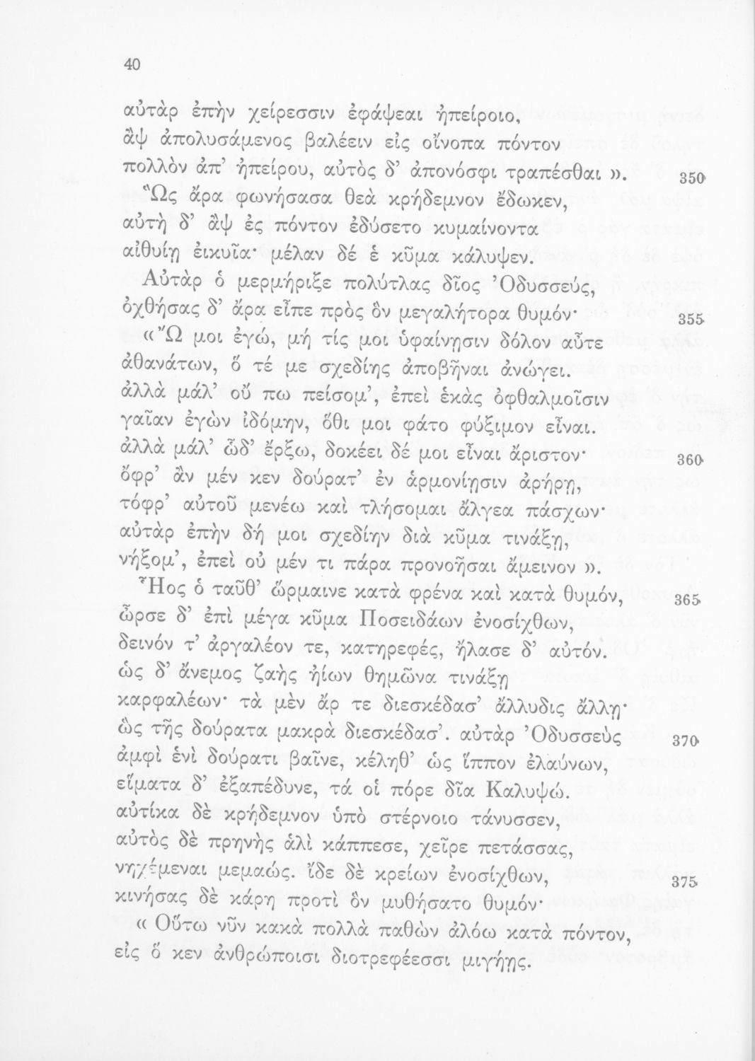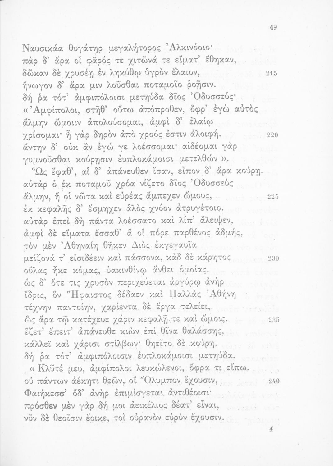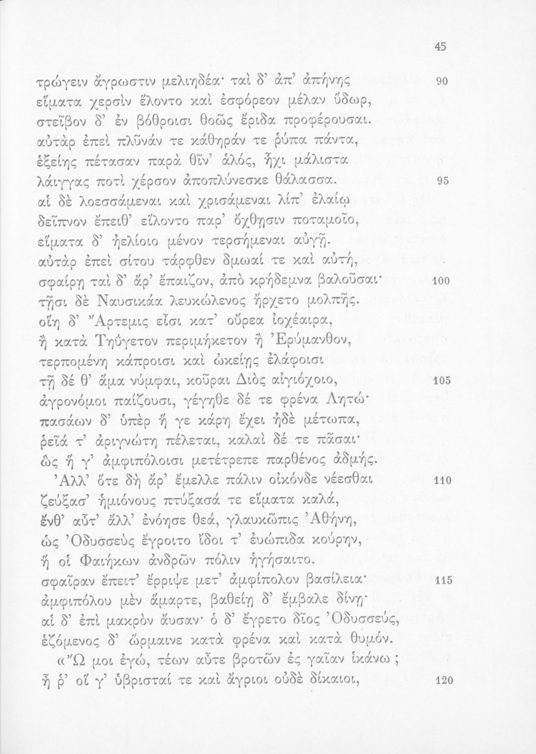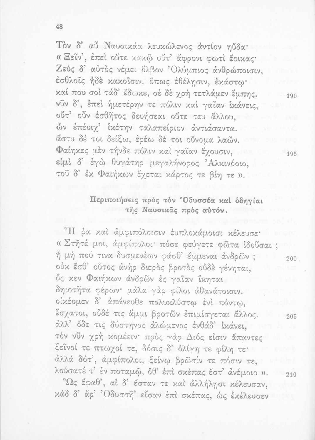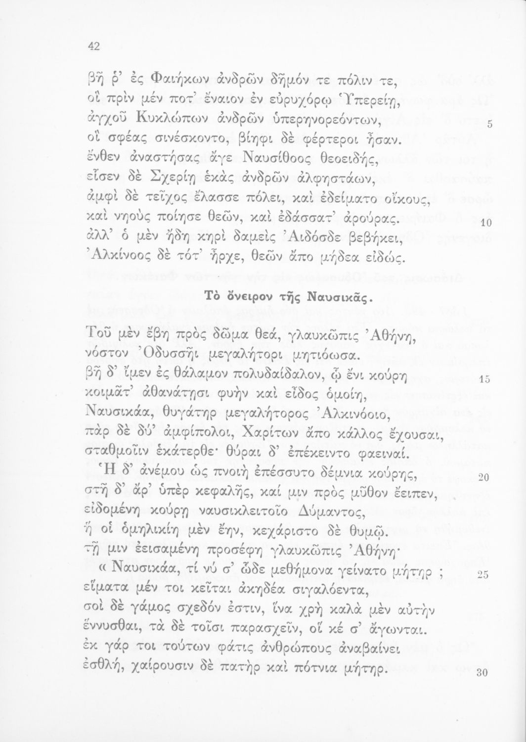 Σχολικό εγχειρίδιο του Γυμνάσιου για το μάθημα των Αρχαίων Ελληνικών. Περιέχει ραψωδίες της Οδύσσειας σε αρχαίο κείμενο, καθώς και τη μετάφραση, τα ερμηνευτικά, πραγματολογικά σχόλια και τις λεξιλογικές παρατηρήσεις των συγγραφέων. Ο συγγραφέας ήταν Καθηγητής στο Κολέγιο Αθηνών. Η συγγραφέας ήταν Καθηγήτρια Φιλόλογος.