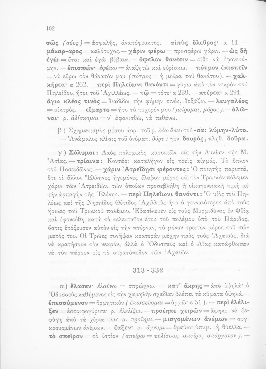 Μαθητικό βοήθημα του Ελληνικού Σχολείου, των Παρθεναγωγείων και του Γυμνασίου για το μάθημα των Αρχαίων Ελληνικών. Περιέχει τις ραψωδίες Ο, Π, Ρ, Σ, Τ, Χ, ψ, Ω από το πρωτότυπο με σχόλια και ερμηνευτικές ...