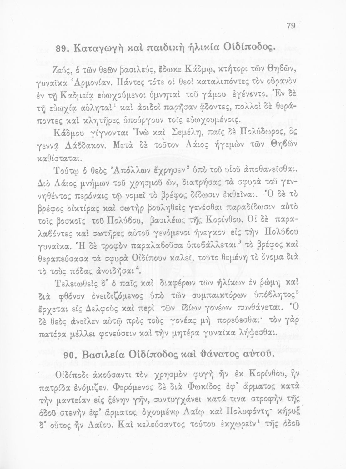 Σχολικό εγχειρίδιο Αρχαίων Ελληνικών που περιλαμβάνει σύντομα κείμενα εμπνευσμένα από την αρχαία ελληνική ιστορία και μυθολογία που χρησιμοποιούνται για τη διδασκαλία γραμματικών και συντακτικών φαινομένων καθώς και ερμηνευτικές σημειώσεις.