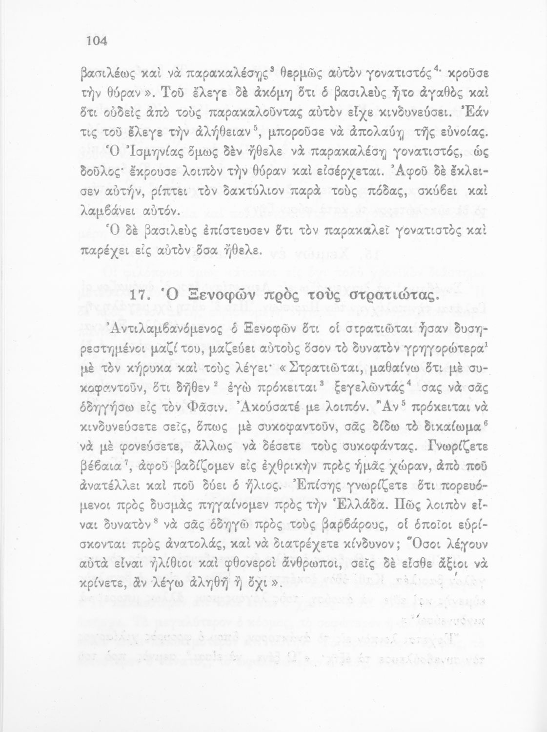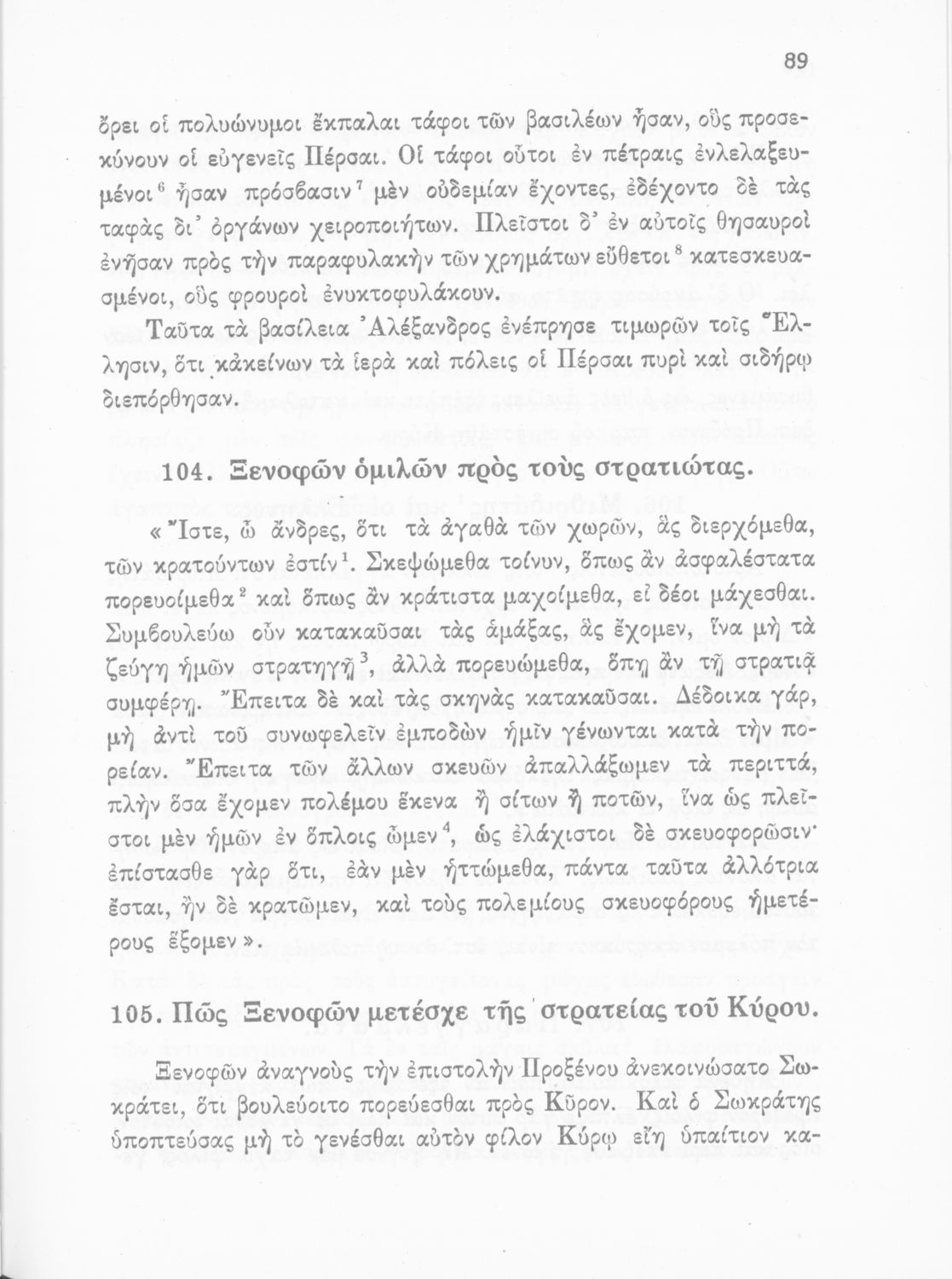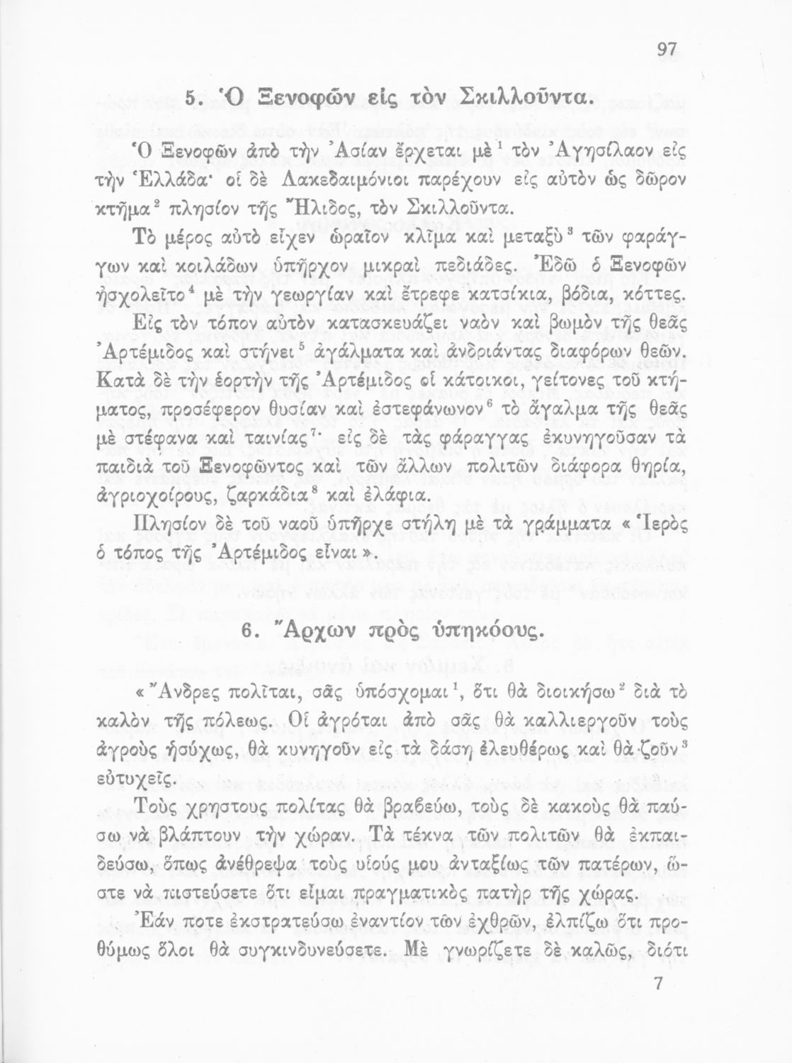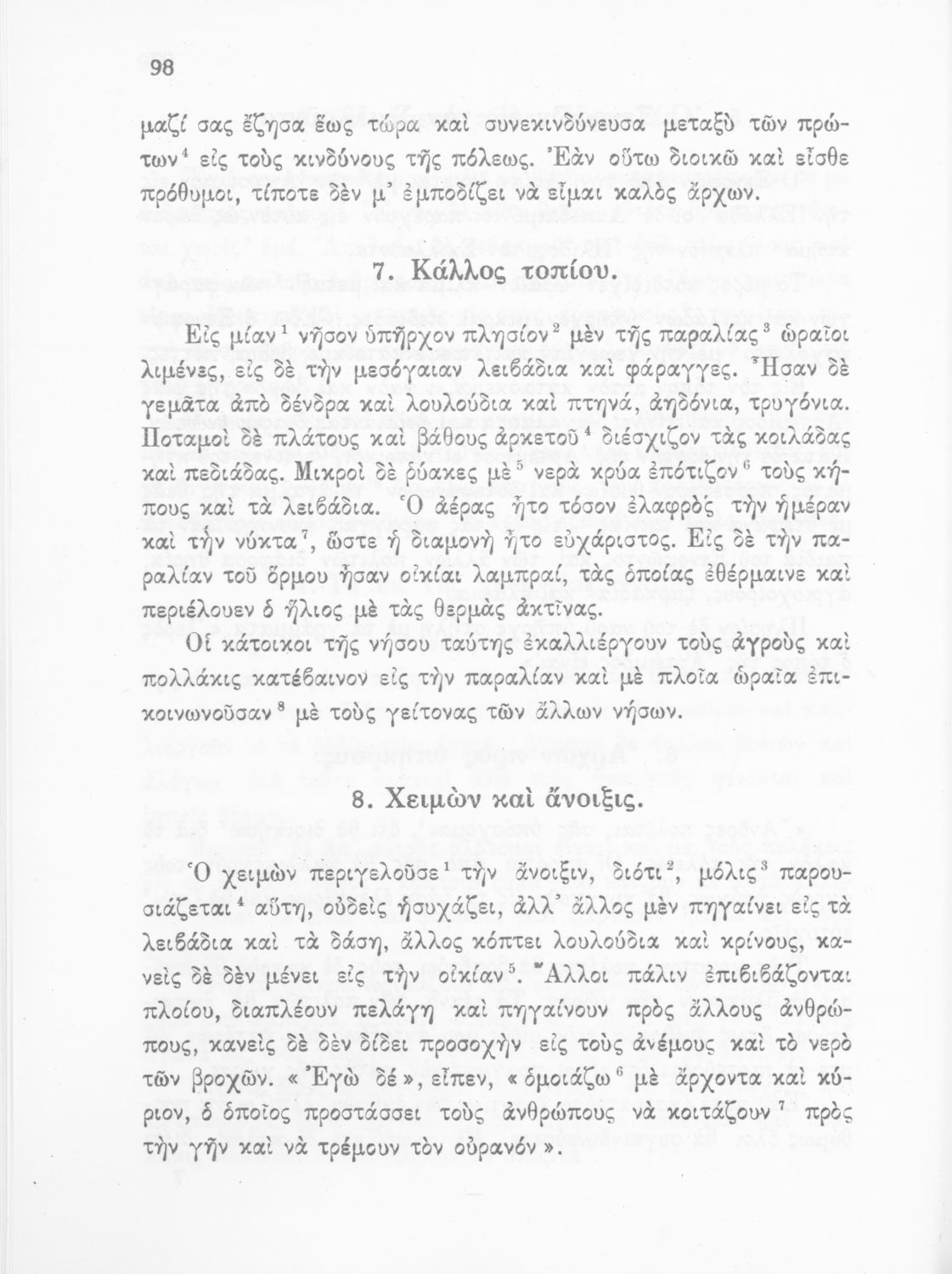Σχολικό Εγχειρίδιο Αρχαίων Ελληνικών που περιλαμβάνει κείμενα προσαρμοσμένα στη διδασκαλία των γραμματικών και συντακτικών φαινομένων, και ερμηνευτικές και λεξιλογικές σημειώσεις.