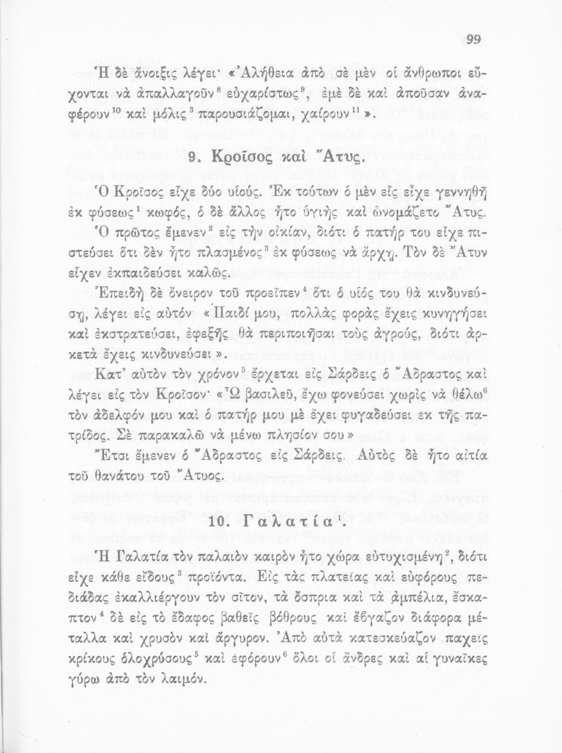 Σχολικό εγχειρίδιο Αρχαίων Ελληνικών Γυμνασίου που περιέχει κείμενα βασισμένα στην αρχαία ελληνική ιστορία και μυθολογία και γραμματικές, συντακτικές και ετυμολογικές παρατηρήσεις.