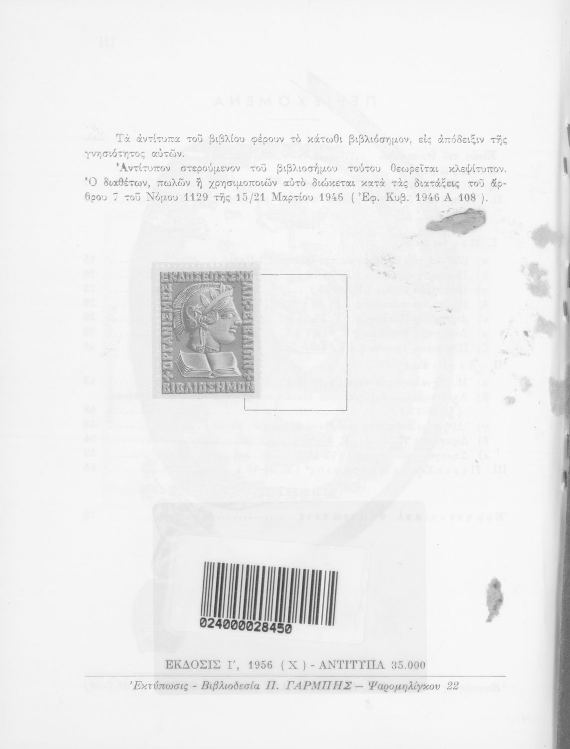 Εκδότης: Οργανισμός Εκδόσεως Σχολικών Βιβλίων Έτος έκδοσης: 1956 Τόπος έκδοσης: Αθήνα Έκδοση: 10η |