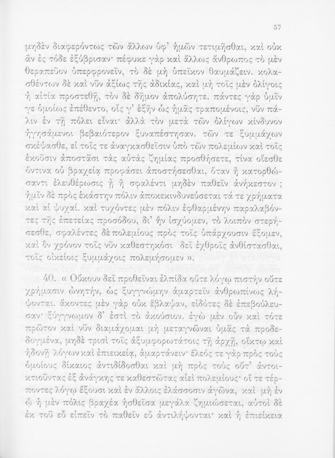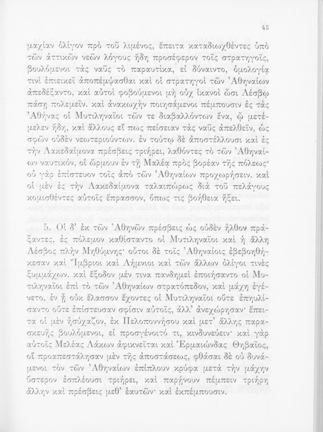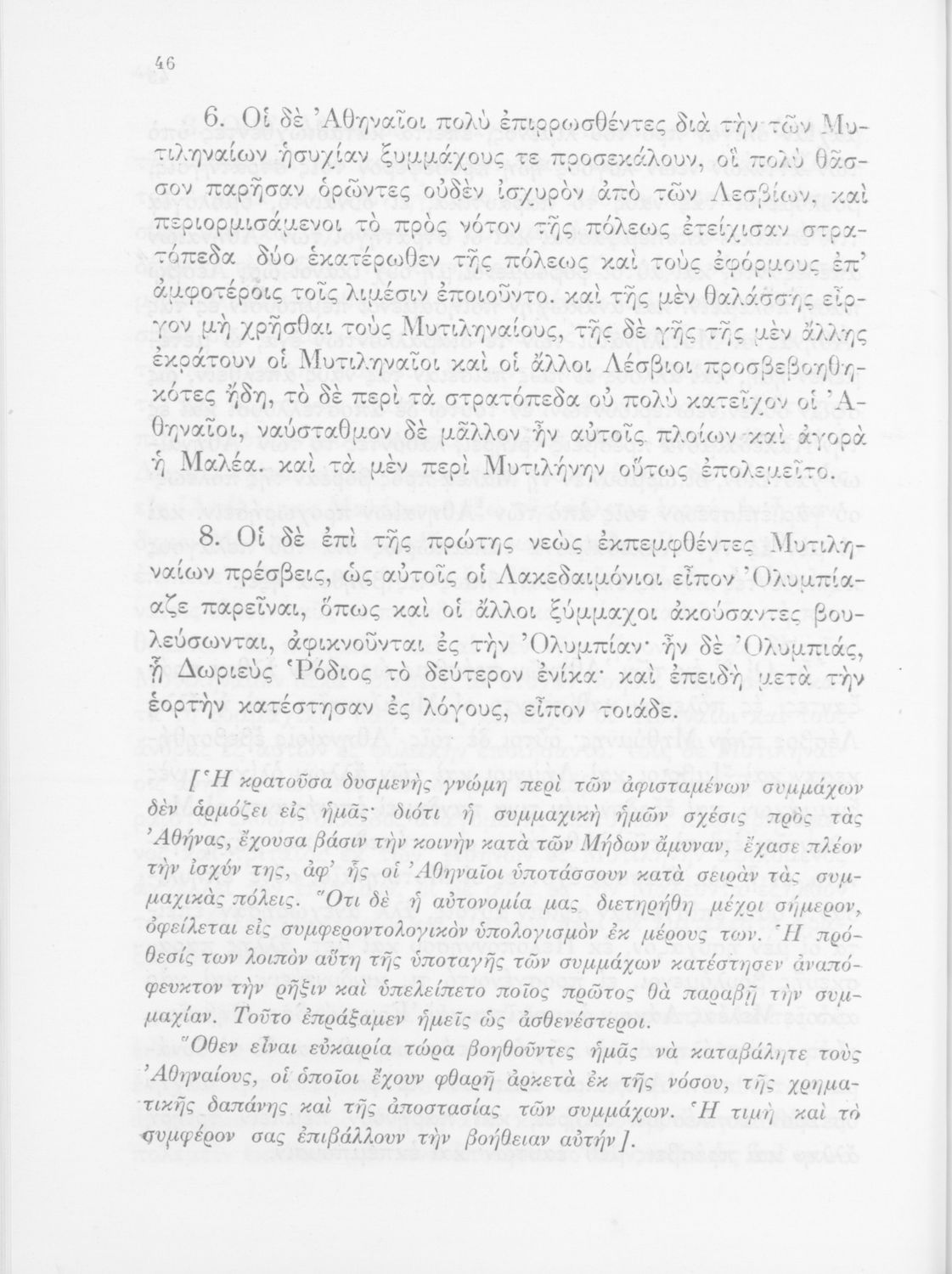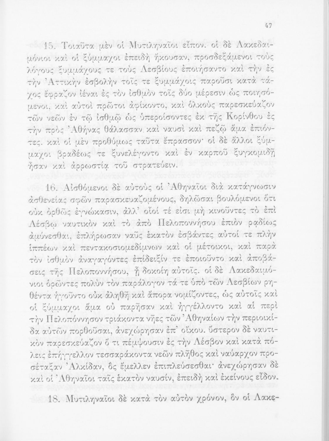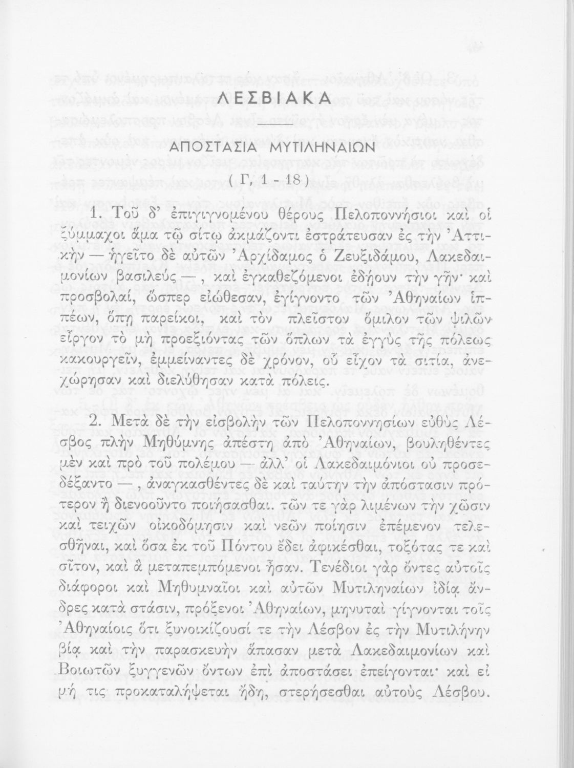 Σχολικό εγχειρίδιο Αρχαίων Ελληνικών Γυμνασίου που περιέχει εισαγωγή στη ζωή και το έργο του Θουκυδίδη, αποσπάσματα από τα Πλαταιϊκά, τα Λεσβιακά και τον Επιτάφιο του Περικλή και ερμηνευτικές σημειώσεις.