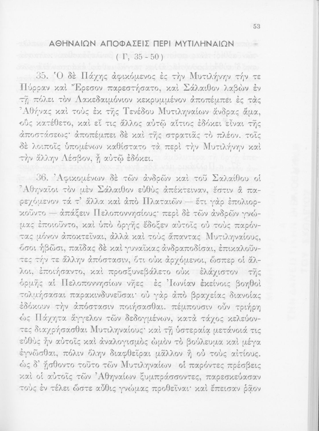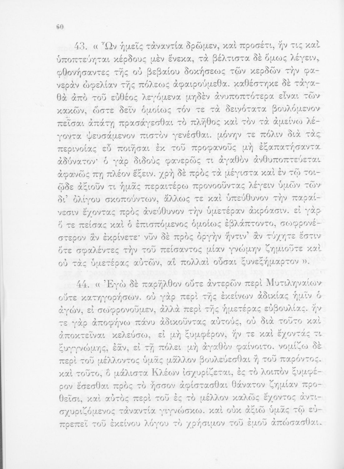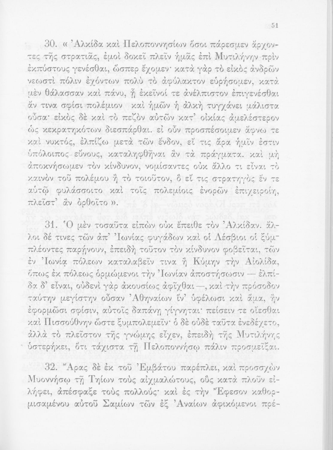 Σχολικό εγχειρίδιο Αρχαίων Ελληνικών που περιέχει εισαγωγή στη ζωή και το έργο του Θουκυδίδη, αποσπάσματα από τα Πλαταιϊκά, τα Λεσβιακά και τον Επιτάφιο του Περικλή και ερμηνευτικές σημειώσεις.