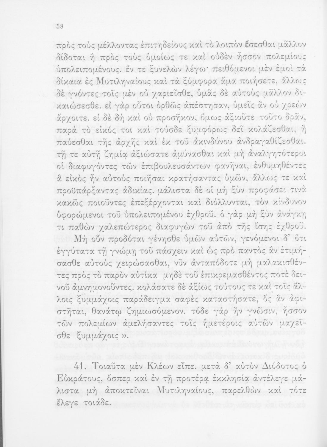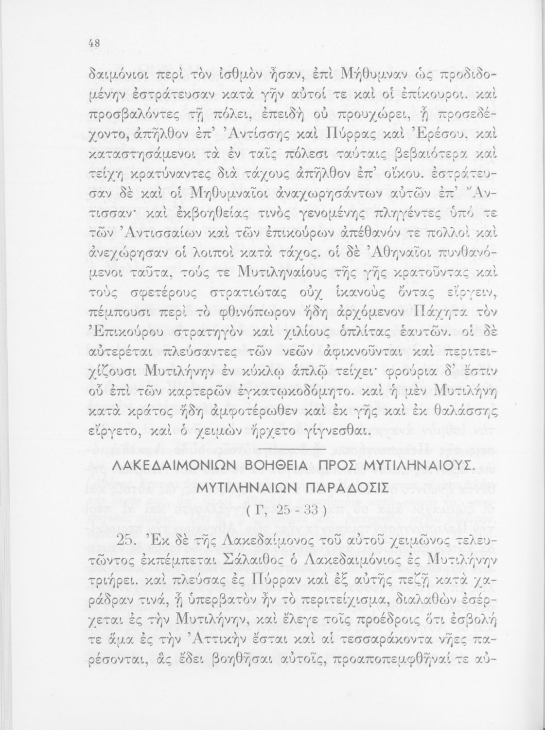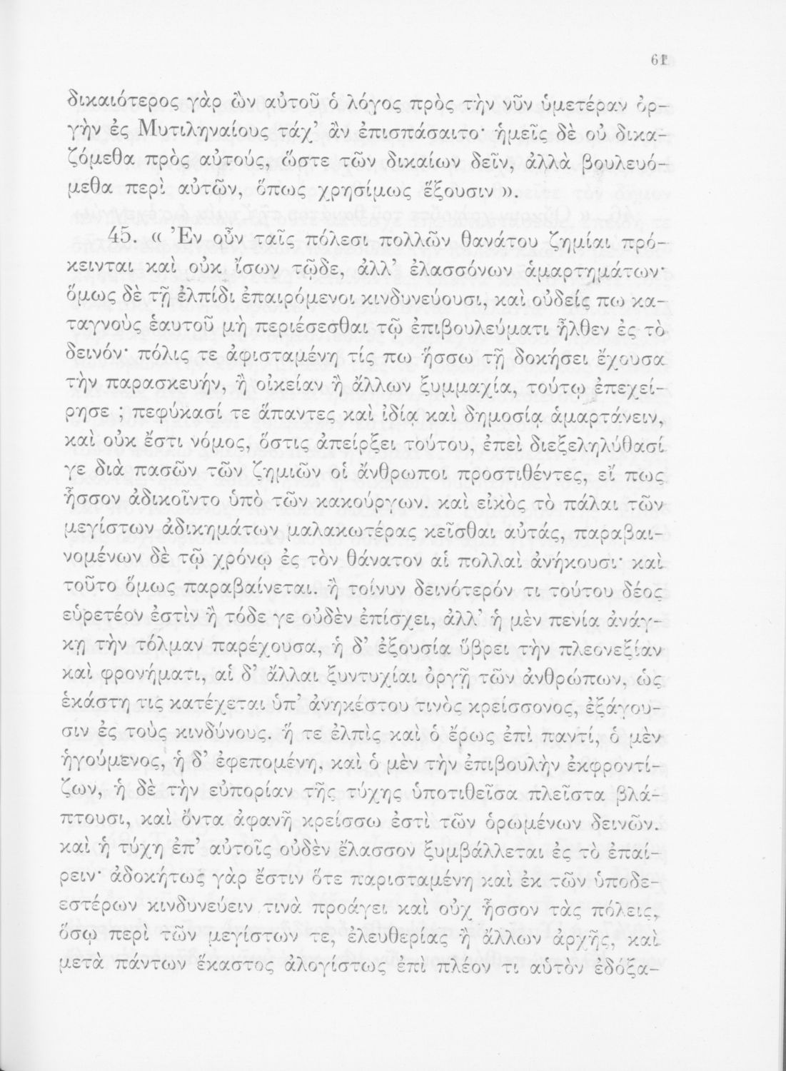 Σχολικό εγχειρίδιο Αρχαίων Ελληνικών που περιέχει εισαγωγή στη ζωή και το έργο του Θουκυδίδη, αποσπάσματα από τα Πλαταιϊκά, τα Λεσβιακά και τον Επιτάφιο του Περικλή και ερμηνευτικές σημειώσεις.