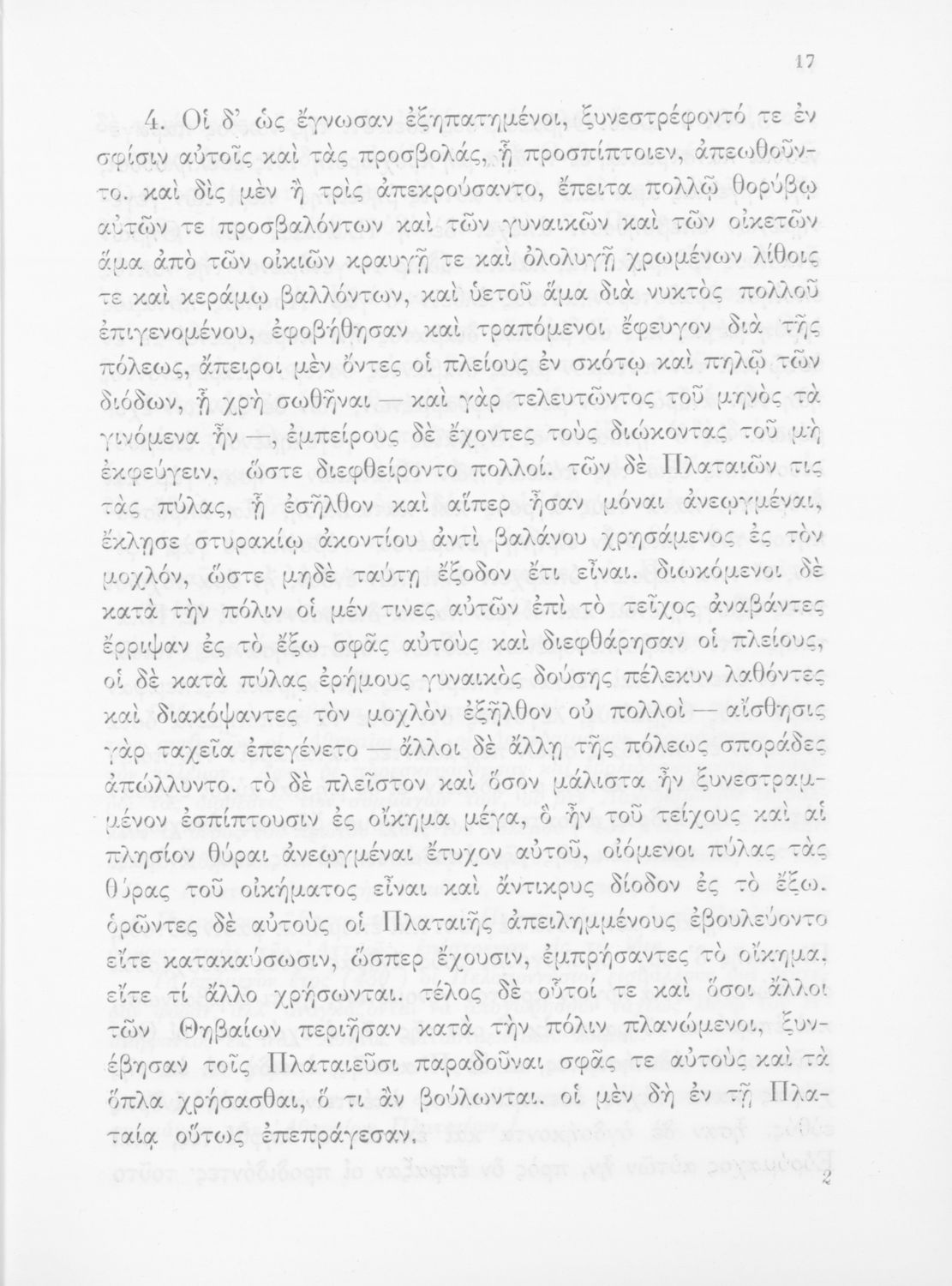Σχολικό εγχειρίδιο Αρχαίων Ελληνικών Δ΄ Γυμνασίου που περιέχει εισαγωγή στη ζωή και το έργο του Θουκυδίδη, αποσπάσματα από τα Πλαταιϊκά, τα Λεσβιακά και τον Επιτάφιο του Περικλή και ερμηνευτικές σημειώσεις.