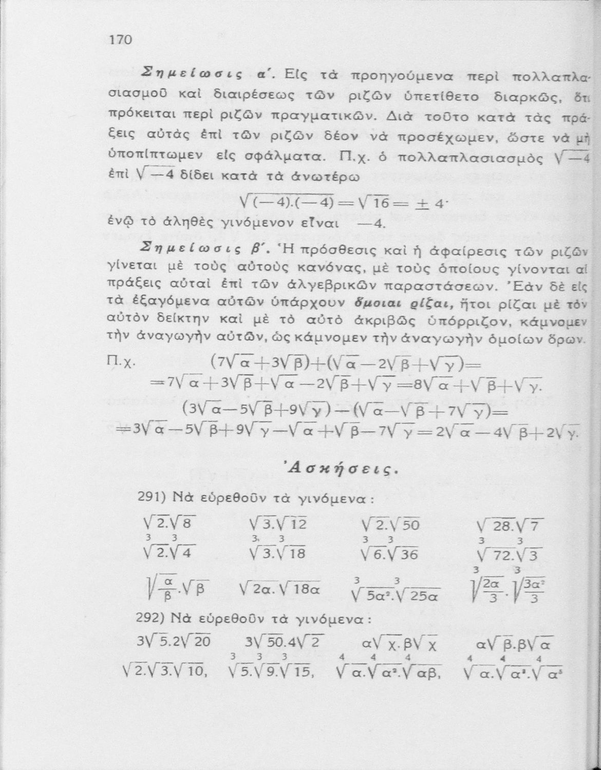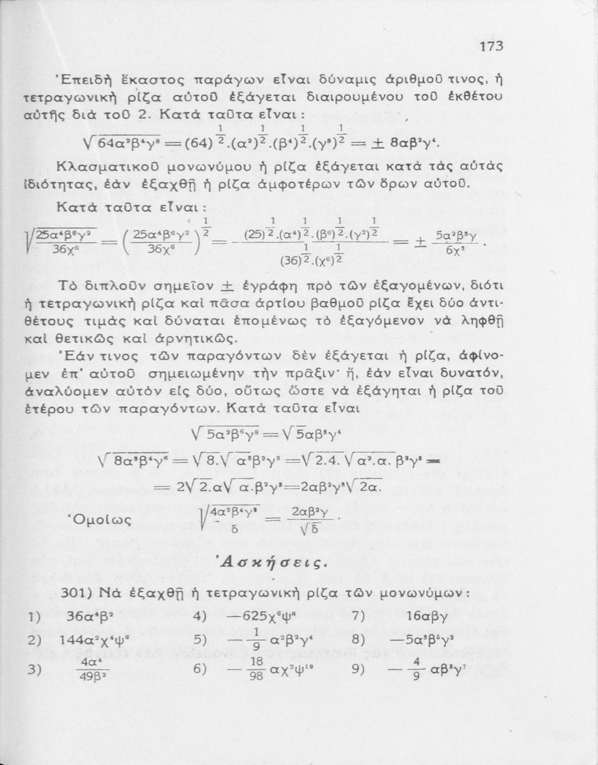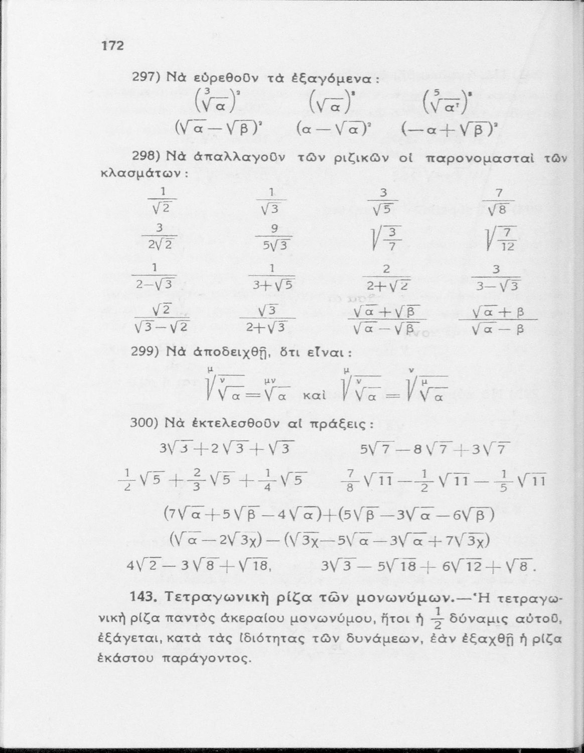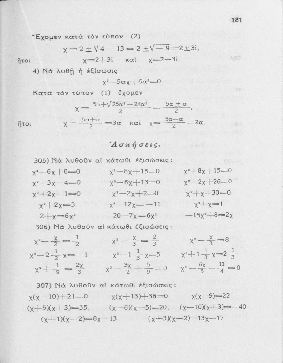 Άλγεβρα προς χρήσιν των μαθητών της Δ΄ και Ε΄ τάξεως των Εξαταξίων Γυμνασίων νέου τύπου