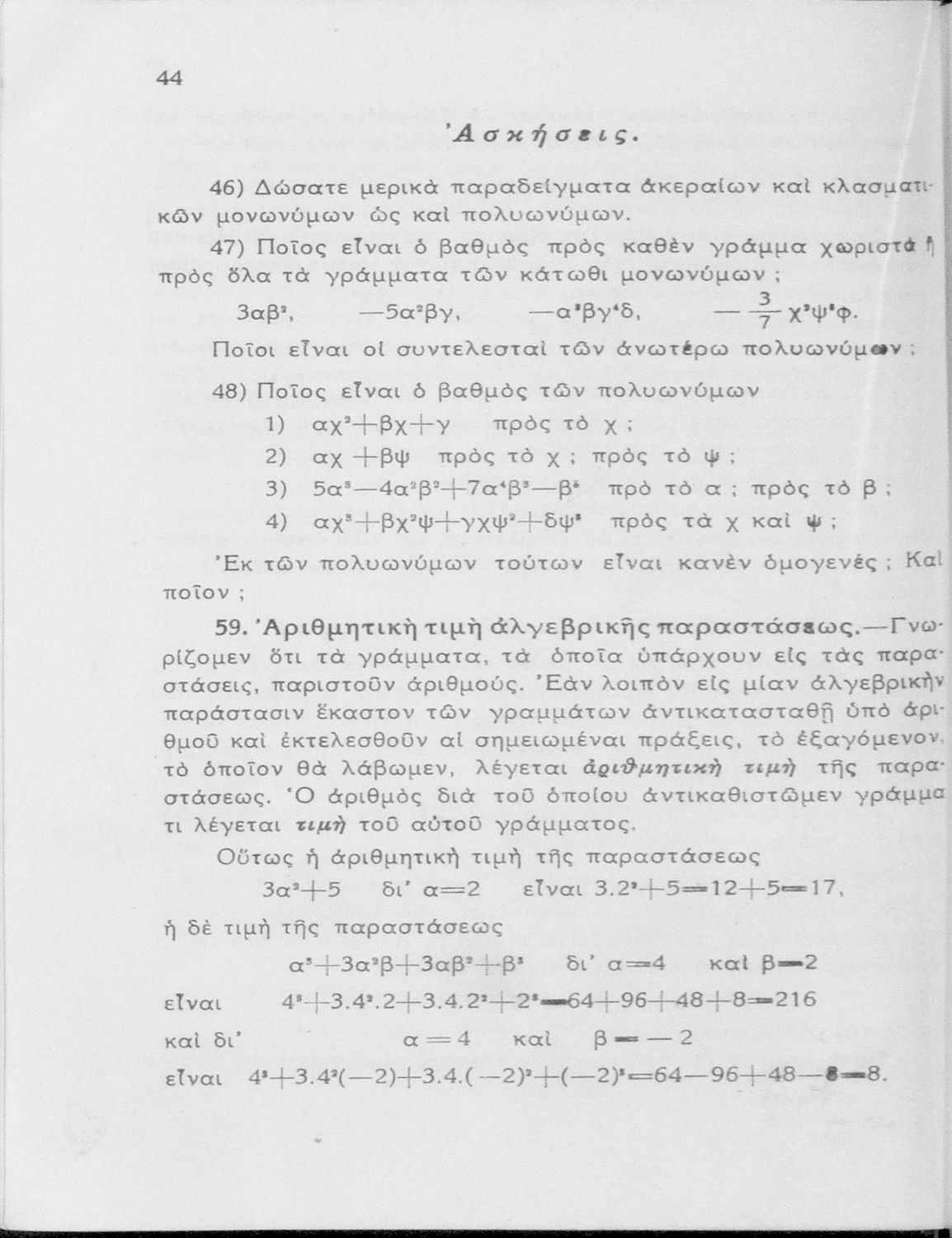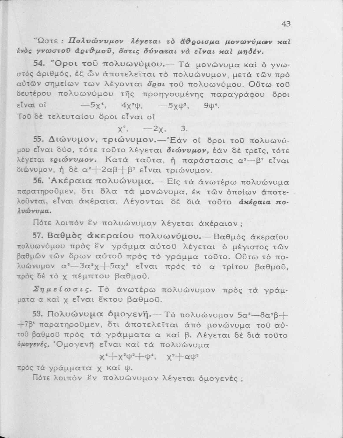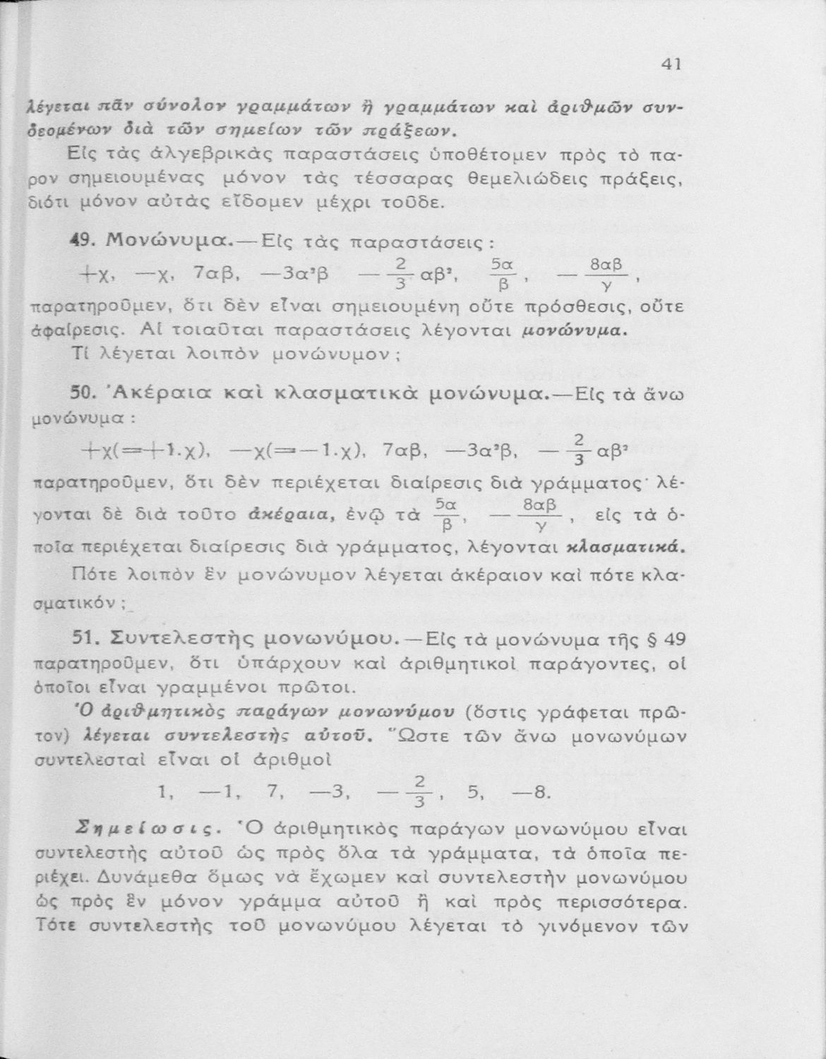 Άλγεβρα προς χρήσιν των μαθητών της Δ΄ και Ε΄ τάξεως των Εξαταξίων Γυμνασίων νέου τύπου
