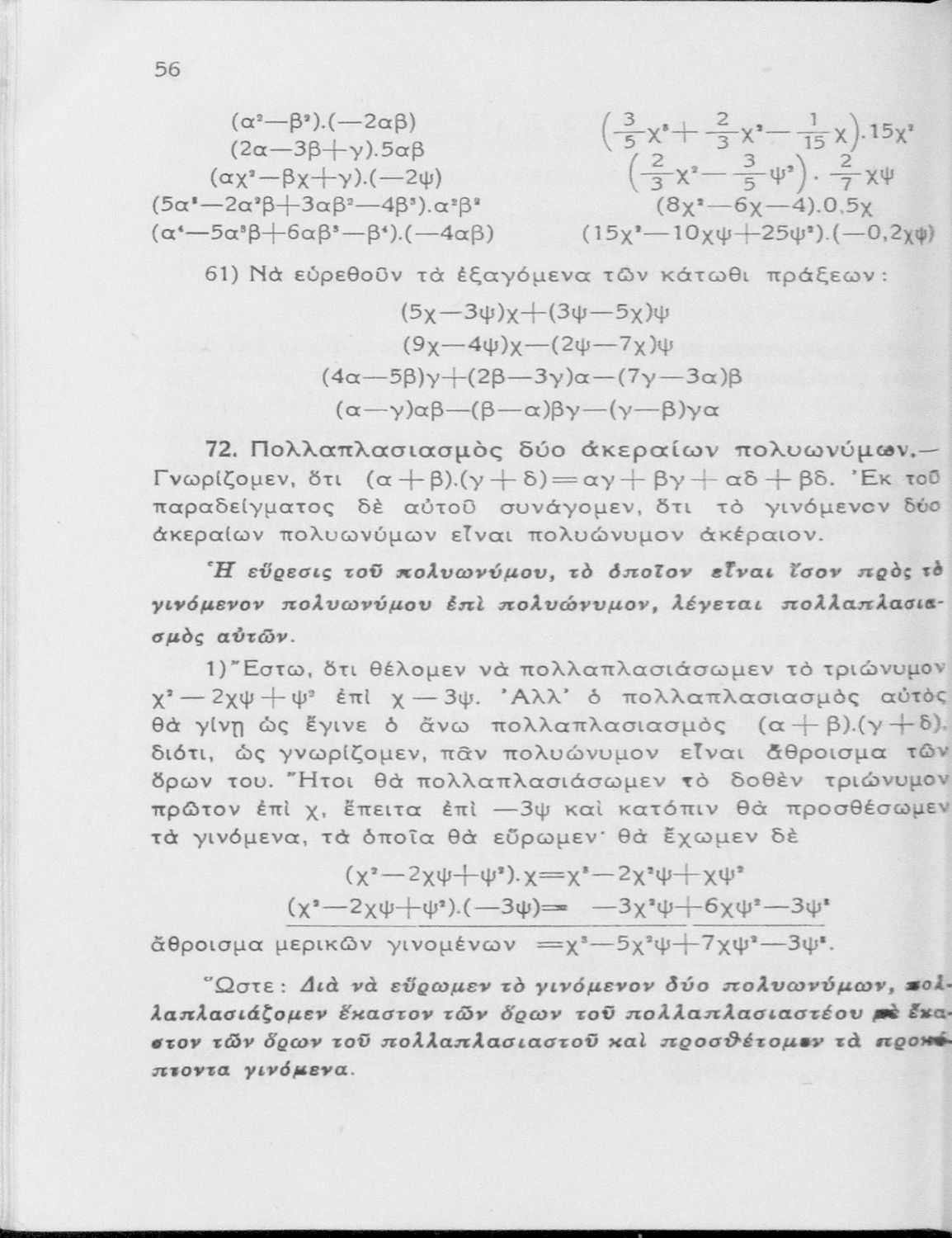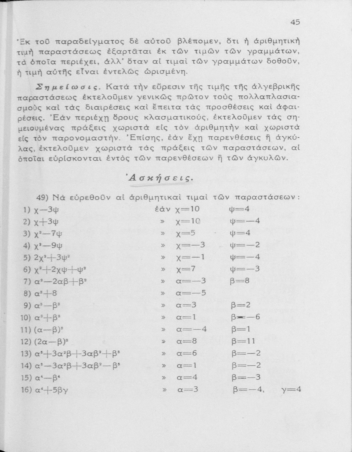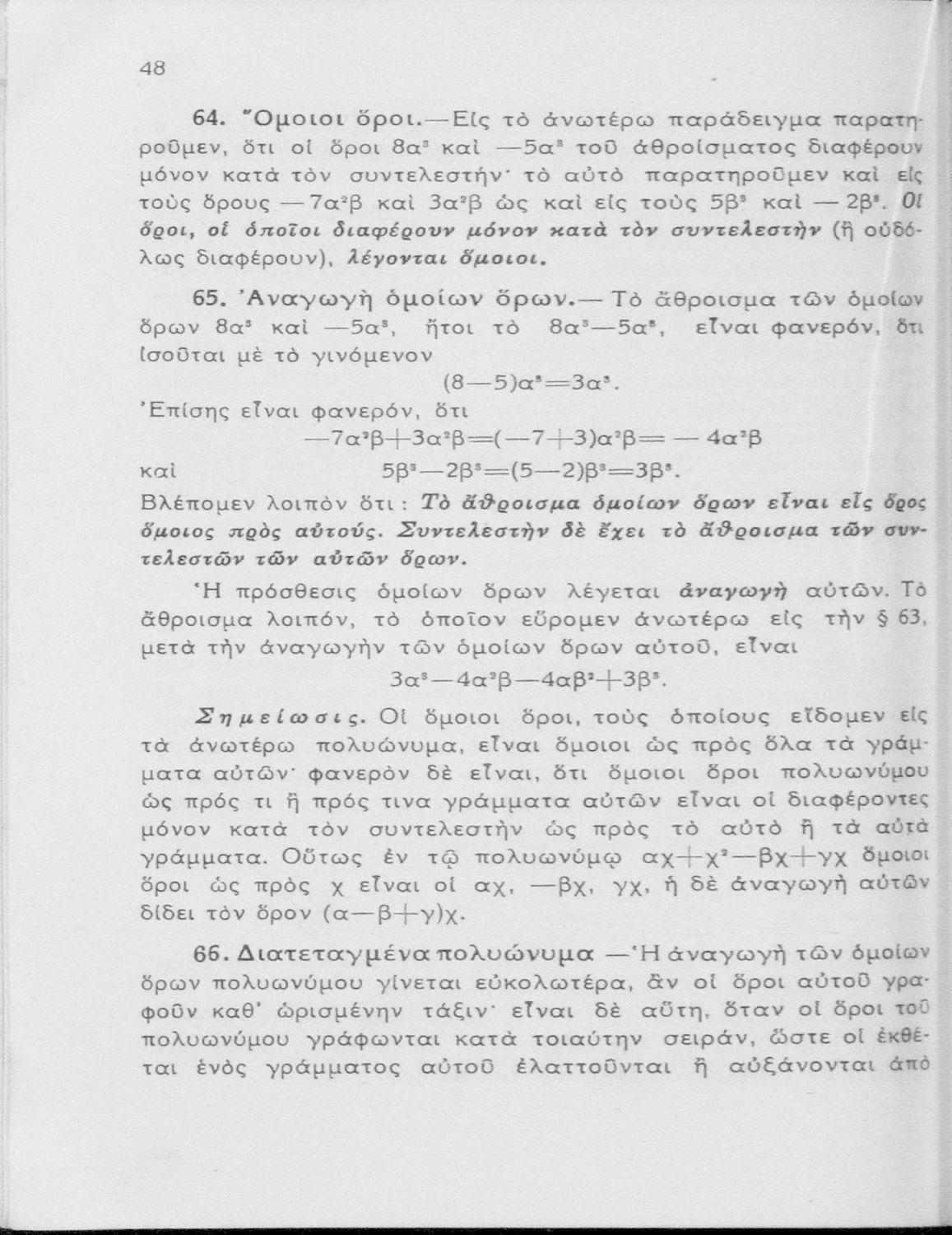 Άλγεβρα προς χρήσιν των μαθητών της Δ΄ και Ε΄ τάξεως των Εξαταξίων Γυμνασίων νέου τύπου