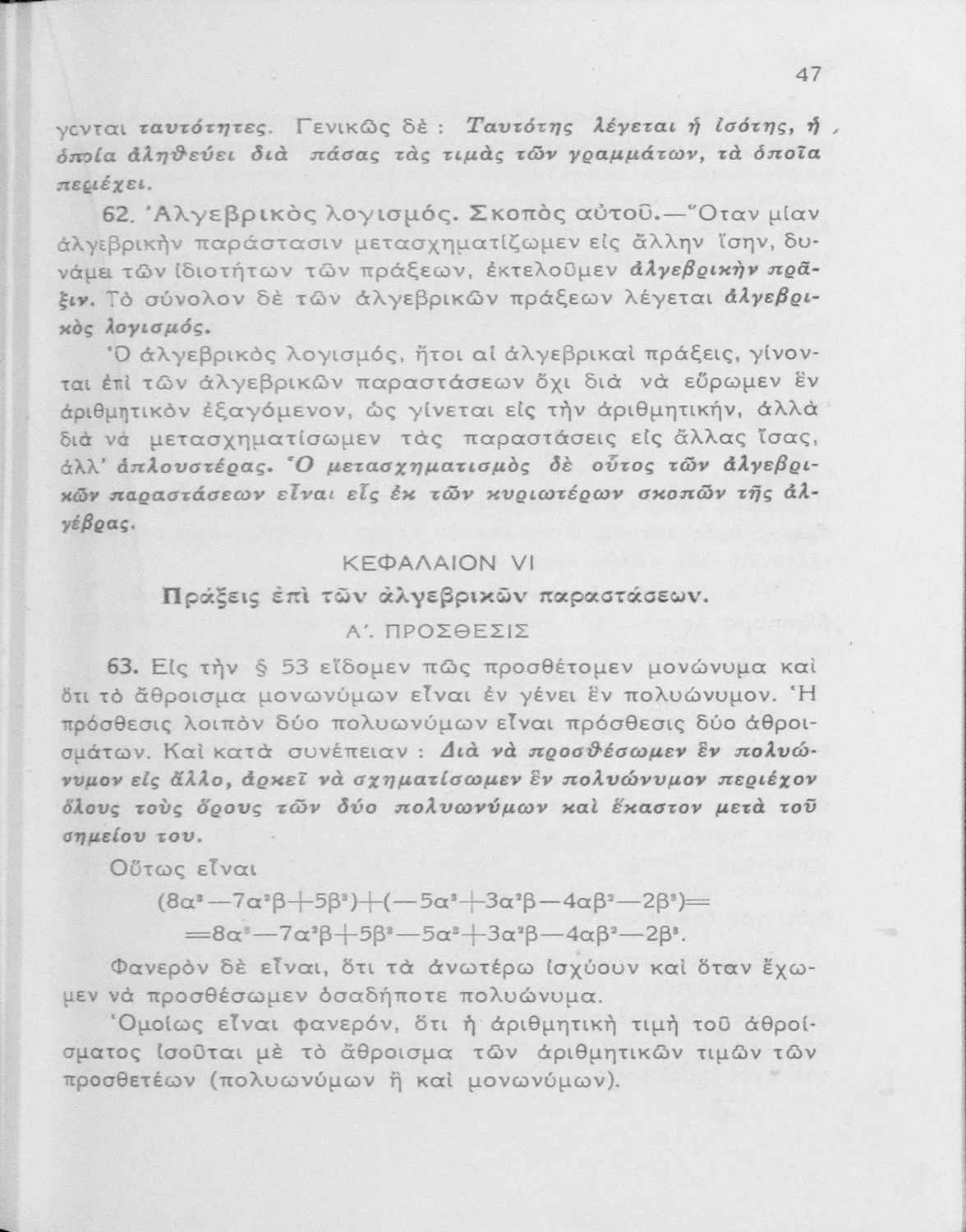 Τίτλος: Άλγεβρα προς χρήσιν των μαθητών της Δ΄ και Ε΄ τάξεως των Εξαταξίων Γυμνασίων νέου τύπου