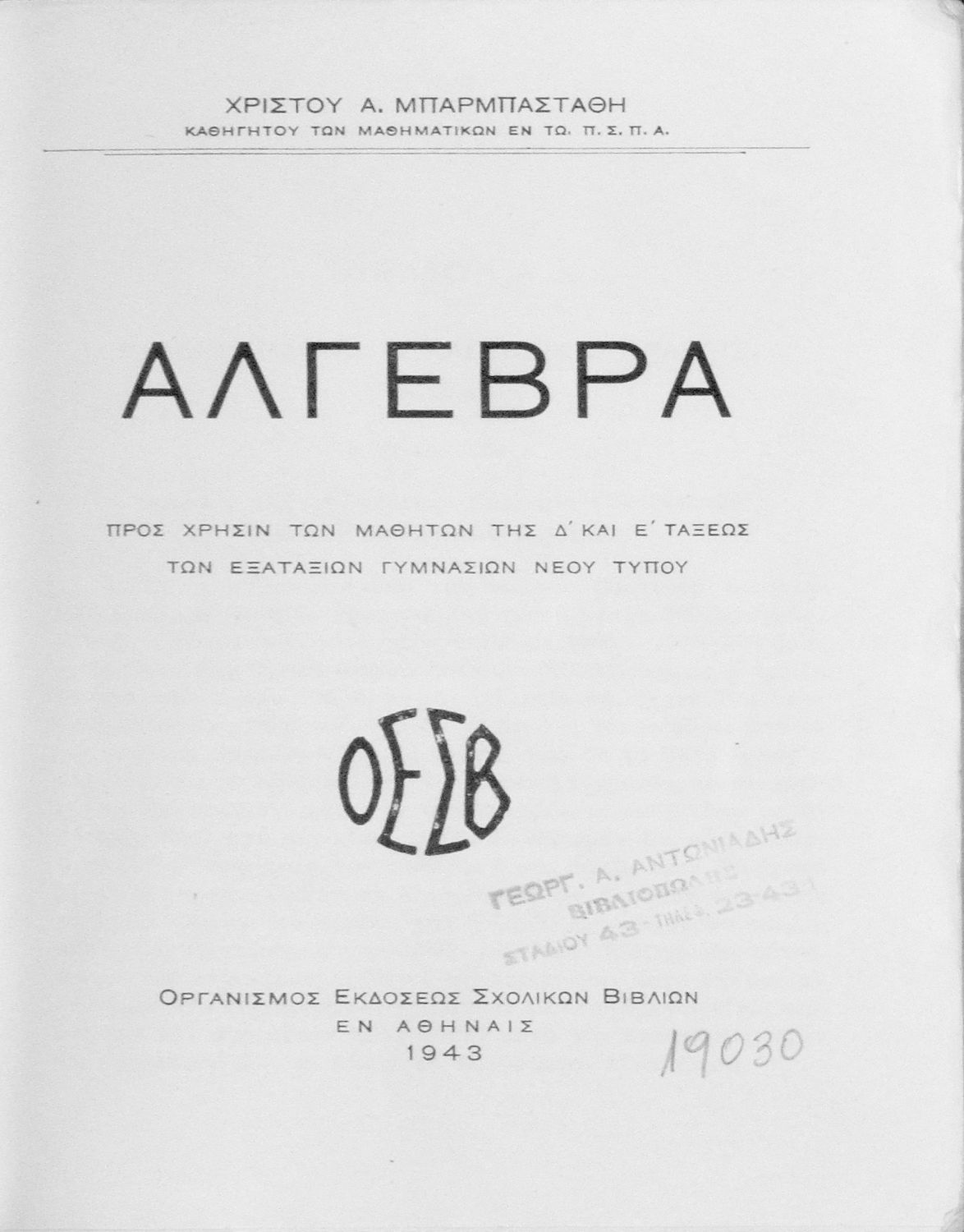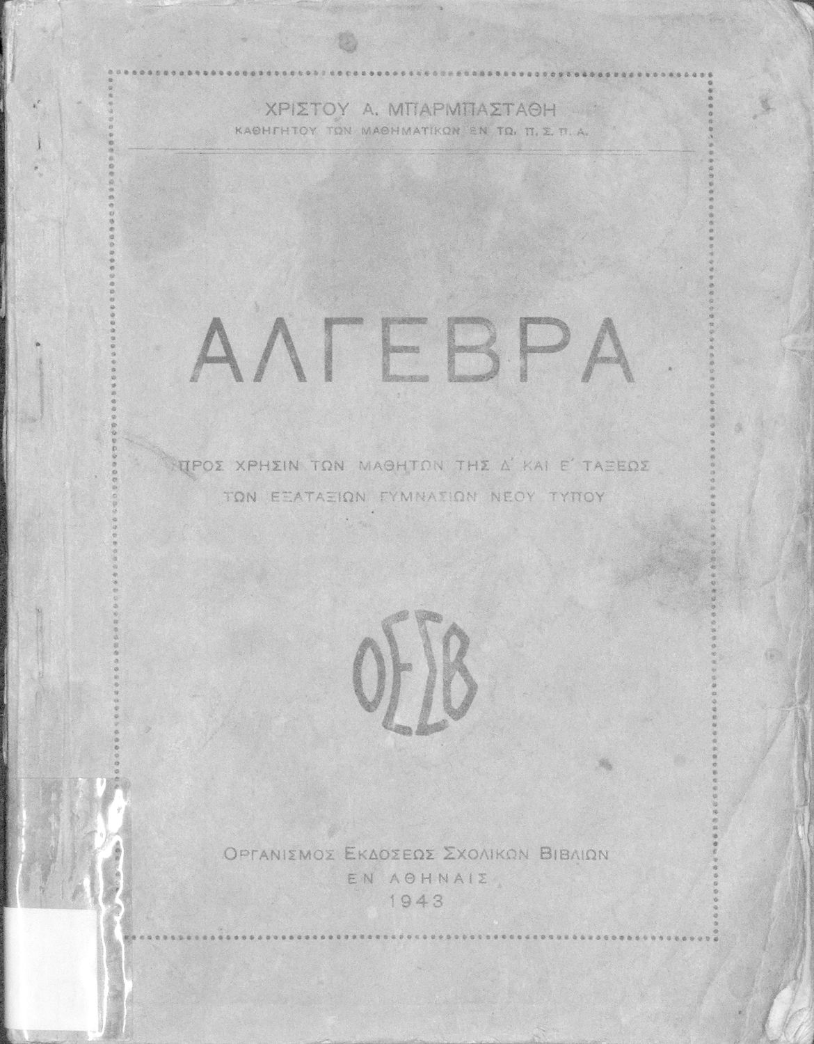 Τίτλος: Άλγεβρα προς χρήσιν των μαθητών της Δ΄ και Ε΄ τάξεως των Εξαταξίων Γυμνασίων νέου τύπου