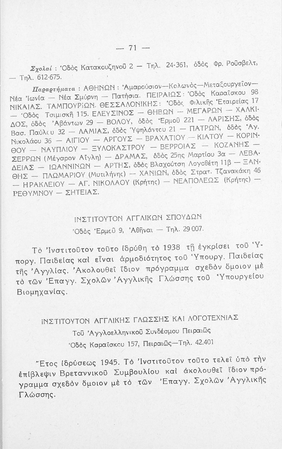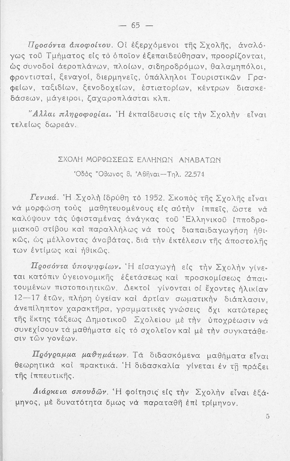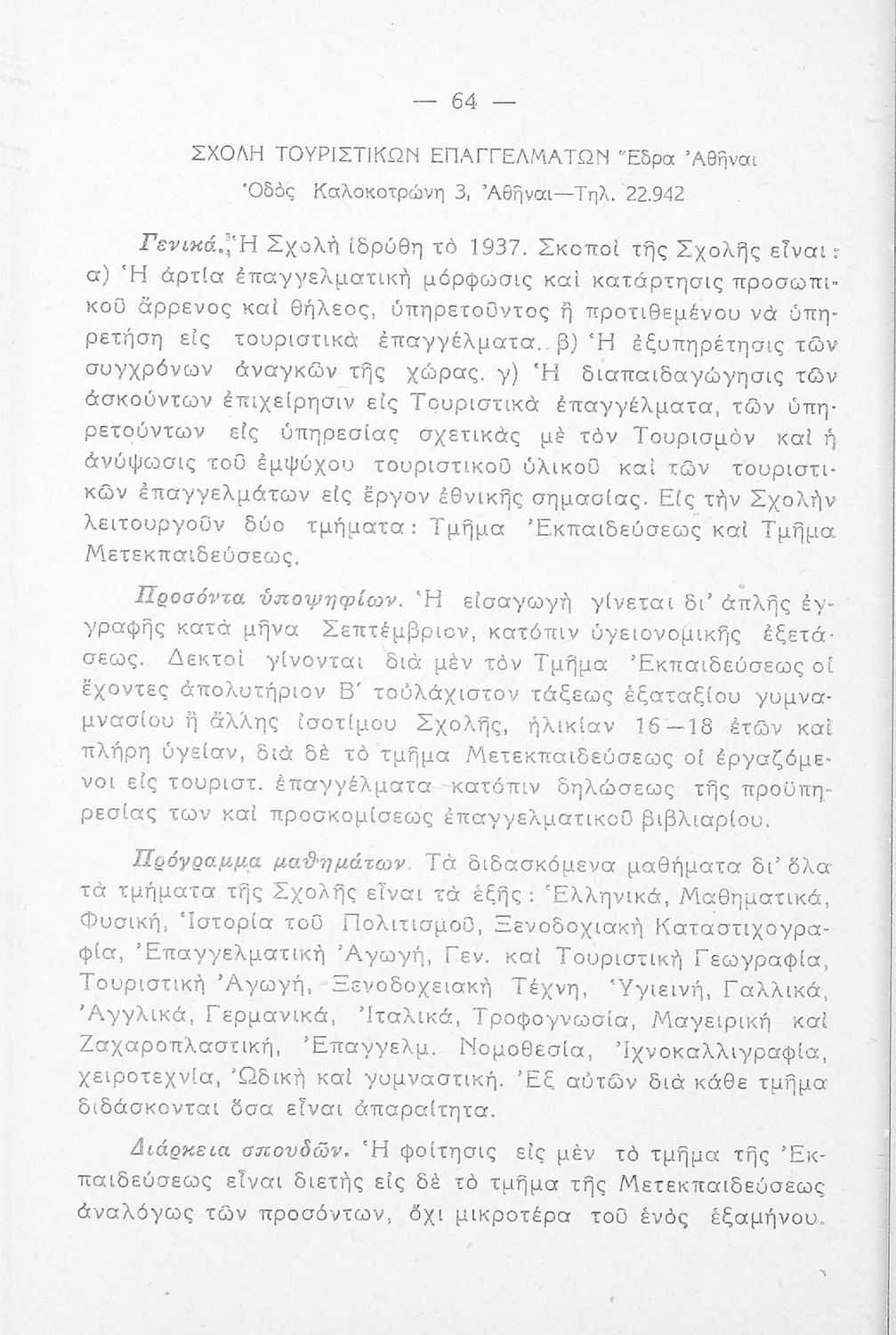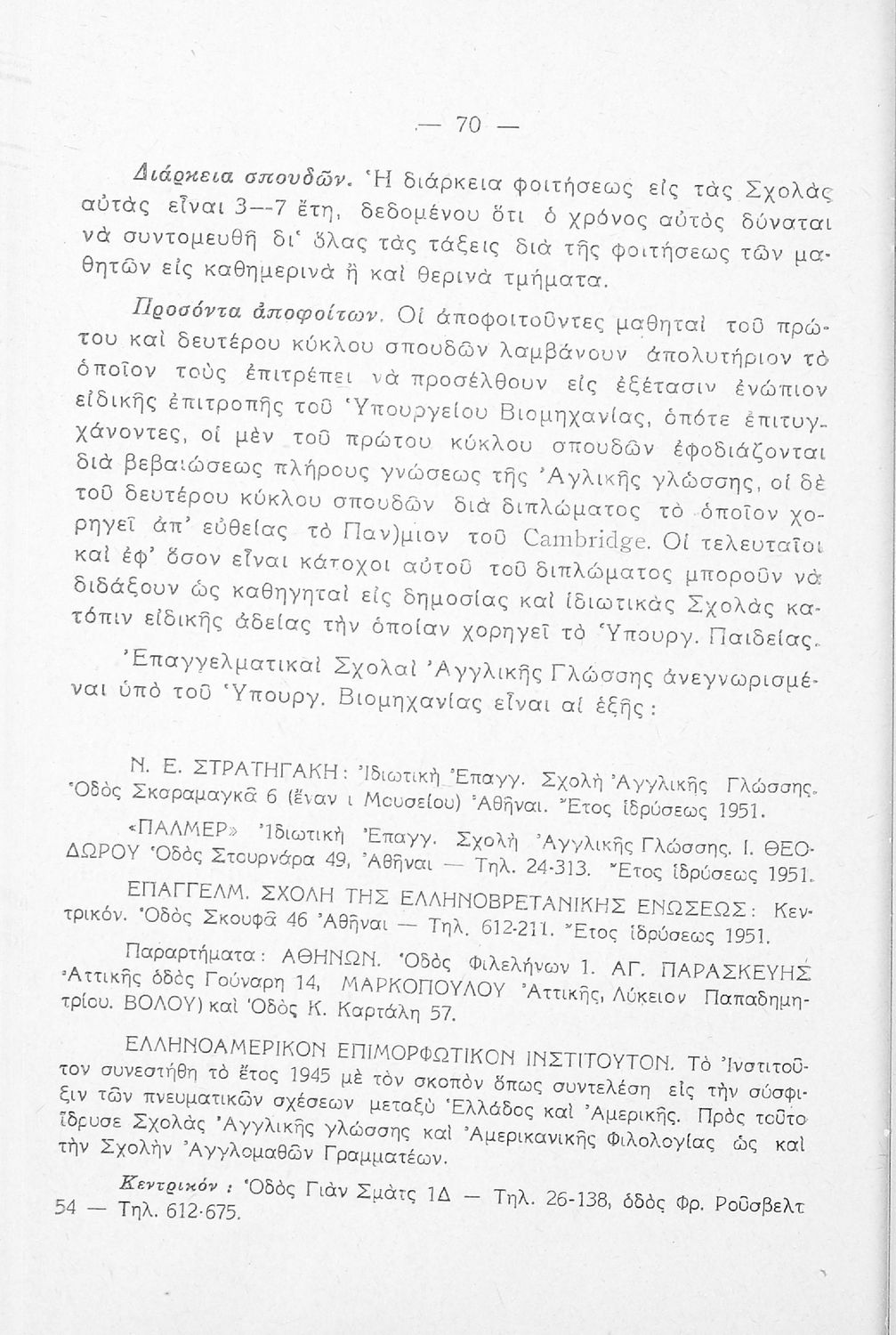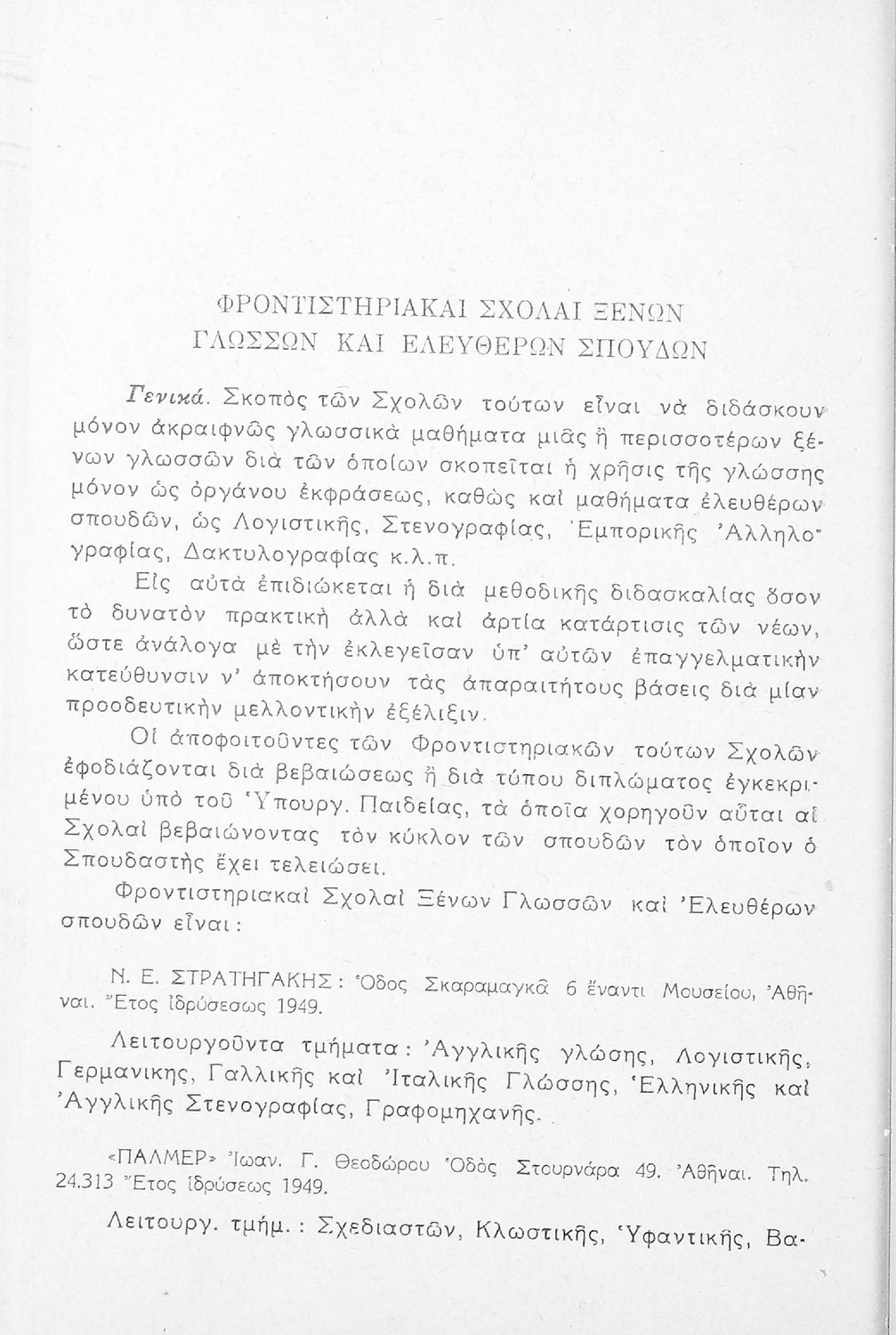 Μαθητικό βοήθημα Επαγγελματικού Προσανατολισμού για τους μαθητές και σπουδαστές που περιέχει πληροφορίες για τις πανεπιστημιακές, επαγγελματικές νυχτερινές κλπ σχολές. Ο συγγραφέας ήταν υπάλληλος της Κεντρικής Υπηρεσίας του Υπουργείου Παιδείας.