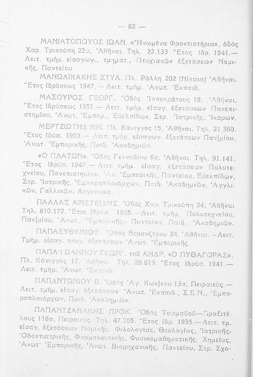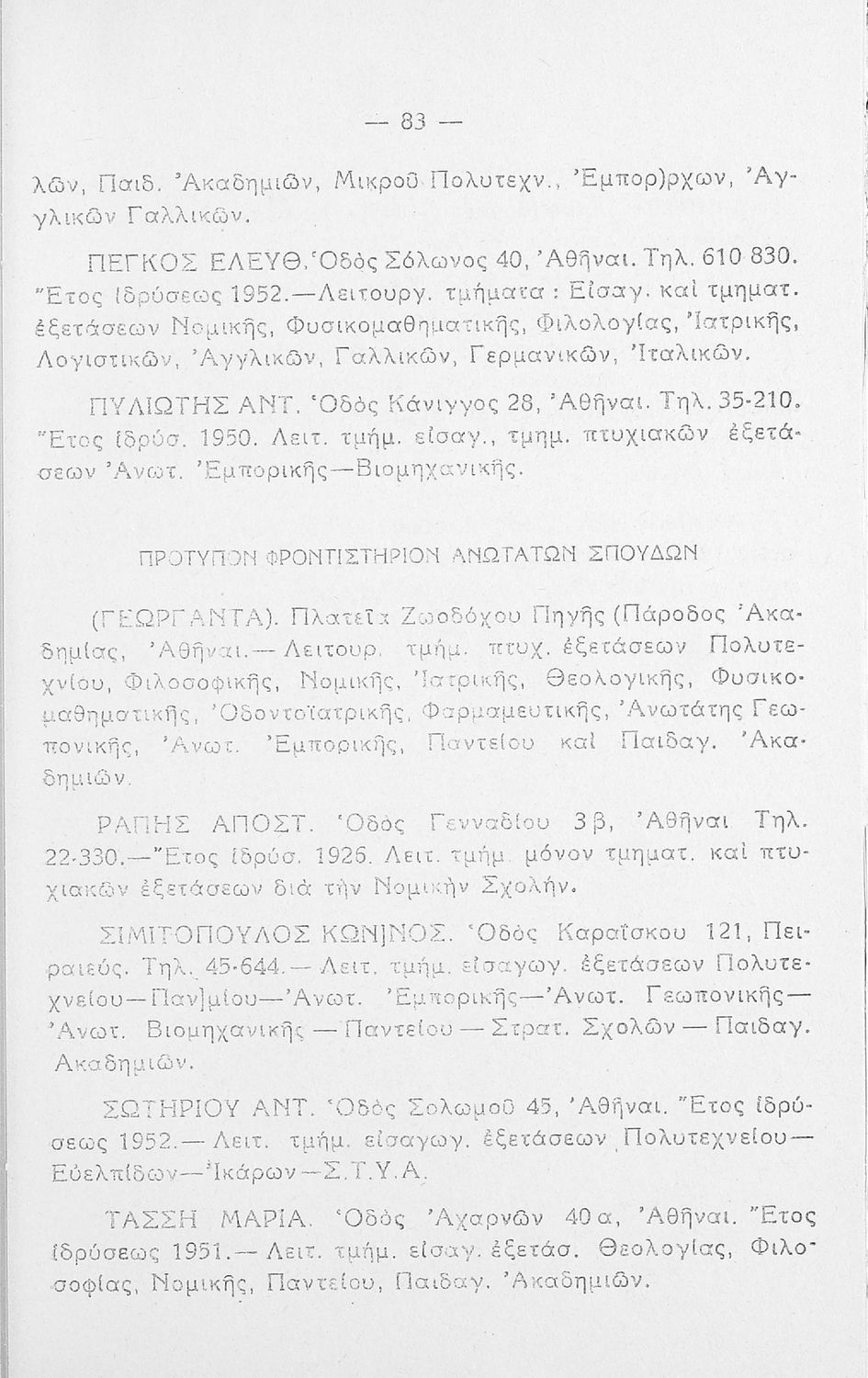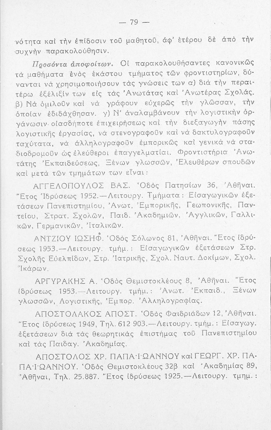 Μαθητικό βοήθημα Επαγγελματικού Προσανατολισμού για τους μαθητές και σπουδαστές που περιέχει πληροφορίες για τις πανεπιστημιακές, επαγγελματικές νυχτερινές κλπ σχολές. Ο συγγραφέας ήταν υπάλληλος της Κεντρικής Υπηρεσίας του Υπουργείου Παιδείας.
