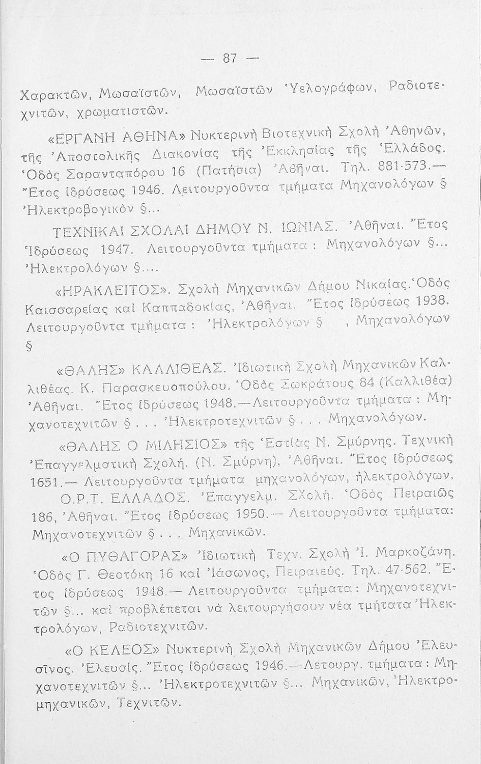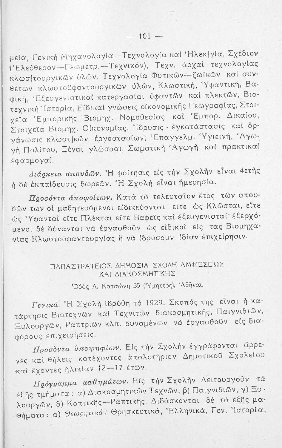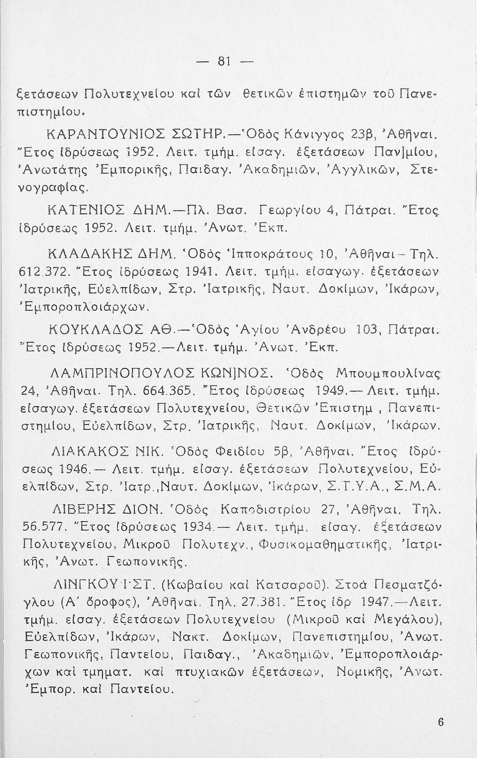 Μαθητικό βοήθημα Επαγγελματικού Προσανατολισμού για τους μαθητές και σπουδαστές που περιέχει πληροφορίες για τις πανεπιστημιακές, επαγγελματικές νυχτερινές κλπ σχολές. Ο συγγραφέας ήταν υπάλληλος της Κεντρικής Υπηρεσίας του Υπουργείου Παιδείας.