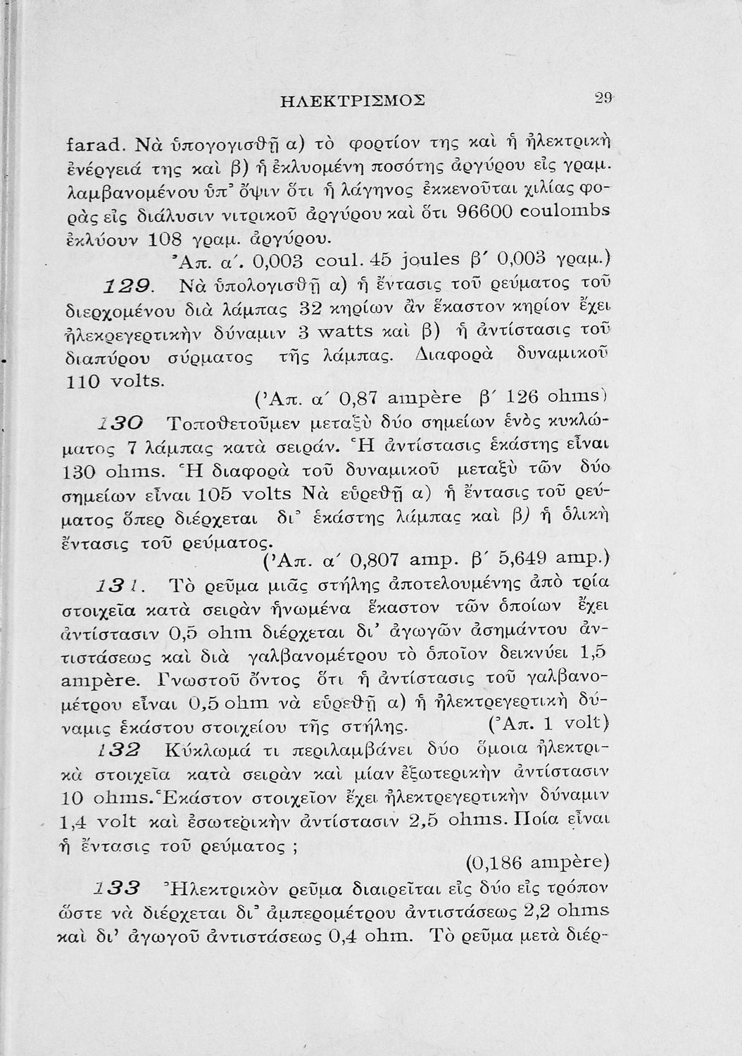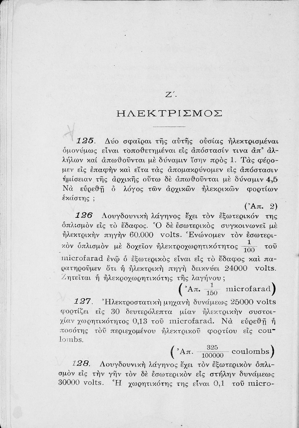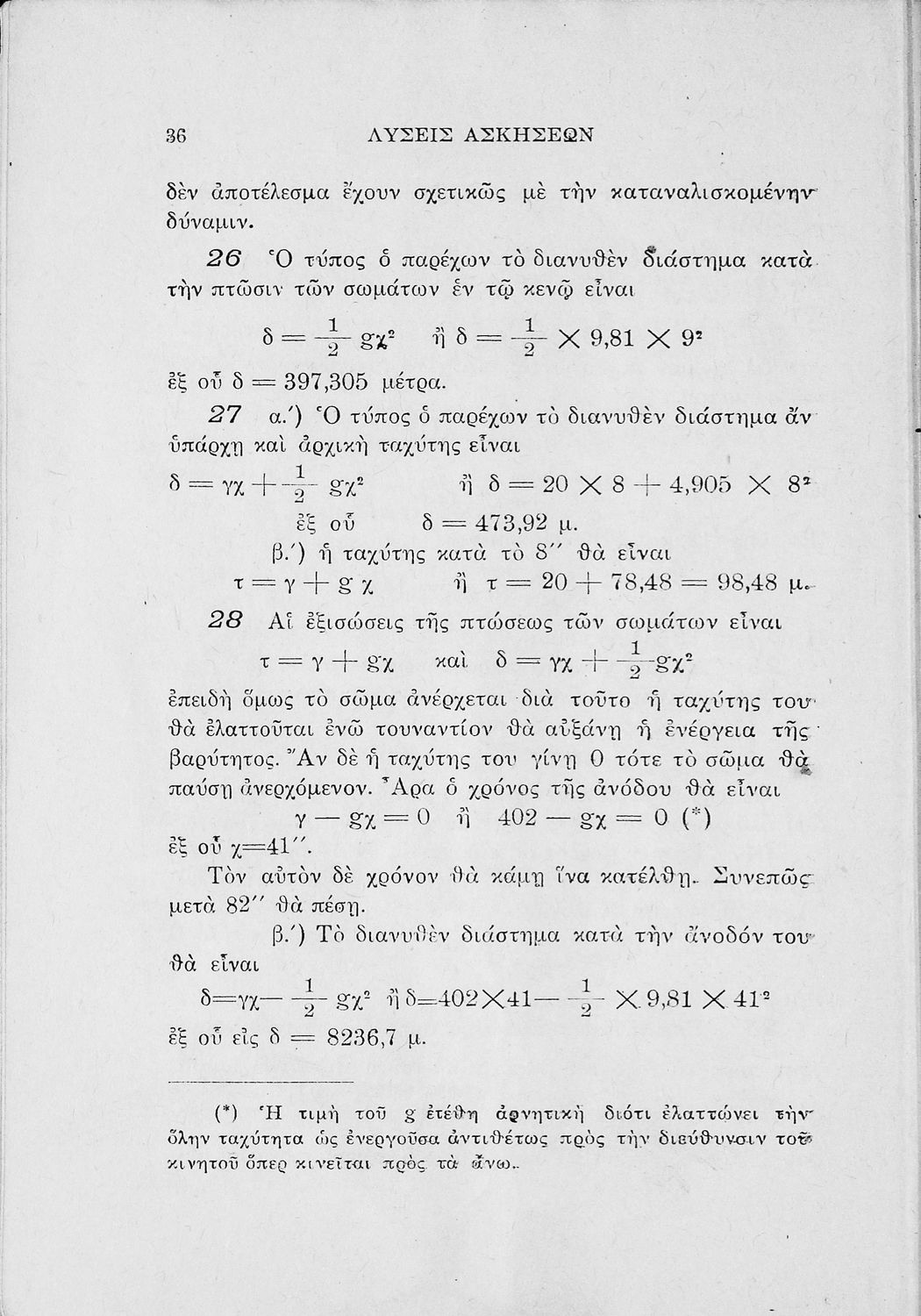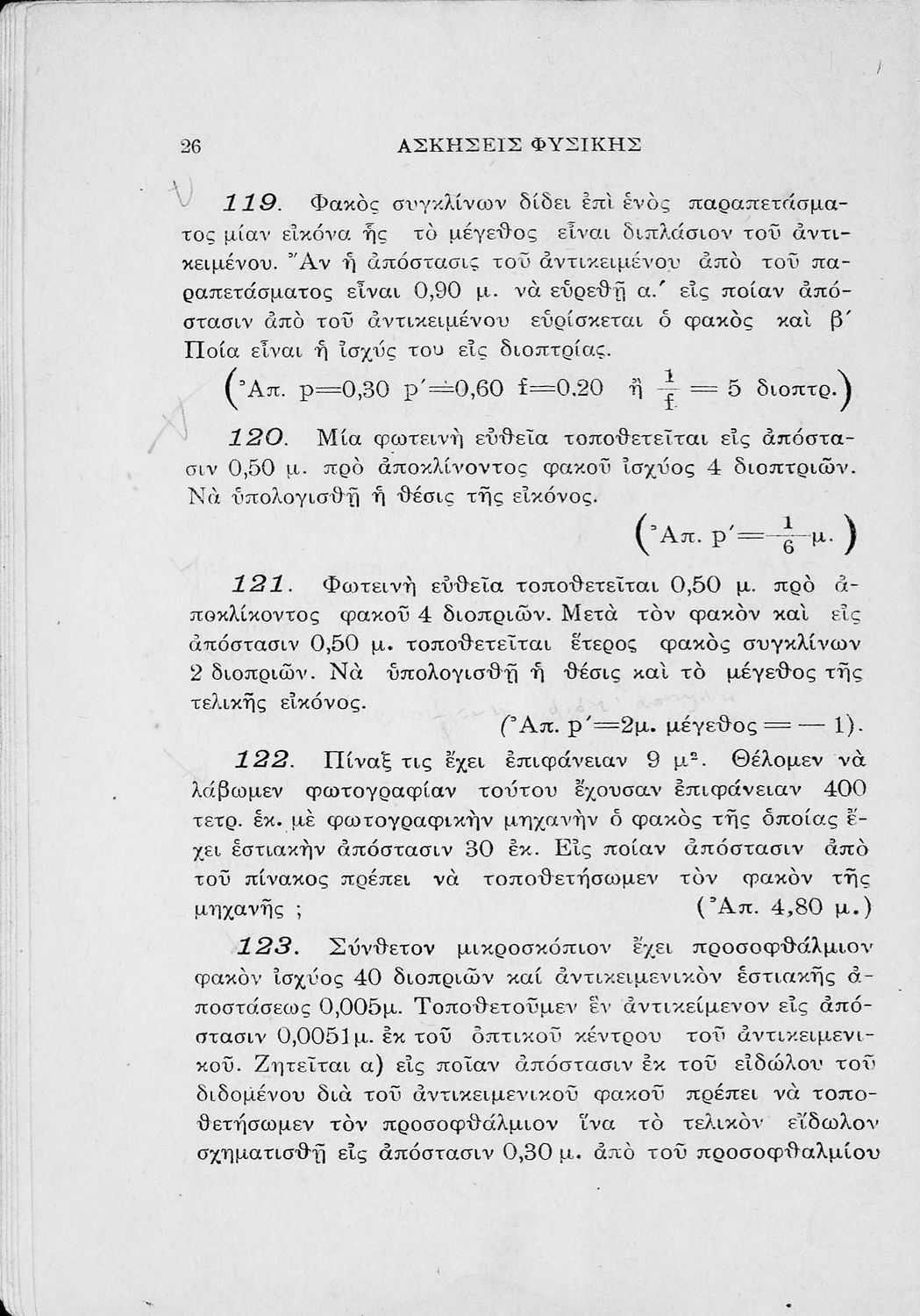 Μάθημα: Φυσική Γλώσσα: Καθαρεύουσα Παρουσίαση περιεχομένου: Μαθητικό βοήθημα Φυσικής για τους μαθητές του Γυμνασίου και τους υποψήφιους του Πανεπιστημίου που περιλαμβάνει συλλογή ασκήσεων φυσικής και τις λύσεις τους. Ο συγγραφέας στον πρόλογο τονίζει ότι οι ασκήσεις είναι η εφαρμογή της θεωρίας και ο συνδυασμός θεωρίας και πρακτικής αποτελεί την καταλληλότερη μέθοδο για τη βαθύτερη κατανόηση της φυσικής επιστήμης. |