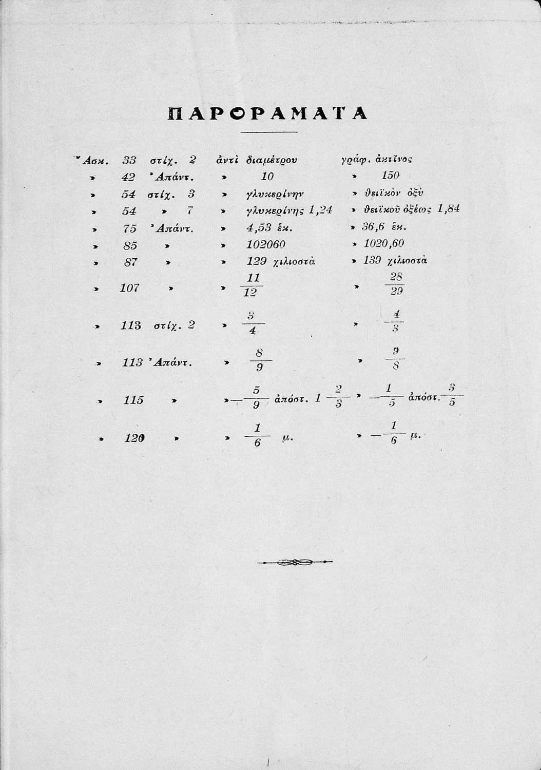 Παιδαγωγικό βοήθημα για τους Δημοδιδασκάλους, τους υποψηφίους των Σχολών Ανωτάτης Εμπορικής και τους μαθητές Πρακτικών Λυκείων των Γυμνασίων που περιέχει ασκήσεις ανώτερης αριθμητικής.
